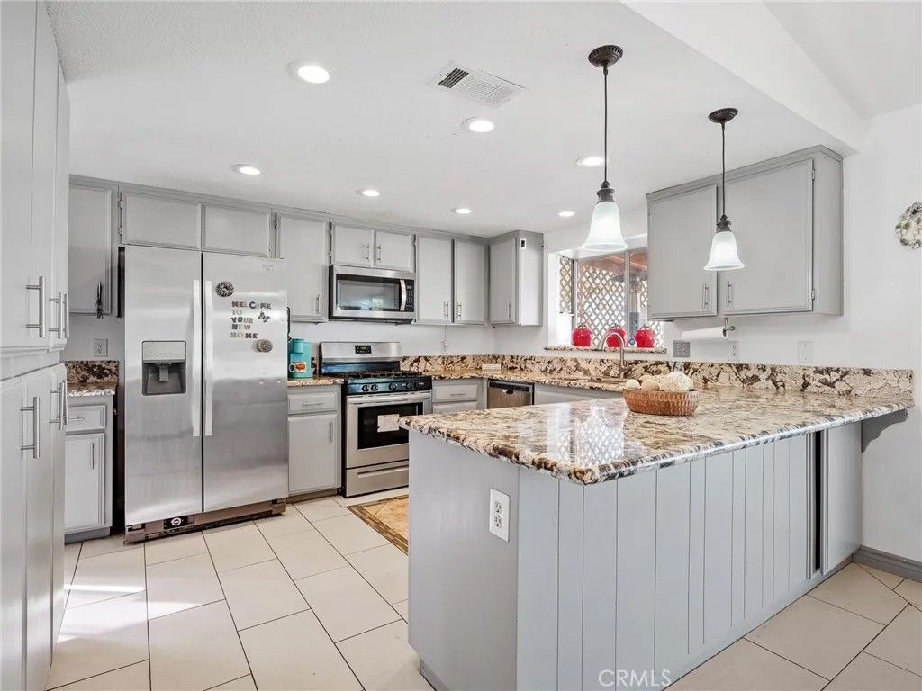 Welcome to your High Desert pool home retreat! This beautiful 4-bed, 2-bath home sits on just over an acre, offering modern comfort, wide-open space, and endless possibilities. Inside, natural light fills an open layout with spacious living and family rooms, a cozy brick fireplace, and a stunning kitchen featuring a large breakfast bar perfect for entertaining. Step outside to your fully fenced sparkling in-ground micro-pebble finish pool and spa with optional saltwater system and lights. Enjoy the backyard surrounded by desert views with your grand fire pit and the room to expand. The detached workshop is just over 1,000 sq ft with LED lighting is ideal for hobbies or storage, and the large lot offers plenty of flexibility. Energy-efficient upgrades include newer solar panels, HVAC, electrical updates, and roof. The newer solar system allows for possibility to produces an overage of power to accommodate the pool and the workshop. Conveniently located near shopping, dining, this home combines modern living with the peaceful desert lifestyle, the perfect place to unwind, create, and call home.