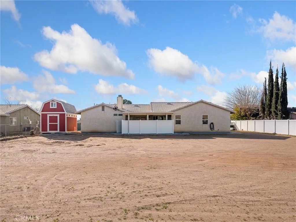MORE THAN JUST A HOUSE........Amazing Commuter Friendly, Single Story Home, in a quiet neighborhood located in Victorville. Come see this 4 bedroom 3 bath home that boast pride of ownership. Upon entry into this spectacular home you will notice custom screen, you are met with cathedral ceilings, upgraded ceiling fans, wood blinds and many upgraded fixtures. Stay nice and comfy in the living room with your fireplace. Kitchen is nicely updated with counter tops, deep sink, stainless steel appliances and spacious pantry. Home has 3 separate wings with their own bathrooms. Master suite has private entrance to backyard, large walk in closet with custom upper shelving and a large shower. There is an indoor laundry room off the master suite leading to the garage that has 2 parking slips and extra storage. Bring your RV and toys there is plenty of parking , Rv access on the side of house and rear of home and 2 large storage sheds for all your equipment. The lot is large enough for ADU. The septic installed in 2013. Hurry today and make this house your HOME.
