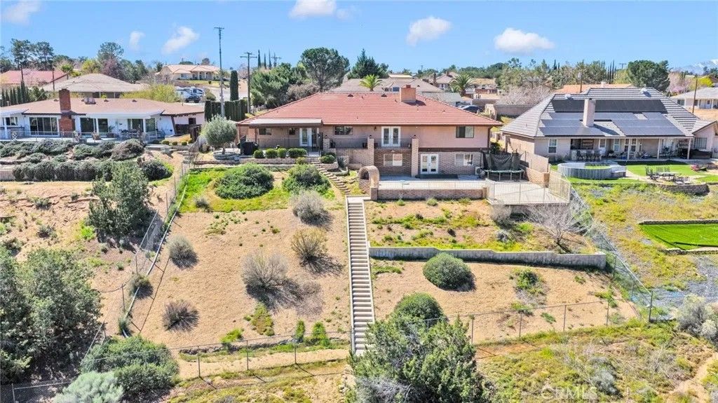 Beautifully crafted custom home featuring ADA-compliant design and a functional two-level layout, including a lower level for added flexibility. The open-concept main living area offers a spacious kitchen with custom cabinetry, ideal for both everyday living and entertaining. Enjoy premium upgrades including PREPAID SOLAR FOR 25 YEARS, an EV charger, and a built-in security system. This home offers 4 bedrooms, 3 bathrooms, and approximately 3,534 sq ft of living space. The backyard backs directly to the Hesperia Golf Course, providing serene views and added privacy. Located in a highly desirable neighborhood. Dont miss this opportunity!