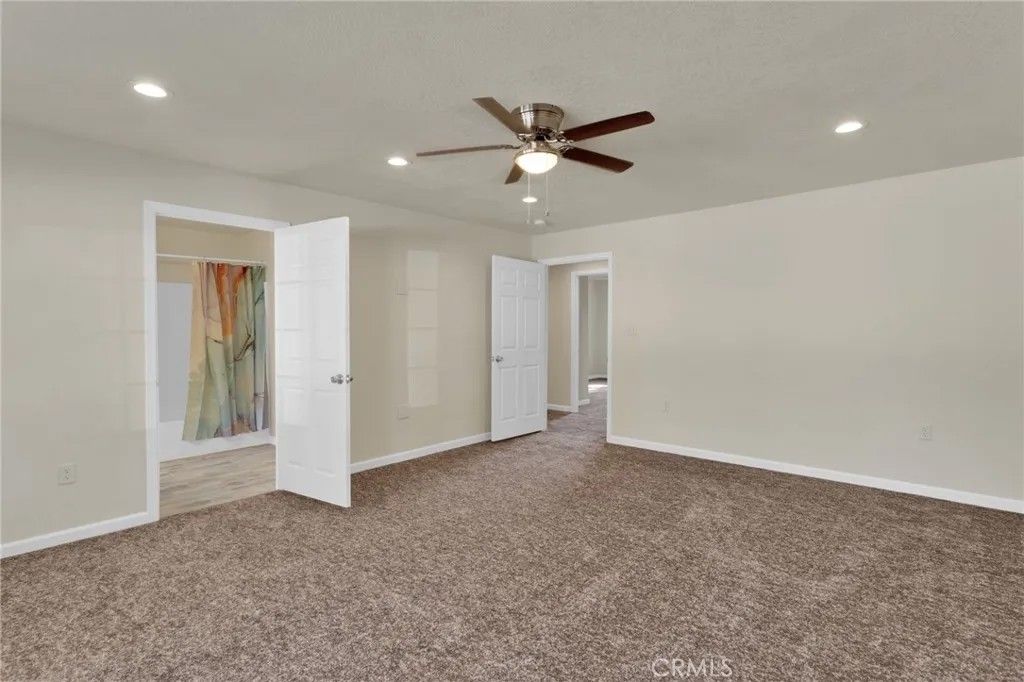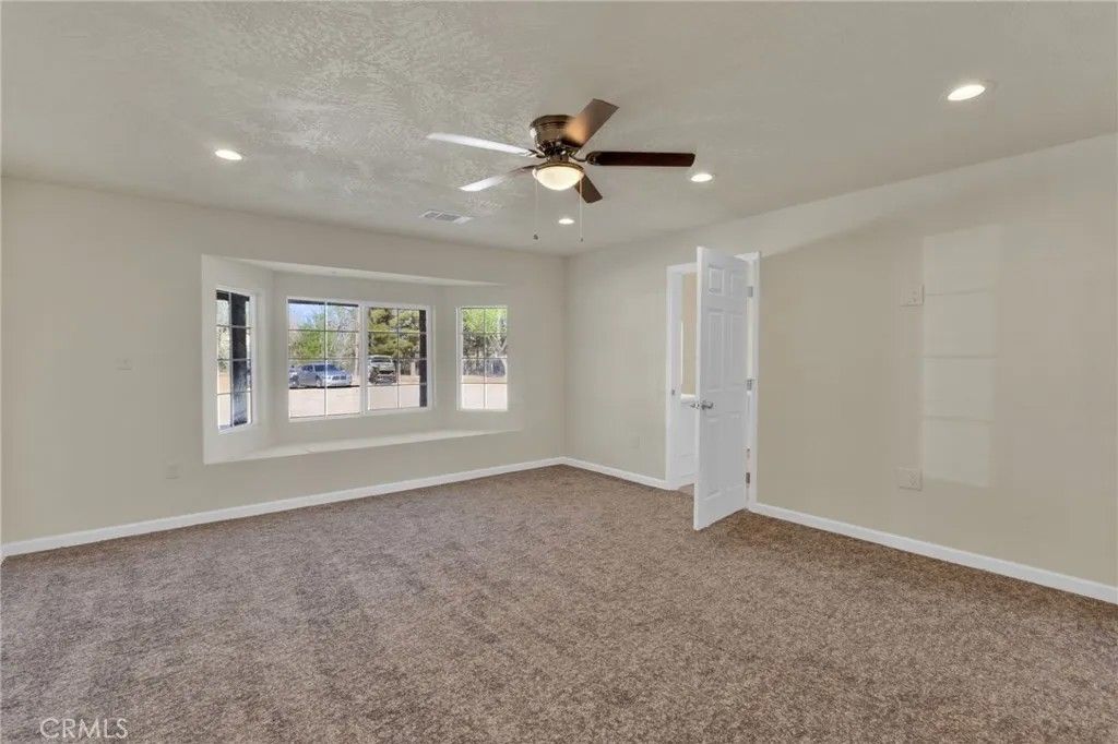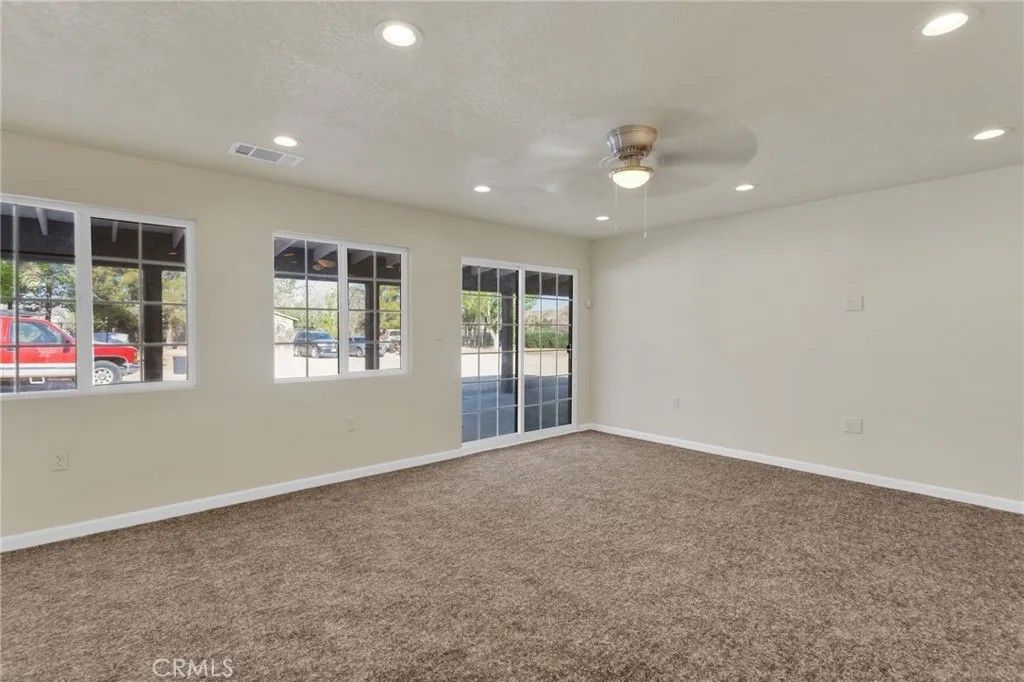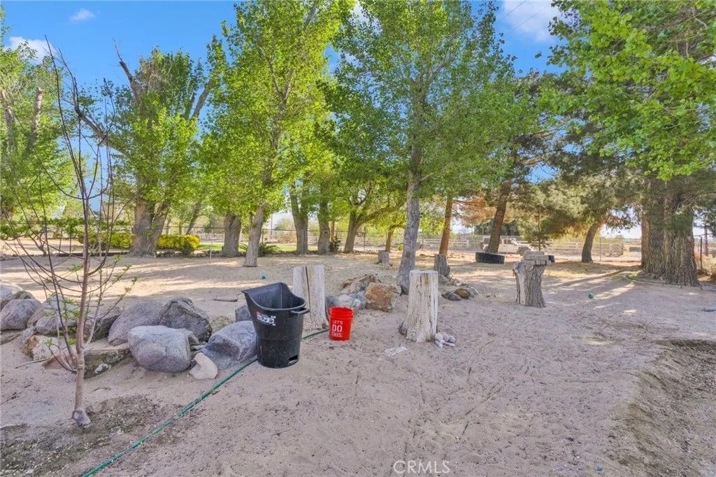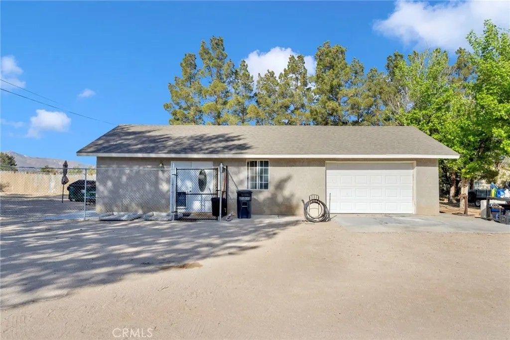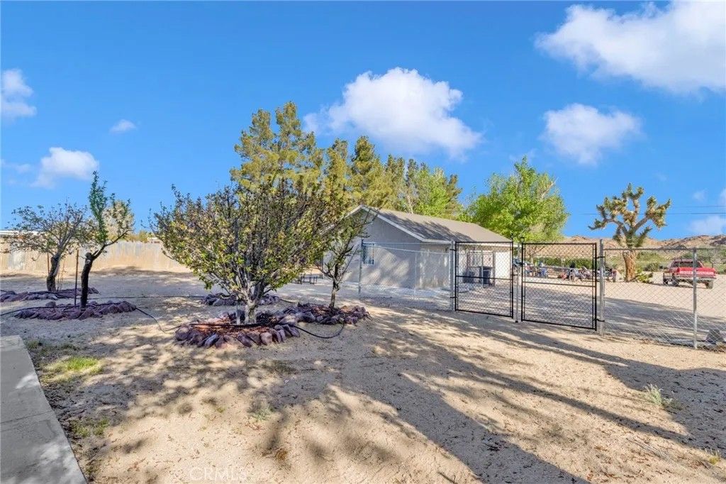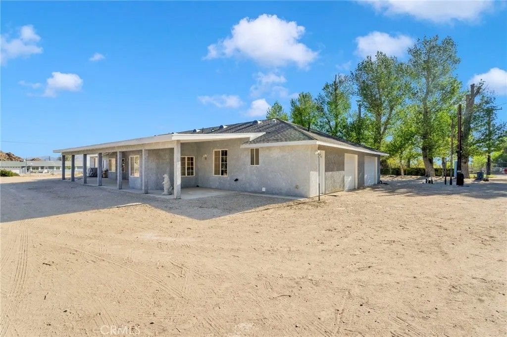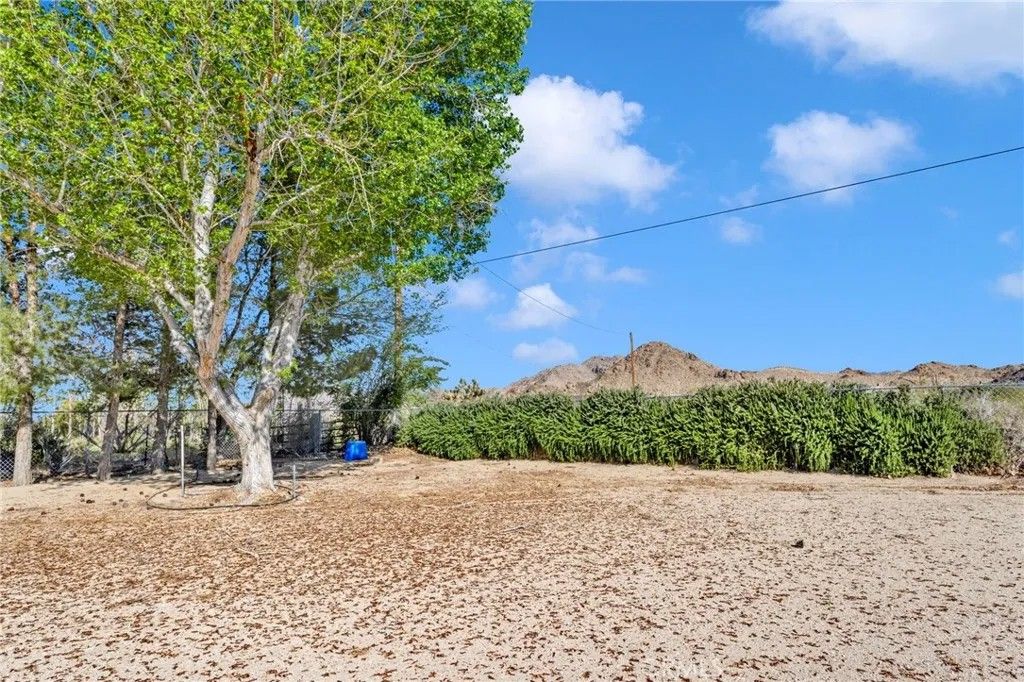 Completed in 2024, this newly constructed home sits on approximately 2.15 acres along a paved road in Lucerne Valley, offering a rare combination of space, functionality, and versatility. The home features 5 bedrooms and 3 bathrooms with a thoughtfully designed floor plan, including spacious living and dining areas, a formal living room, and extra-wide hallways. A privately located office on a separate end of the home provides a quiet and flexible space for work or additional use. The centrally located kitchen connects seamlessly to the main living areas. Interior amenities include central heating and air conditioning, natural gas, and a private well. Outdoor features include multiple covered patios, garden areas, mature fruit trees, and a well-established rosemary hedge along the north property line, creating a natural boundary with added privacy. A detached shop with a bathroom and additional living area offers versatile space for a variety of uses. The property also includes multiple storage buildings for equipment or hobby use. Additionally, a mobile structure on the property provides flexible space for storage or workspace. This structure is not permitted for residential use; buyer to verify all permitted uses with the county. This property offers a unique opportunity with new construction, usable acreage, and multiple functional improvements.