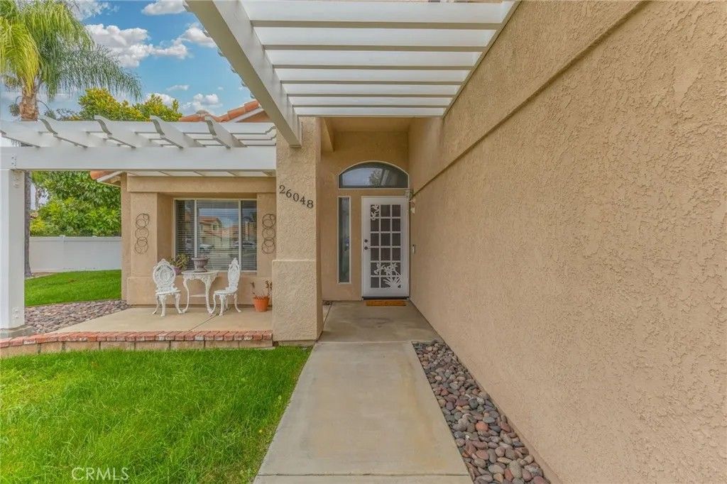 Yoohoo!!! Yes, you... over here!!! The one you've been waiting for is here. Welcome to 26048 Avenida Hortensia, a beautiful, well maintained, single story POOL HOME in East Hemet. Featuring 3 bedrooms, 2 baths, and sitting in just over 1600 sqft, this beauty has been freshly painted inside, has new carpets in all bedrooms and living room, and durable tile in all high-traffic areas. As you enter the front door, you're immediately wowed by the light, airy feeling of this home, with tall ceilings, neutral colors, and multiple windows letting the light in. On through to the cozy family room with fireplace, you pass your beautiful kitchen with granite countertops, roll out shelves, and tons of added storage. Out to your beautiful backyard you get to enjoy an alumawood cover that spans the entire width of the home, a spacious side yard with lush landscaping on one side, a sparkling pool with brand new heater on the other, and crisp new vinyl fencing surrounds it. This cozy home has all you need to enjoy a laid back life in peace and comfort, so call to schedule your showing today before it's gone, I promise you won't regret it.