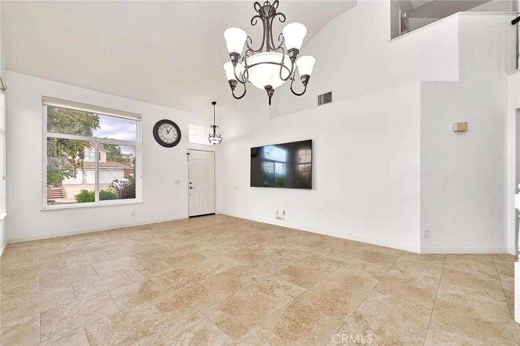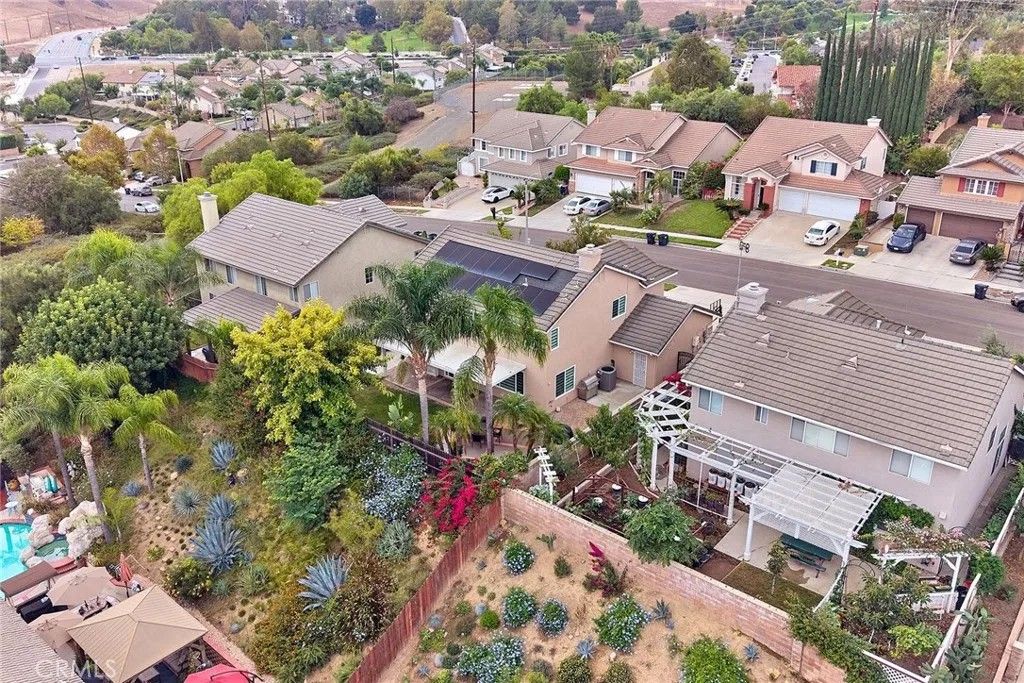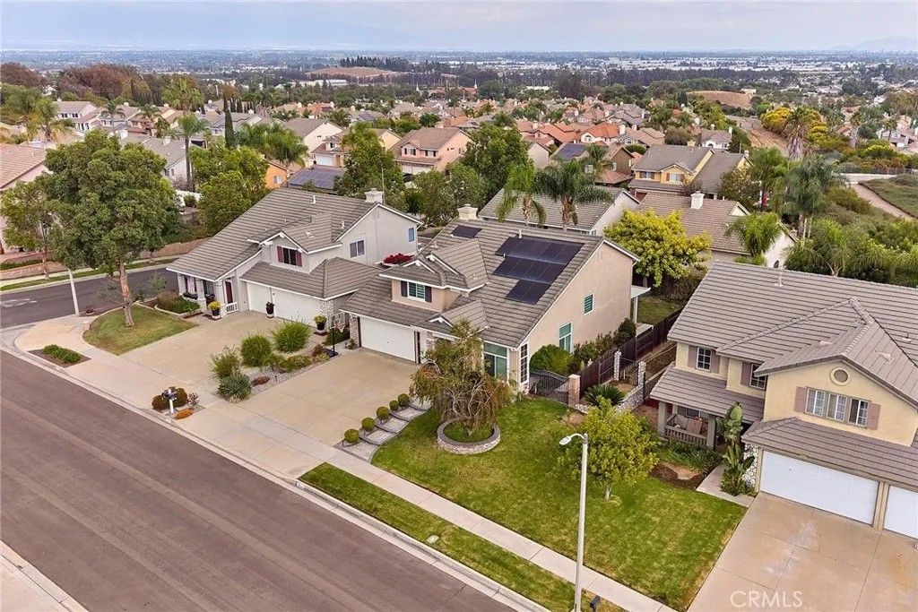 This bright and elegant 4-bedroom, 2.5 bath home is set in one of the most desirable neighborhoods of North Chino Hills. Step inside to a bright and spacious living room with soaring high ceilings that create an immediate sense of openness and elegance. The formal living and dining areas flow seamlessly together, enhanced by elegant porcelain tile flooring, perfect for gatherings and entertaining. Every window in the home has been upgraded with remote controlled, light filtering dual shades and roller shades, softly diffusing natural light to create a warm and inviting ambiance while maintaining privacy. The beautifully remodeled dine-in kitchen features custom cabinetry, stylish countertops with backsplash, a center island, stainless steel appliances, and a spacious walk-in pantry. The kitchen opens to a comfortable family room highlighted by a beautiful wall fireplace, adding warmth and charm, perfect for everyday living and relaxation. Downstairs also includes a separate laundry room and a tastefully updated powder bath. Upstairs, the primary suite offers a custom dual sink vanity and a large walk-in shower adorned with designer tile. Three additional bedrooms and an upgraded full bathroom, featuring a quartz countertop vanity, custom-tiled shower, and new glass shower doors, complete the upper level. Enjoy the tranquil backyard with a tropical inspired setting, featuring a covered Aluma-wood patio and a gas fire pit, ideal for entertaining or relaxing evenings outdoors. The three car garage provides ample space for vehicles and storage. Additional highlights include a solar power system with battery backup for energy efficiency and lower utility costs, as well as a Ring security system for peace of mind. Located in the heart of Chino Hills, this home is close to award-winning schools, parks, and premier shopping and dining destinations. Truly move-in ready, this exceptional residence combines comfort, style, and sophistication, welcoming you home with ease.