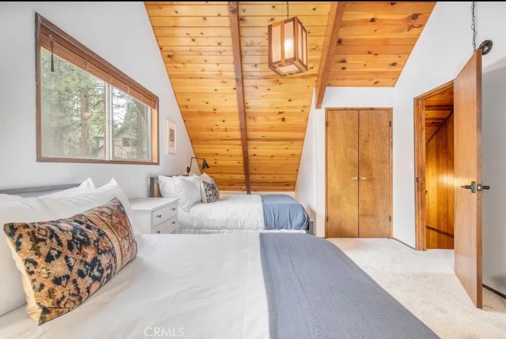 Nestled in the desirable Fox Farm area of Big Bear Lake, this charming mountain cabin offers a perfect blend of rustic ambience and modern convenience. Newly remodeled 4 bedroom with exposed beam ceilings and a cozy wood-stove hearth, the interior evokes classic alpine lodge comfort. Located on a great 8000 Sq Ft, corner lot, adorned with mature pines. Located just minutes from the slopes of Bear Mountain Resort, the lake and the village, its equally suited for year-round retreats or rental potential in a high-amenity mountain community