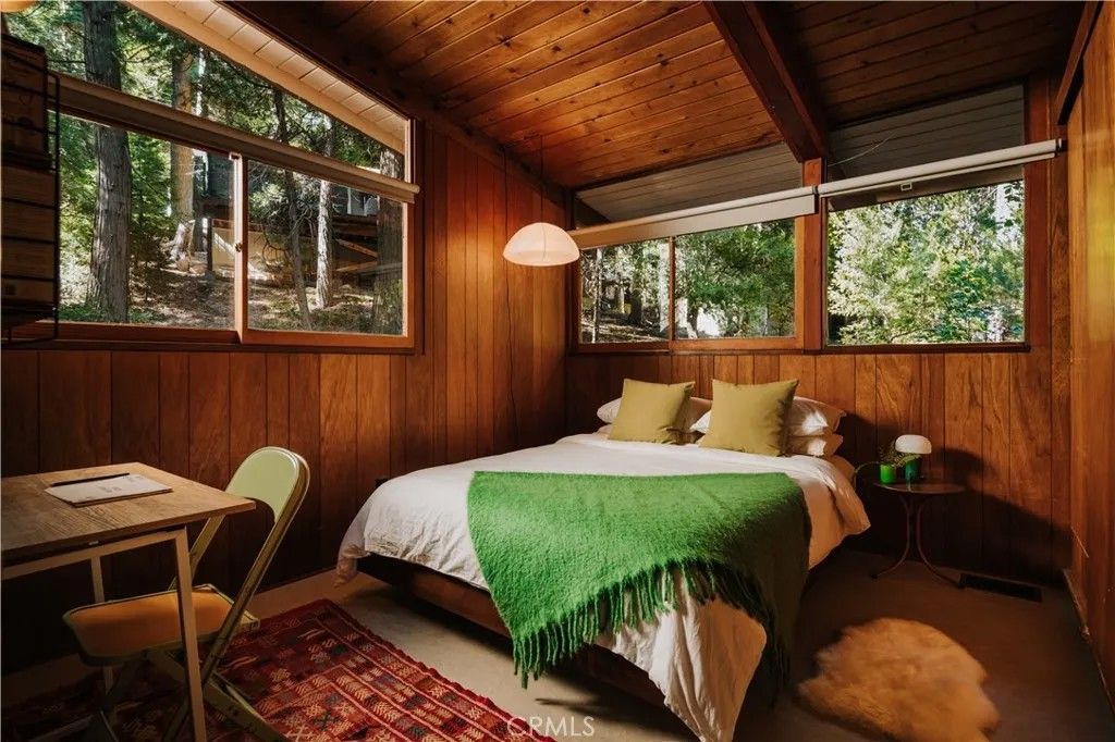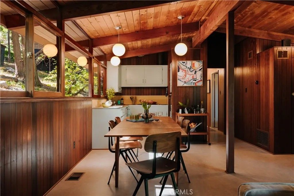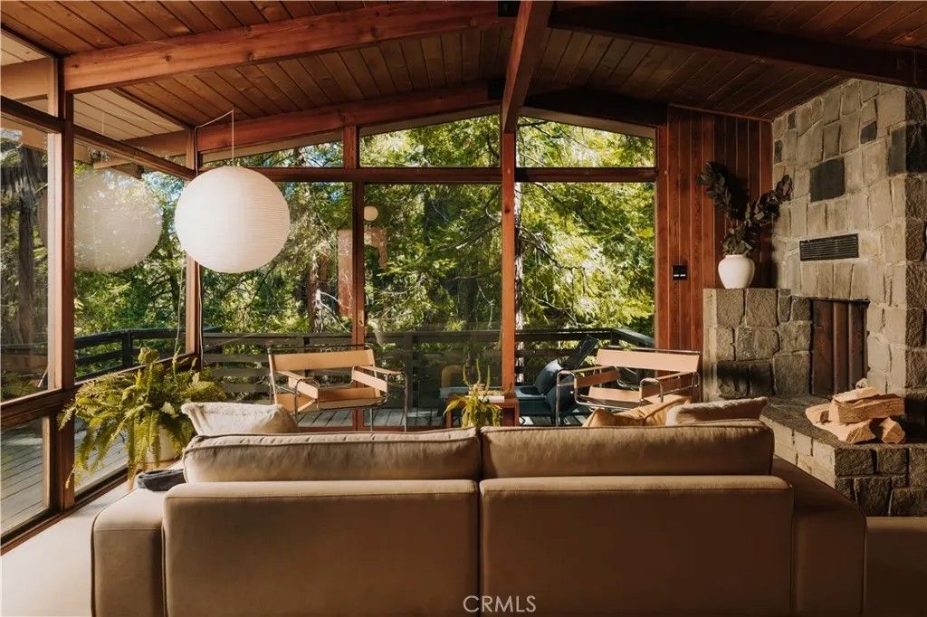 Mid-Century Holiday Retreat in the Pines San Moritz, Crestline A rare opportunity to own a true mid-century gem tucked among the towering pines of Crestlines sought-after San Moritz neighborhood. Built in 1956 and thoughtfully updated, this architecturally distinct cabin blends classic design with modern sophisticationcreating a retreat that feels both timeless and luxurious. Set back from the road on a generous, tree-filled lot, the homes open-concept interior is bathed in natural light through floor-to-ceiling windows that span two walls, blurring the line between indoors and out. The surrounding forest becomes a living backdrop, creating the serene sensation of being immersed in natureeven while inside. The original stone fireplace anchors the living space, while the spacious deck extends the experience outdoors, perfect for entertaining or quiet mornings among the trees. Every detail has been carefully curatedfrom eco-friendly Marmoleum flooring and updated electrical with a new panel to a brand-new central heating and air system. Smart features include a Nest thermostat and Ring security system for effortless comfort and peace of mind. Two beautifully appointed bedrooms and a versatile bonus room provide space for guests, a home office, or creative pursuits. Located just three minutes from Lake Gregory and moments from Crestline Village shops and dining, with Lake Arrowhead only 14 minutes away and Los Angeles under 90 minutes, this property offers an ideal balance of privacy and accessibility. A proven 5-star Airbnb, the home is offered fully turnkey with designer furnishingsready to enjoy immediately as a refined mountain retreat, vacation rental, or full-time residence.