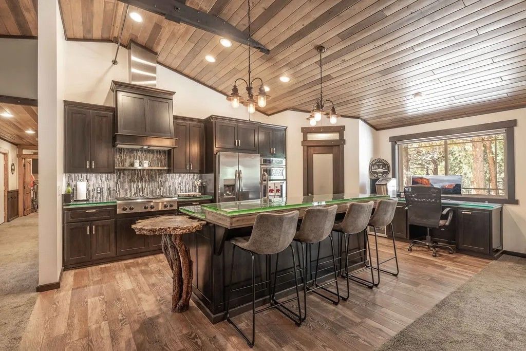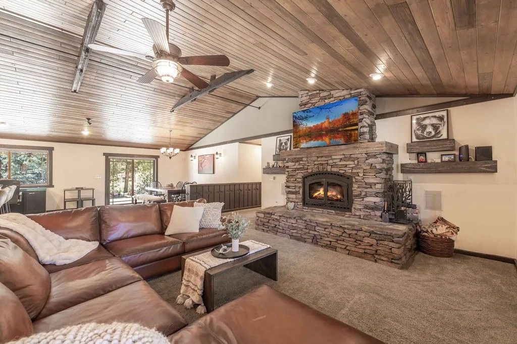 This breathtaking custom Craftsman home is tucked away on a quiet cul-de-sac in highly sought-after Meadowbrook Estates, offering privacy, serenity & timeless mountain charm. Built in 2014, this home showcases exceptional craftsmanship throughout from the warm wood ceilings and detailed wood paneling to the open-concept layout that perfectly blends rustic elegance with modern comfort. The gourmet kitchen is a chefs delight, featuring custom counters, a 6-burner range, spacious pantry, with high-end finishes throughout. The living area is centered around a stunning stone fireplace, perfect for cozy gatherings, while large windows frame the natural beauty that surrounds the home. With four spacious bedrooms, including two massive primary suites, each offering walk-in closets and luxurious private bathrooms, this home is ideal for multi-generational living or hosting guests. Step outside to enjoy the peaceful natural landscaping, thoughtfully designed for beauty and low maintenance. Recognized as the 2018 selectee for the Big Bear Valley Xeriscape Water Wise Garden Tour, this property harmonizes perfectly with its mountain setting. Close to the National Forest & only minutes from Big Bear Lake, ski slopes & the Village, this extraordinary home offers the best of mountain living - privacy, elegance, and connection to nature all in one exceptional package. This is the mountain dream home youve been waiting for.