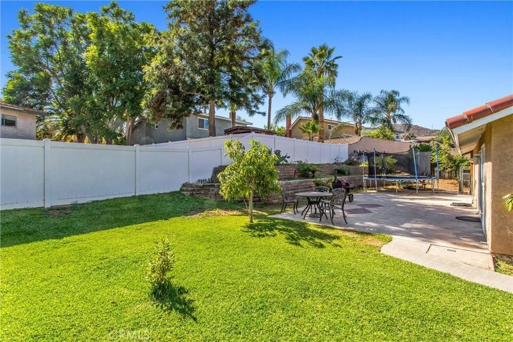 Welcome to this beautiful single-story home in highly desirable Jurupa Valley! Vaulted ceilings create an airy, spacious feel throughout. The gourmet kitchen boasts granite countertops, stylish backsplash, a huge island, and ample cabinetryall flowing seamlessly into the family room for effortless entertaining. Three large bedrooms include a generous master suite overlooking the backyard retreat. Speaking of the backyardit's an absolute paradise! Enjoy an abundance of fruit trees, expansive green grass, patio space, dog run, and side yard access ideal for RV storage. The 3-car garage provides extra space for all your vehicles and toys. This one won't lastcome see it today!