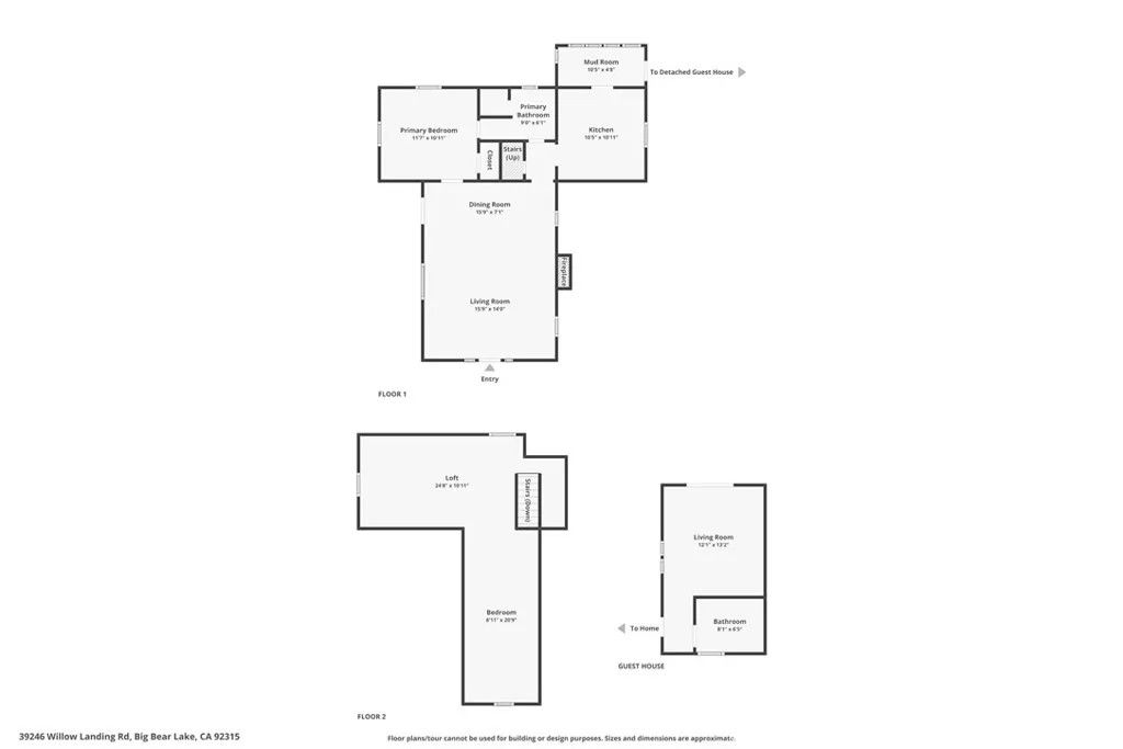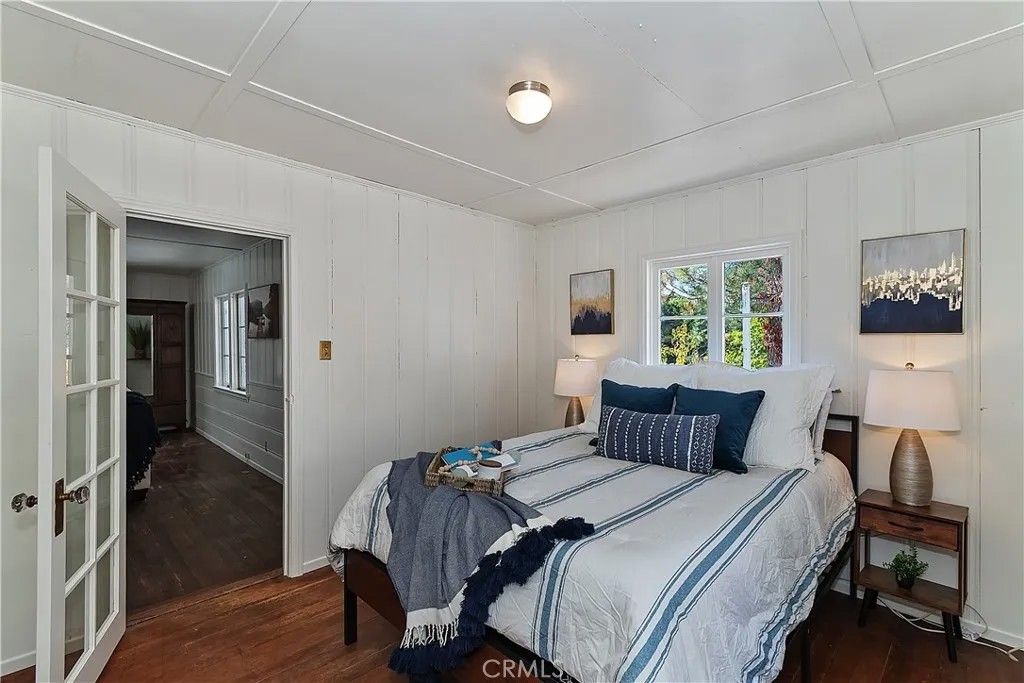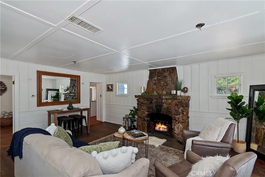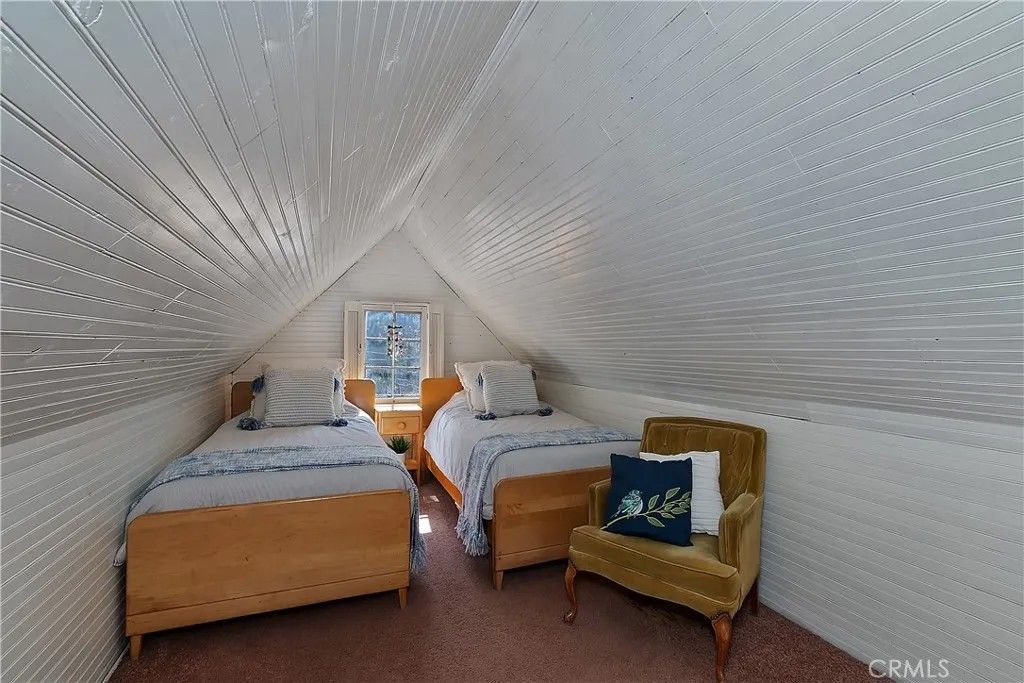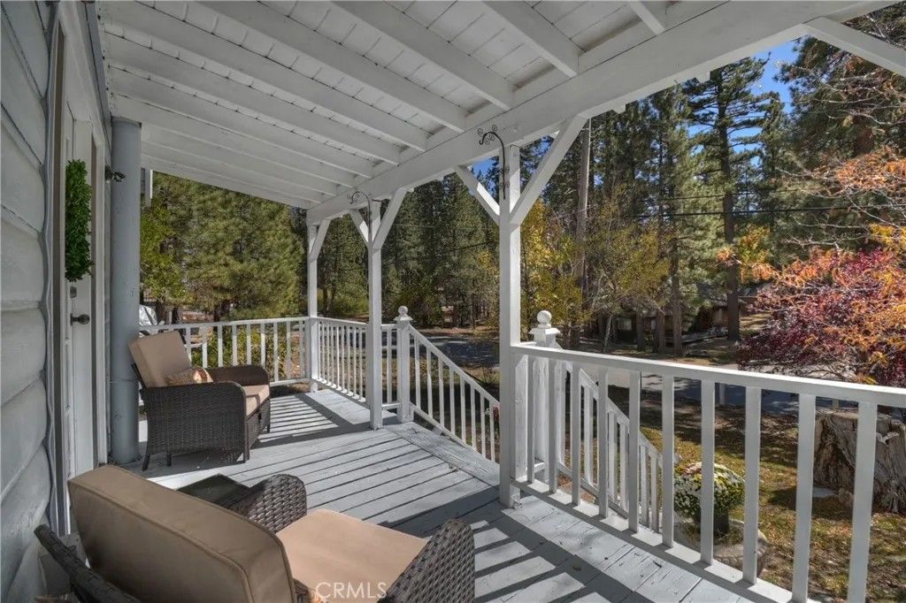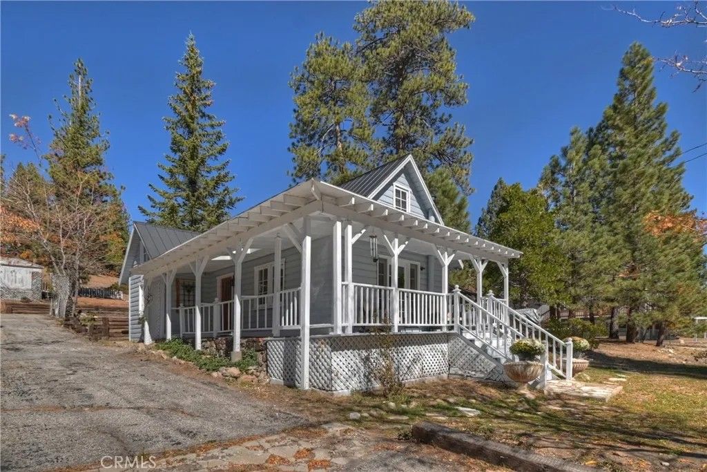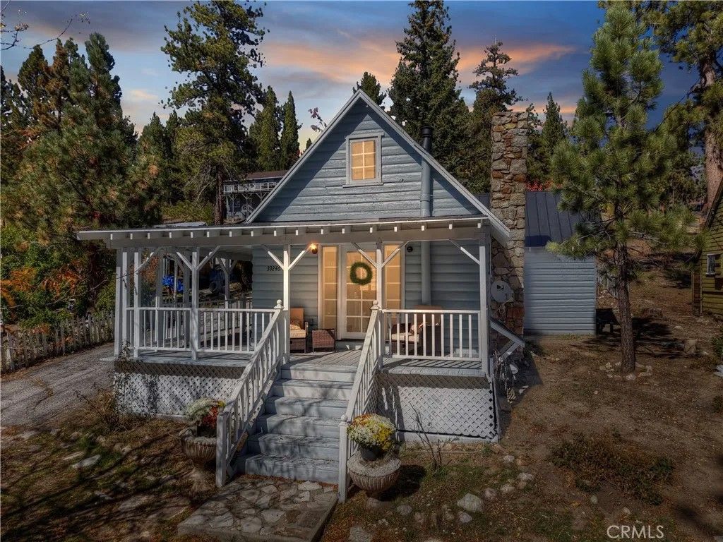 Charming mountain cottage located within yards of the lake, park, restaurants, and shopping in the heart of Big Bear Lake. The main cabin features one bedroom, one bathroom, and a loft area, offering a warm and inviting atmosphere with a natural stone fireplace and hardwood floors throughout. A separate detached studio guest cabin provides additional living space or potential rental opportunity, featuring open-beam ceilings, hardwood floors, and a full bathroom with a clawfoot tub. The property captures the Cozy Big Bear cottage feel with convenient proximity to the lake and village amenities. This unique property offers flexible use as a full-time residence, vacation retreat, or income-producing investment in a desirable lakeside neighborhood