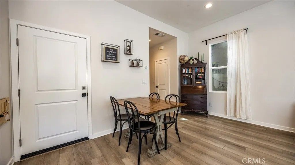Beautifully Upgraded Home in the Sought-After City of Corona! This turn-key property offers 1,626 sq ft of stylish living space, featuring 3 bedrooms, 2.5 bathrooms, and a 2-car attached garage. Step inside to an open floor plan with high ceilings, recessed lighting, dual-pane windows, laminate flooring, and plush carpeting throughout. The modern kitchen boasts white cabinetry, quartz countertops, glass tile backsplash, stainless steel appliances, pantry, and direct access to the backyardperfect for indoor-outdoor entertaining. The spacious primary suite showcases elegant wainscoting, recessed lighting, and an upgraded en-suite bathroom with dual vanities, a walk-in shower, and walk-in closet. Bedrooms 2 and 3 include ceiling fans and share a well-appointed full bath. Additional features include a convenient indoor laundry room with cabinets and shelving. The low-maintenance backyard is finished with pavers, artificial grass, and vinyl fencingideal for relaxing or entertaining. Enjoy resort-style amenities in the Bedford community, including parks, walking and hiking trails, a clubhouse, and a sparkling community pool and spa. Conveniently located near shopping, dining, and entertainment. Move-in readydont miss this one!