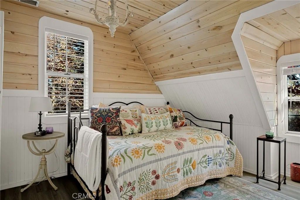 It had me from hello. A charming vintage cabin nestled among mountain foliage, adorned with breathtaking stonework and offered with full lake rights and optional turnkey appointments. The shingled faade immediately catches the eye, and within, a gorgeous fireplace takes center stageno disappointment there. Beamed ceilings, wood-paneled walls, and tiled kitchen and baths create a warm, nostalgic ambiance throughout. Upstairs, youll find elevated ceilings and quaint dormers that frame the paned windows, flooding this storybook cottage with natural light. Don't worry if this home steals your whole heart, becuase it has a generac to keep it charged... ALL NIGHT LONG! Just a stones throw (whens the last time you heard that?) from Lake Arrowhead Villagethe mountains lakefront hub for shopping, dining, and entertainmentthis cabin offers the best of both charm and convenience with its lake oriented location. A true four-season getaway, embraced by a picket-style fence and inviting patio approach, it will have you at hello... and reluctant to ever say goodbye. Low in inventory but rich in romance and nostalgiathis one is for the dreamers.