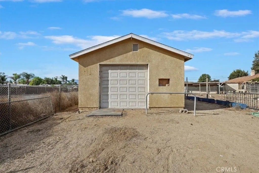 Dont Miss Out! Great Property with Horse Area and Workshop! This spacious property sits on a 21,344 sq. ft. lot and includes a 1,260 sq. ft. stick-built workshop, a detached garage, and a beautifully upgraded single-family home. The home offers 1,589 sq. ft. of living space with 3 bedrooms, 2 bathrooms, and an office. The layout is functional and inviting, featuring a comfortable family room with a cozy brick fireplace that welcomes you as you enter. The upgraded kitchen includes granite countertops, ample cabinetry, and a dining area conveniently located adjacent to the kitchen. The primary bedroom is oversized and features two closets; this space was previously the attached garage and has been tastefully converted for added comfort. The hall bathroom offers a tub/shower combination and updated vanity, while the primary bathroom features a large marble-tiled walk-in shower and modern finishes. The home has upgraded windows throughout, with tile flooring in the main living areas and laminate flooring in the bedrooms. The laundry area has been relocated to a closet within the office for convenience. Enjoy outdoor living under the Alumawood covered patio, perfect for relaxing or entertaining. Behind the home, youll find a detached garage and a spacious 1,260 sq. ft. workshop with two roll-up doorsone providing access to the back of the property. The WORKSHOP is ideal for car enthusiasts, desert toys, or a home-based business. The termite completion has recently been done on the house. The rear portion of the lot offers space for horses, animals, a garden, or fruit treesproviding endless possibilities for country living with city convenience. Additional features include extra gated parking near the detached garage and plenty of room for RV or trailer storage. This property truly has it allspace, versatility, and potential!