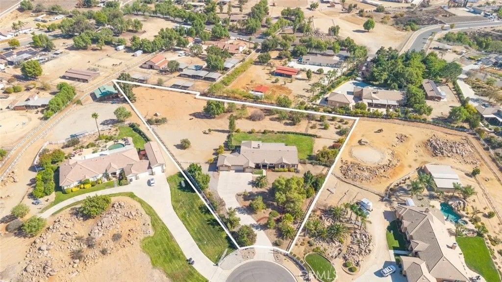 Tucked away in the peaceful community of Gavilan Hills, this charming single-story home sits at the end of a quiet cul-de-sac and offers the privacy and open space youve been searching for. A long, tree-lined driveway welcomes you in and sets the tone for the serenity and seclusion that this property provides. With a large, usable lot, there is plenty of room to create your dream outdoor oasisadd a pool, an ADU, horse facilities, or all of the above. The possibilities are endless. Step through the double door entry into an open-concept floor plan filled with natural light. The spacious kitchen features granite countertops, stainless steel appliances, a kitchen island with breakfast bar and sink, plus a built-in wine rack and wine fridgeperfect for entertaining. The warm wood flooring combined with comfortable carpeting in the bedrooms creates a welcoming and relaxed atmosphere throughout. The primary suite is generously sized and offers a huge walk-in closet, providing plenty of storage and comfort. In the backyard, unwind under the alumawood patio cover while taking in the expansive, picturesque views of the surrounding hillsan ideal setting to enjoy morning coffee, evening sunsets, and gatherings with family and friends. Have horses or recreational toys? This property can easily accommodate your horses, RV, boat, trailers, and more, with room to build out your ideal setup. Experience country living without sacrificing conveniencethis home combines space, peace, and lifestyle in one beautiful package.
