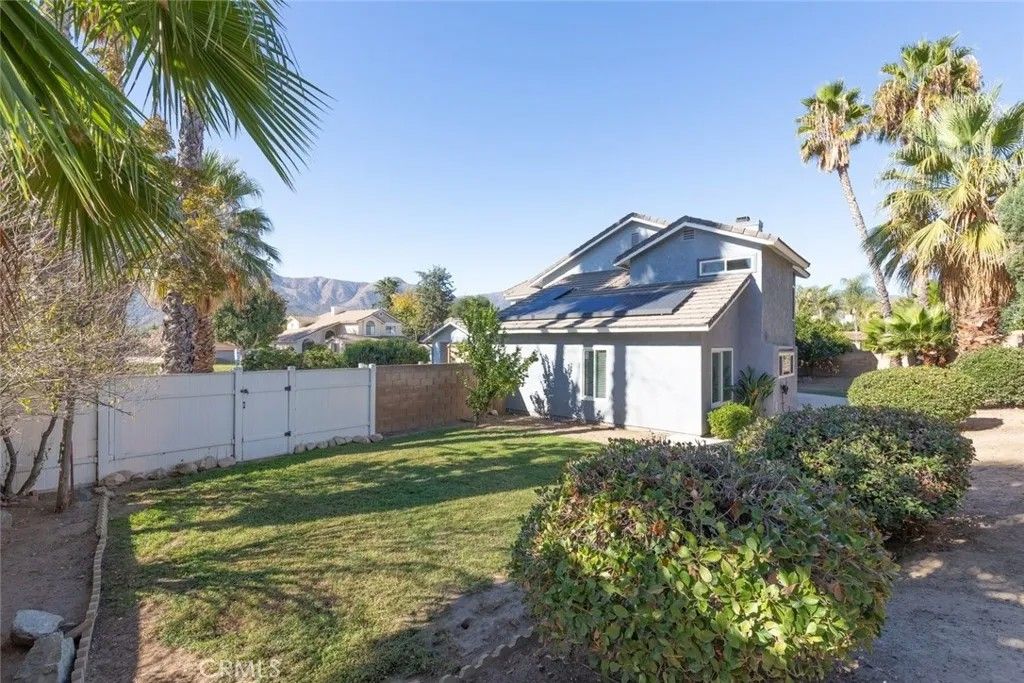 Welcome to this meticulously kept home that truly reflects pride of ownership. Situated on a generous 10,000+ sq ft corner lot, this residence offers magnificent curb appeal and the potential space for RV or boat parking, giving you room to live and store with ease. Step inside to be greeted by vaulted ceilings and a bright, open layout, enhanced by luxury vinyl plank flooring and wood-look tile throughout. The kitchen and bathrooms have been intricately remodeled with quality craftsmanship and thoughtful detail. The plumbing has also been upgraded, providing added peace of mind and long-term durability. Additional interior improvements include dual-pane vinyl windows, updated window blinds and casings, ceiling fans, a newer HVAC system, whole house fan, newer water heater, and a solar panel system to help keep energy costs lowespecially during warm summer months. Even better, this home is located in an area with super low tax rates and No Mello Roosproviding meaningful ongoing savings. This home is the perfect blend of comfort, efficiency, and pride of ownershipmove-in ready and waiting to be enjoyed.