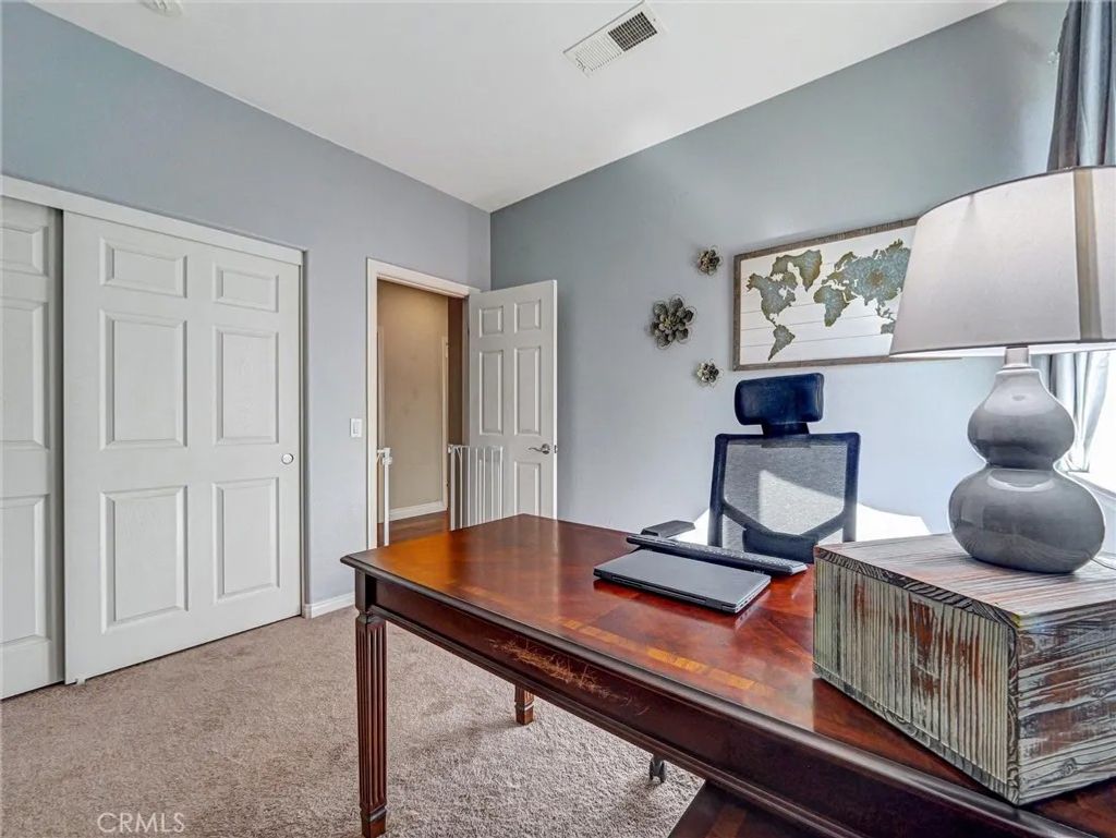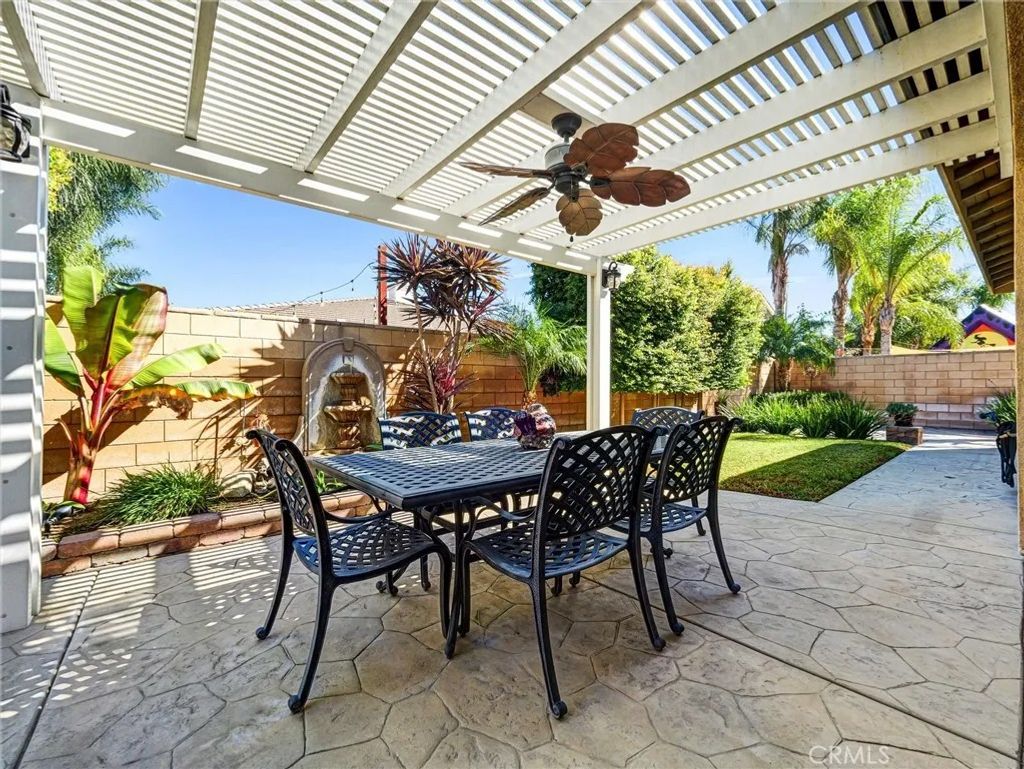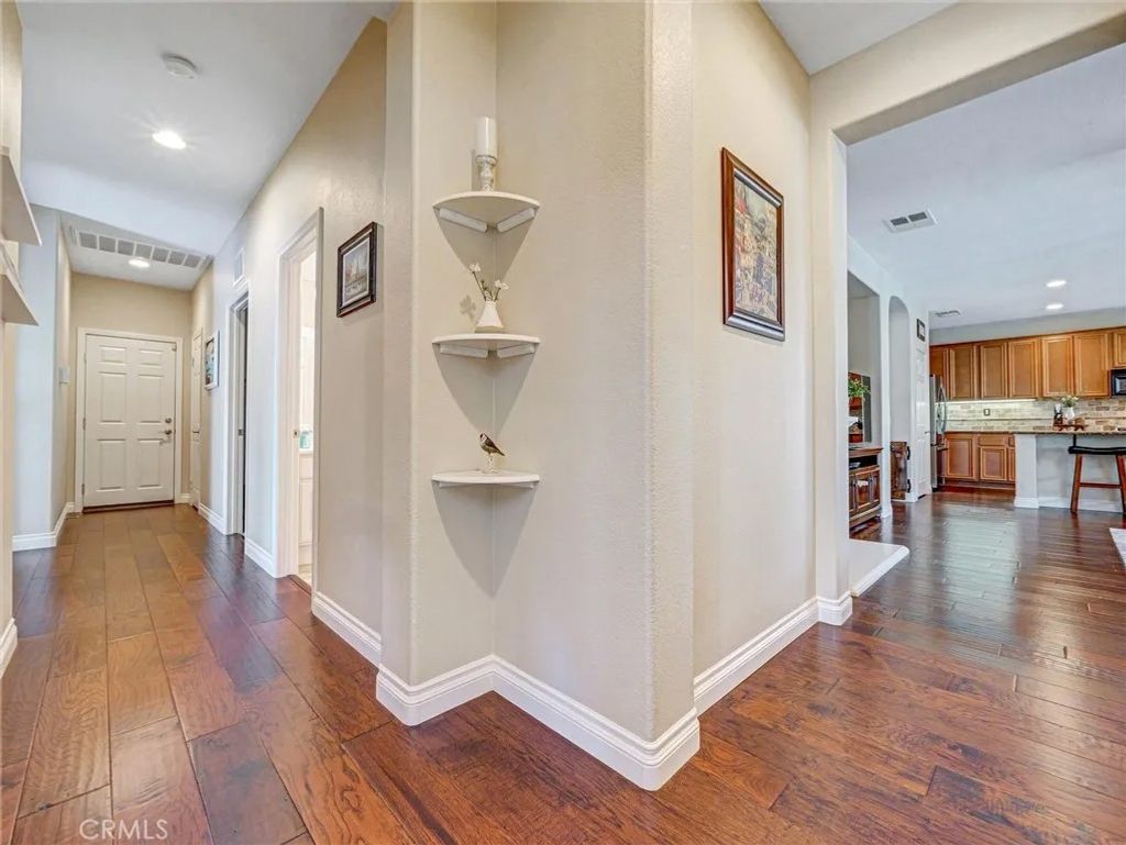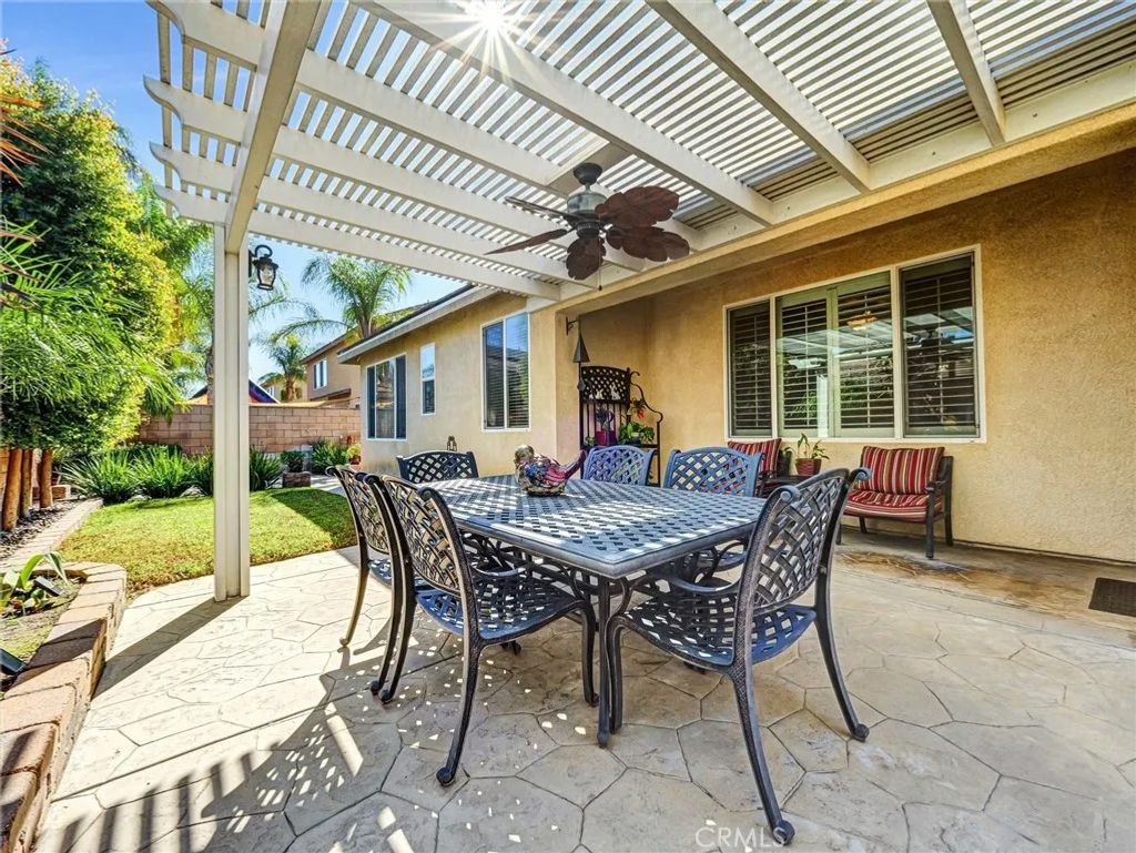 Beautiful Single-Story Eastvale Home! This 4-bedroom, 3-bathroom residence offers 2,435 sq. ft. of comfortable living space on a 7,405 sq. ft. lot. Step inside to find engineered hardwood flooring and a welcoming entryway leading to the formal living and dining rooms. A private bedroom and bathroom are thoughtfully separated from the main living areasperfect for guests or multi-generational living. The spacious island kitchen features granite countertops, a gas oven and cooktop, and a convenient breakfast bar, opening to the family room with a cozy fireplace. Enjoy casual dining in the sunny kitchen nook. Down the hall, the primary suite includes a soaking tub, separate shower, dual sinks, and a walk-in closet. Two additional bedrooms, a full bathroom, and a dedicated laundry room complete the interior. The backyard is ideal for entertaining with an aluminum patio cover, concrete and paver patios, and multiple seating areas for outdoor enjoyment.