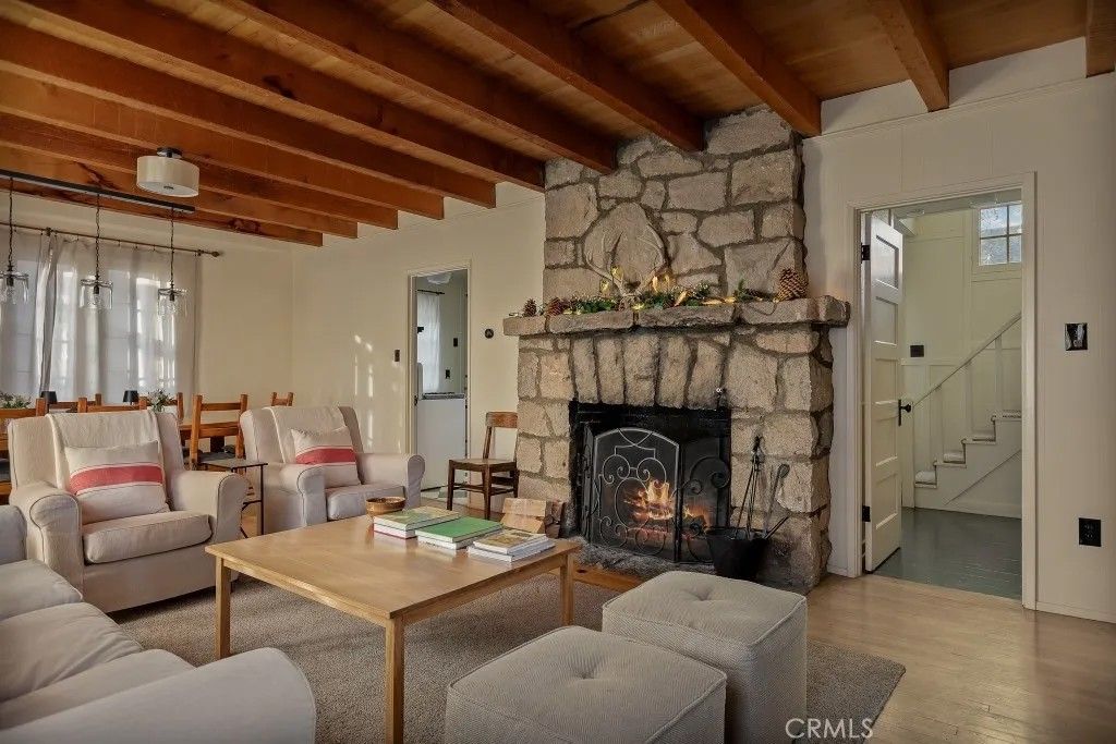 Rich with nostalgia, this home offers vintage warmth, sunlit rooms and a generous gathering of towering cedars. A rare opportunity with level entry and room to wander and just a short stroll to the lake trail and nearby antique shops, dining and necessities. A granite wood-burning fireplace provides warmth and charm under the rough-sawn beamed ceiling of the spacious main living area. The kitchen is a classic treasure with modern conveniences, ample space and the original maple countertop. The kitchen window, back deck and an upstairs window offer a peak of the lake which shimmers in the dusk of daylight. Large bedrooms lend themselves to the spacious and open feel as the paned windows bring in sunlight and give a nod to the well-preserved vintage charm. A spacious yard under cedars offers room to enjoy the mountain nature and a basement workshop provides room to store lake toys and to tinker on projects. A true Palisades treasure timeless, vintage, and ready for its next chapter.