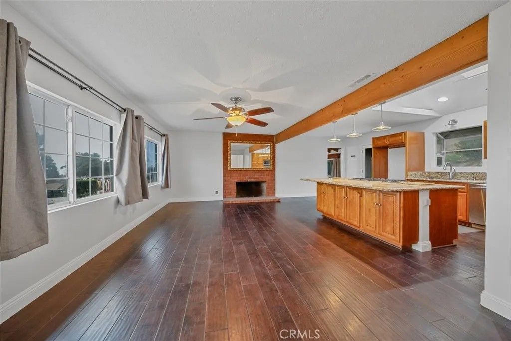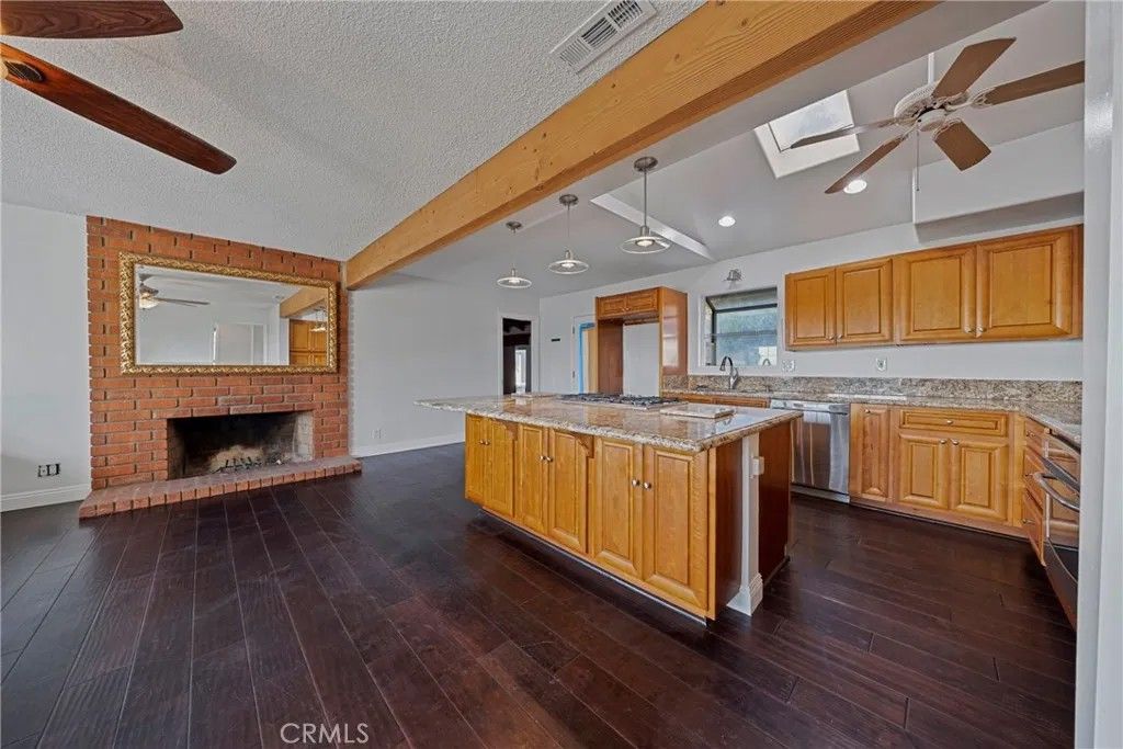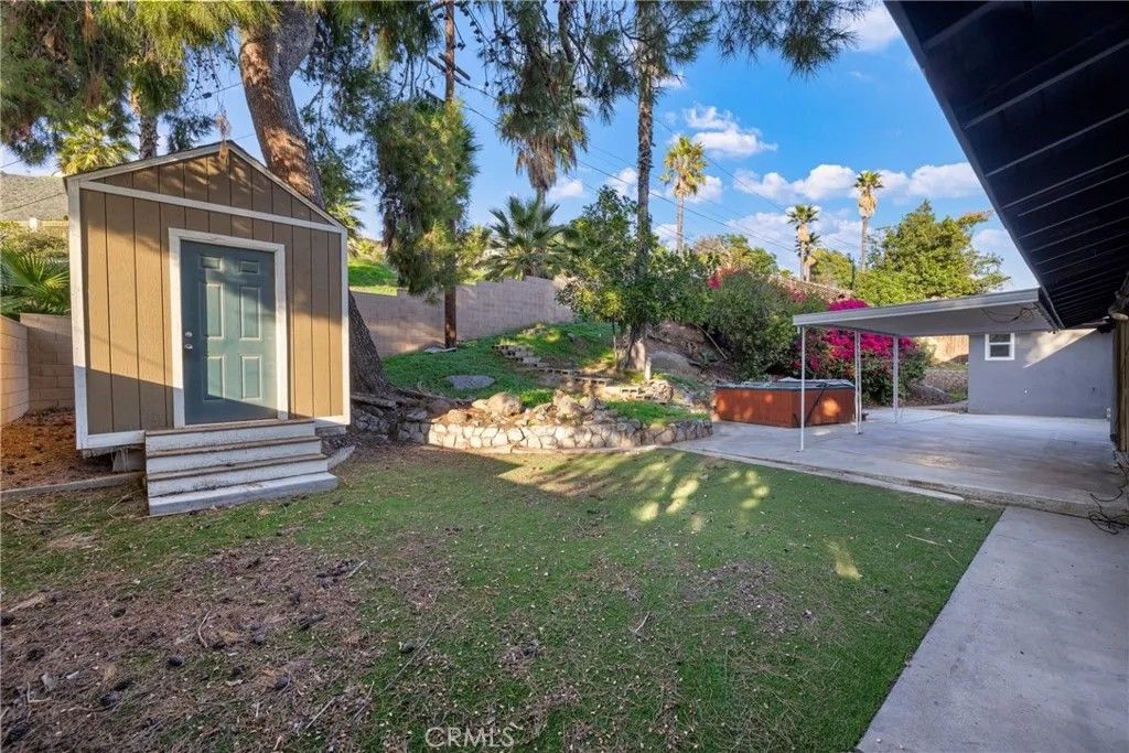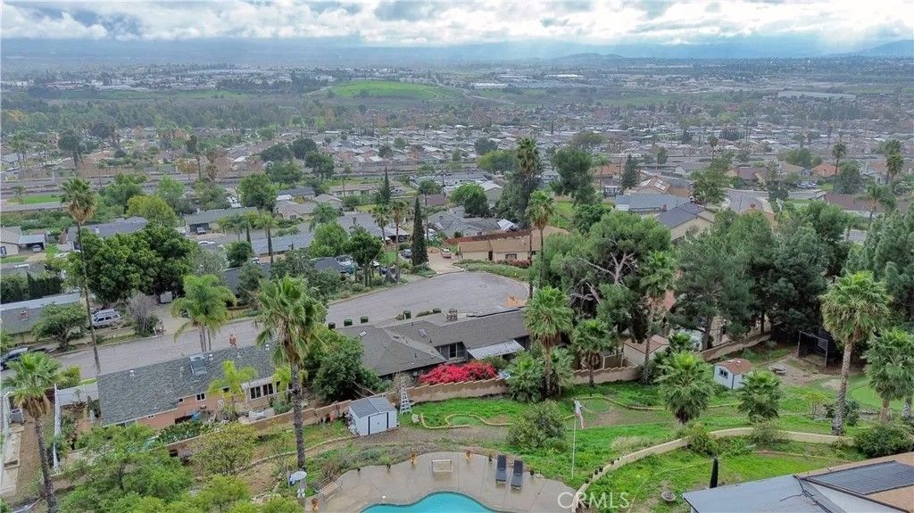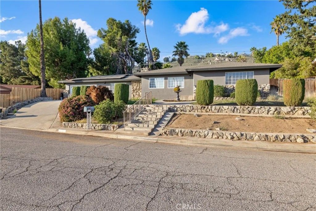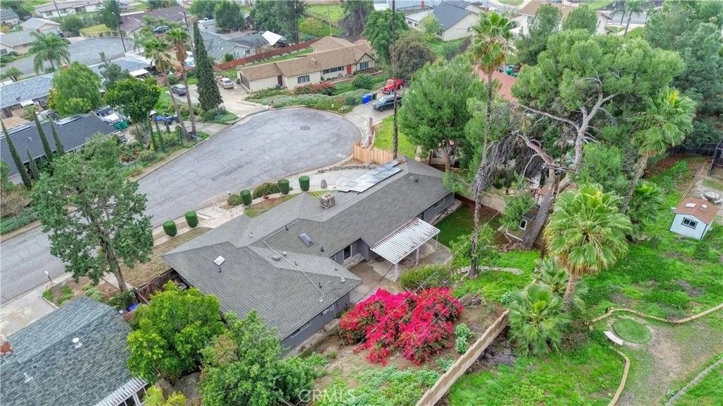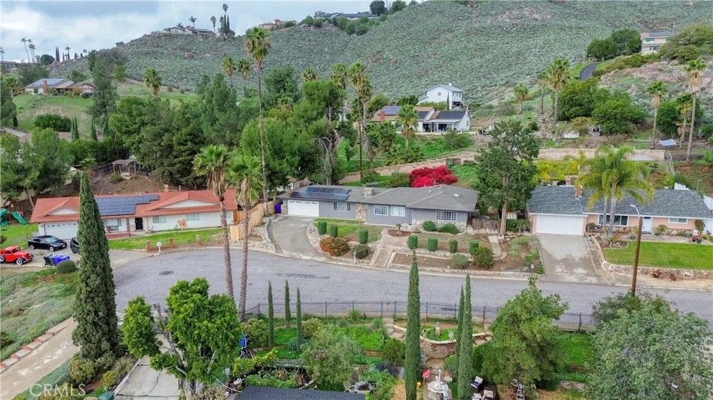 Welcome to this beautifully maintained and move in ready single story home tucked away on a quiet cul de sac in Jurupa Valley. Offering 3 bedrooms, 2 bathrooms and 1,855 square feet of comfortable living space on a large 10,019 sq ft lot. Originally built in 1960, the home has been thoughtfully updated over the last decade, including all new paint on the interior and exterior, blending mid century character with modern convenience. From the moment you arrive, you'll notice the excellent curb appeal and pride of ownership. Step inside to find wood flooring throughout and a bright, open layout thats perfect for both daily living and entertaining. The kitchen has a vaulted ceiling with a skylight, granite countertops, and lots of cabinetry ideal for any home chef. The adjacent living and family rooms each feature a large cozy brick fireplace, creating a warm ambiance for gatherings or relaxing evenings at home. Both bathrooms have been stylishly updated, with the hall bathroom also enhanced by a skylight that fills the space with natural light. Energy efficient dual pane windows, central heating & air, and a solar panel system keeps the interior comfortable year-round while helping to reduce utility costs. Indoor laundry with storage and lots of counter space adds everyday convenience. Outside, your own private backyard oasis awaits with artificial grass throughout the yard. The large backyard is ideal for entertaining, featuring a large covered patio for weekend barbecues and an above-ground hot tub for relaxing under the stars. Enjoy panoramic city views from the front yard, providing a scenic backdrop to your evenings. The propertys tranquil setting and cul de sac location creates a peaceful retreat with plenty of space for everyone. A large custom shed offers additional storage or potential as a workshop, and the attached two-car garage provides lots of room for tools, gear, and secure parking. This solar-equipped, energy-efficient home truly has it all modern upgrades, fantastic amenities, and an ideal location. Nestled in a great neighborhood close to shopping, dining, freeway access, and outdoor recreation, this home delivers the perfect blend of tranquility and convenience. With its many recent improvements and meticulous care, this home is move in ready all it needs is you! Don't miss the chance to call this exceptional Jurupa Valley home your own.