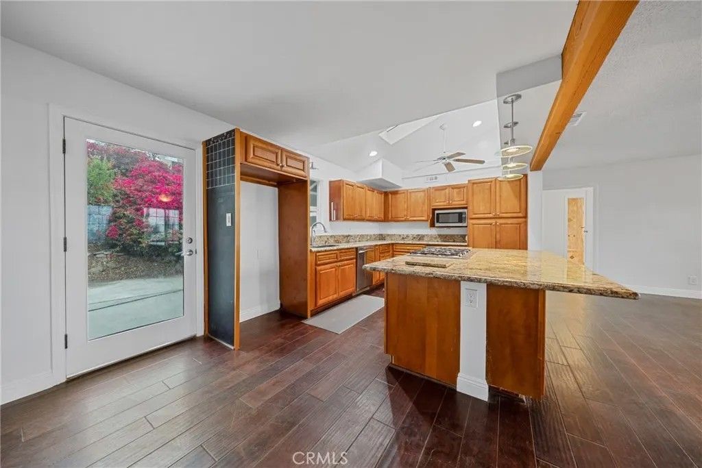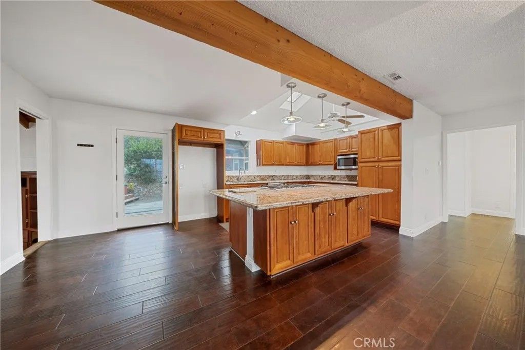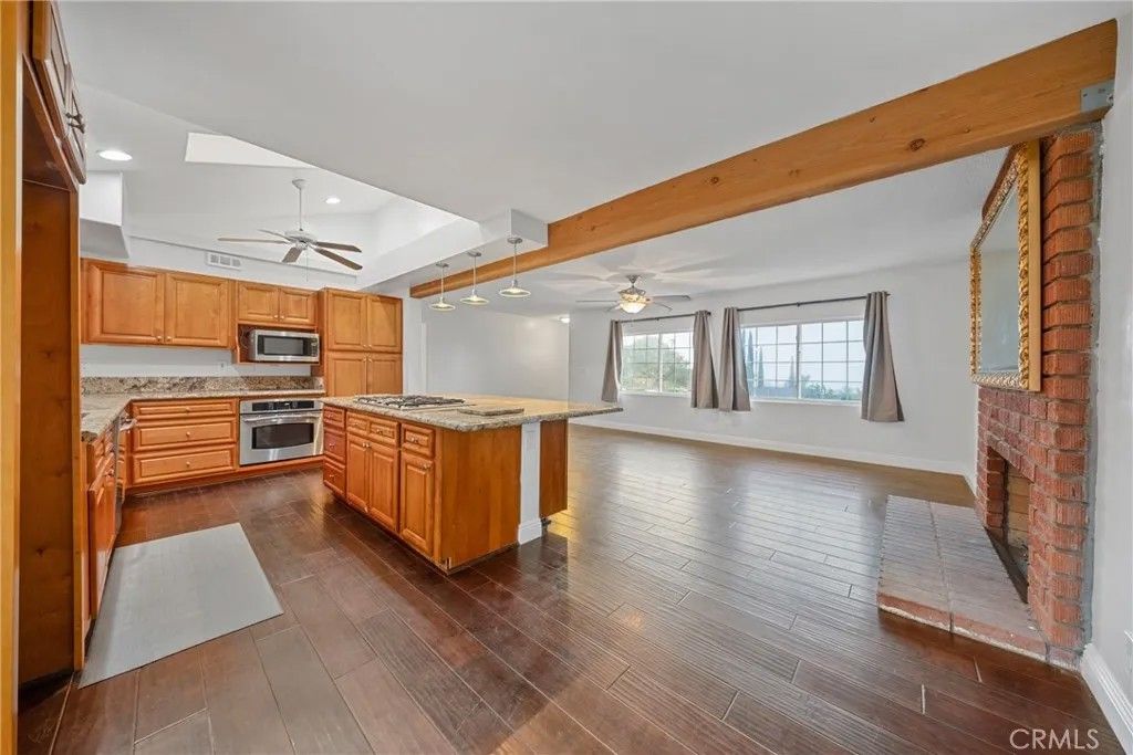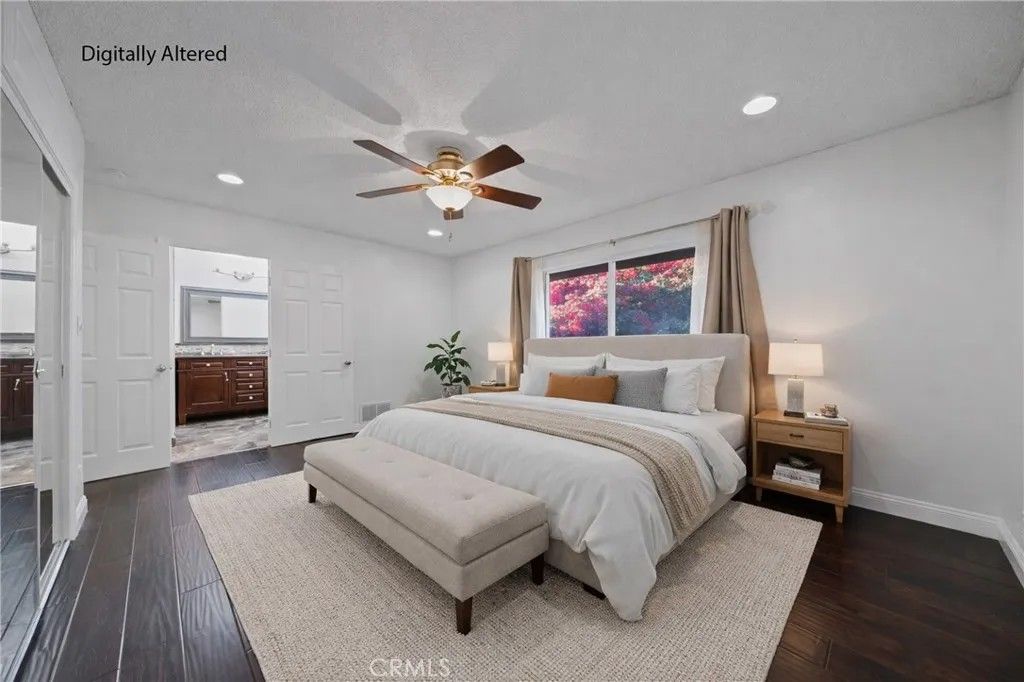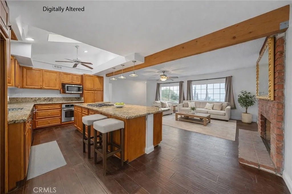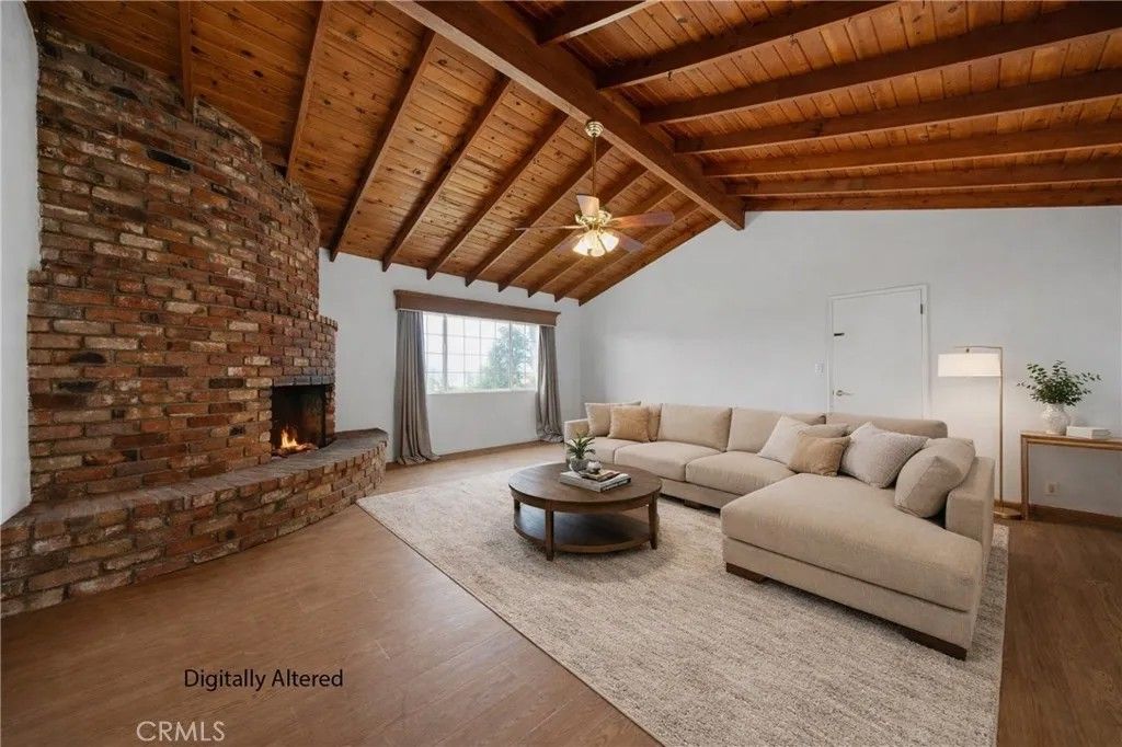 Welcome to this beautifully maintained and move in ready single story home tucked away on a quiet cul de sac in Jurupa Valley. Offering 3 bedrooms, 2 bathrooms and 1,855 square feet of comfortable living space on a large 10,019 sq ft lot. Originally built in 1960, the home has been thoughtfully updated over the last decade, including all new paint on the interior and exterior, blending mid century character with modern convenience. From the moment you arrive, you'll notice the excellent curb appeal and pride of ownership. Step inside to find wood flooring throughout and a bright, open layout thats perfect for both daily living and entertaining. The kitchen has a vaulted ceiling with a skylight, granite countertops, and lots of cabinetry ideal for any home chef. The adjacent living and family rooms each feature a large cozy brick fireplace, creating a warm ambiance for gatherings or relaxing evenings at home. Both bathrooms have been stylishly updated, with the hall bathroom also enhanced by a skylight that fills the space with natural light. Energy efficient dual pane windows, central heating & air, and a solar panel system keeps the interior comfortable year-round while helping to reduce utility costs. Indoor laundry with storage and lots of counter space adds everyday convenience. Outside, your own private backyard oasis awaits with artificial grass throughout the yard. The large backyard is ideal for entertaining, featuring a large covered patio for weekend barbecues and an above-ground hot tub for relaxing under the stars. Enjoy panoramic city views from the front yard, providing a scenic backdrop to your evenings. The propertys tranquil setting and cul de sac location creates a peaceful retreat with plenty of space for everyone. A large custom shed offers additional storage or potential as a workshop, and the attached two-car garage provides lots of room for tools, gear, and secure parking. This solar-equipped, energy-efficient home truly has it all modern upgrades, fantastic amenities, and an ideal location. Nestled in a great neighborhood close to shopping, dining, freeway access, and outdoor recreation, this home delivers the perfect blend of tranquility and convenience. With its many recent improvements and meticulous care, this home is move in ready all it needs is you! Don't miss the chance to call this exceptional Jurupa Valley home your own.