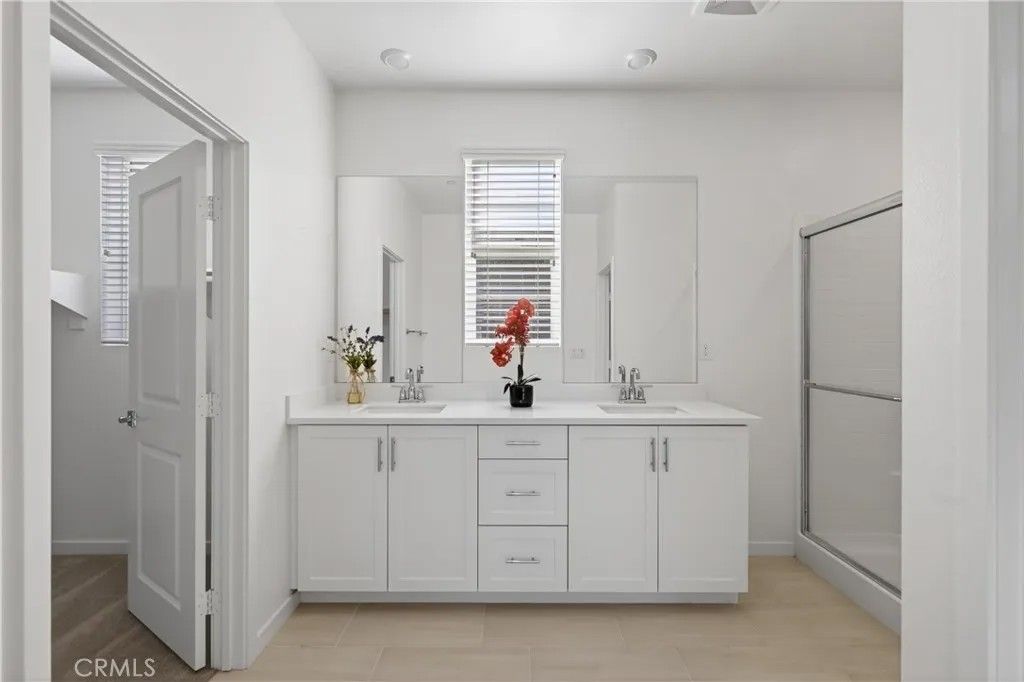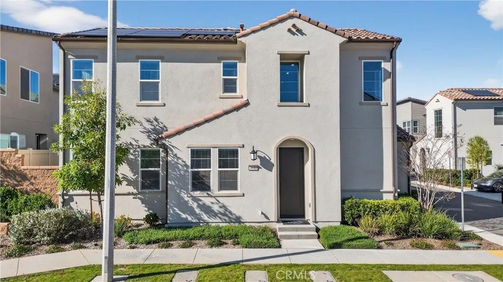 Welcome to this highly upgraded corner-lot home tucked within the sought-after gated Bedford community in South Corona. With 4 bedrooms and 3 full baths, the curb appeal and prime location set the tone for what awaits inside. Step through the entry into an open and spacious layout, where upgraded flooring flows seamlessly throughout the main living areas. The large living room, dining area, and kitchen are designed for everyday and effortless entertaining. The kitchen is a standout with upgraded countertops, stylish cabinetry, and stainless steel appliances. A downstairs bedroom and full bathroom provide ideal guest accommodations, multigenerational living or a private home office setup. Upstairs, large guest bedrooms include one with a walk-in closet, while a large laundry room adds convenience. Retreat to the spacious primary suite featuring plenty of natural light and an en-suite bath with modern finishes. Outside, enjoy the beautifully designed California Room and large patio yard, perfect for relaxing, dining, and entertaining under the Southern California sky. Additional features include paid off solar, included luxury washer/dryer and attached 2 car garage. This is one of the best lots in the community, offering privacy, an excellent view and directly across from one of the pool areas. There is view of the mountains from all sides of the house. Residents of Bedford enjoy access to a resort-style lifestyle with top-tier amenities at Hudson House and The Shed, including multiple pools, spas, lounges, fitness parks, trails, dog parks, and a phenomenal shopping center, featuring Amazon Fresh, Starbucks and EOS Fitness, along with many dining options. The Crossing and Dos Lagos shopping centers are minutes away. With direct access to public trails leading to Cleveland National Forest and located near top schools, shopping, and 15, 91, 71 and Foothill Expressway freeways, this is the lifestyle you've been waiting for.