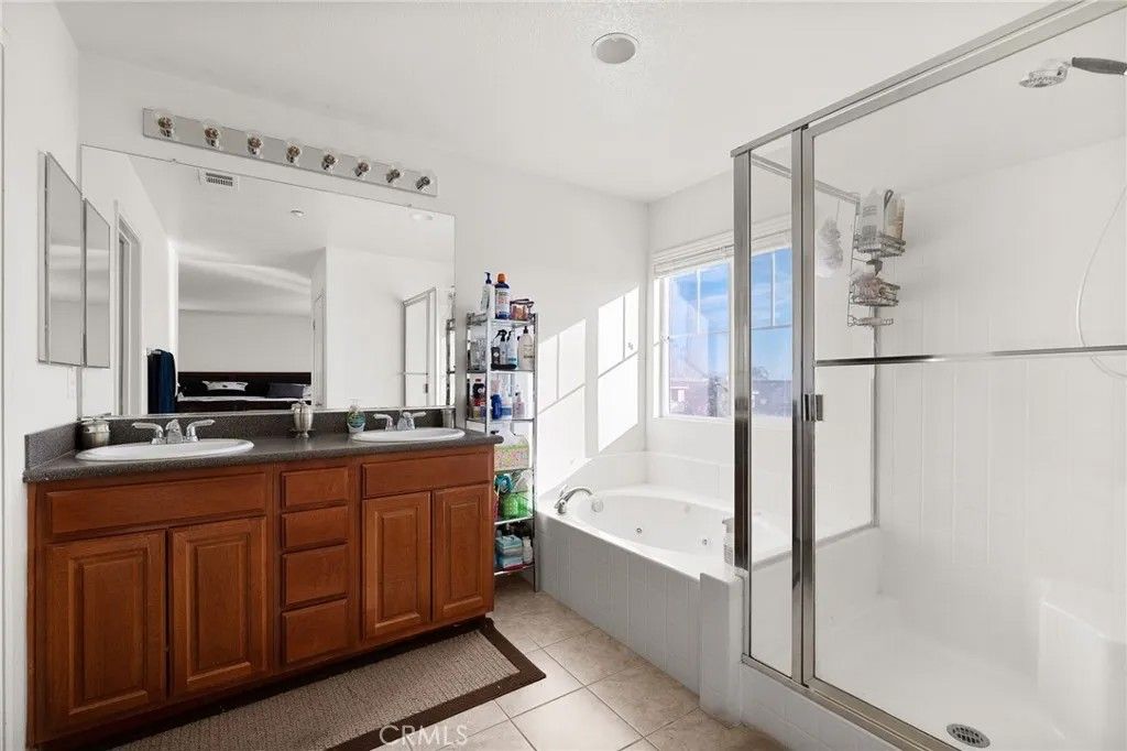 Welcome to the HIGHLY DESIRABLE "GOLF COURSE" Community of Sierra Lakes!! NO HOA FEES - NO SOLAR PACKAGE TO ASSUME!! Enjoy this Nicely UPGRADED Two-Story Home in a Family-Friendly Neighborhood and WALKING DISTANCE to ALL AMMENITIES!! PERFECT for the EXTENDED FAMILY... This Home has an EXPANSIVE OPEN-CONCEPT Floor-Plan Offering 2749sqft with (4) Large Bedrooms, UPSTAIRS LOFT and 3.5 Bathrooms * * This MODEL has TWO MASTER BEDROOMS * * Wonderful ISLAND Kitchen with CORIAN Counter-Tops, STAINLESS STEEL Appliance Package, Walk-In Pantry, Breakfast Counter for the Kids and In-Kitchen Dining Area * * Terrific Family Room with Cozy Fireplace, Inlayed Berber Carpet, Media Niche and 18" Tiled Floors Throughout * * FORMAL LIVING ROOM and FORMAL DINING ROOM are PERFECT for Family Gatherings * * UPGRADES & IMPROVEMENTS Include Plantation Shutters, Recessed Lighting, TILED Flooring, Corian Counters, Stainless Steel Appliances, Rain Gutters and MUCH MORE * * SPACIOUS Master Bedroom with Berber Carpet & LARGE Walk-In Closet - AND - Master Bathroom with His & Her Sinks, Walk-In Shower and ROMANTIC JETTED TUB to Relax * * 2nd MASTER Bedroom has AMPLE SPACE and is PERFECT for Guests, The In-Laws or the Teenager who needs their OWN PRIVATE BATHROOM * * UPSTAIRS Bonus Room/Loft can be used as a PLAY-ROOM, OFFICE or Exercise Studio * * (2) Additional Nicely Appointed Bedrooms * * INDOOR LAUNDRY ROOM * * Low Maintenance Backyard with Covered Sitting Area, Fruit Trees, Block Walls and PLENTY of SPACE for the KIDS TO PLAY * * WONDERFUL Curb Appeal with 2 Car Attached Garage * * Terrific Location is MINUTES to the SIERRA LAKES Golf Course & Clubhouse, Shopping, Dining/Restaurants, Coffee Shops, Golf Course, Parks, Schools and EZ Freeway Access for the Commuter!!