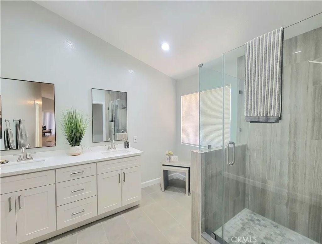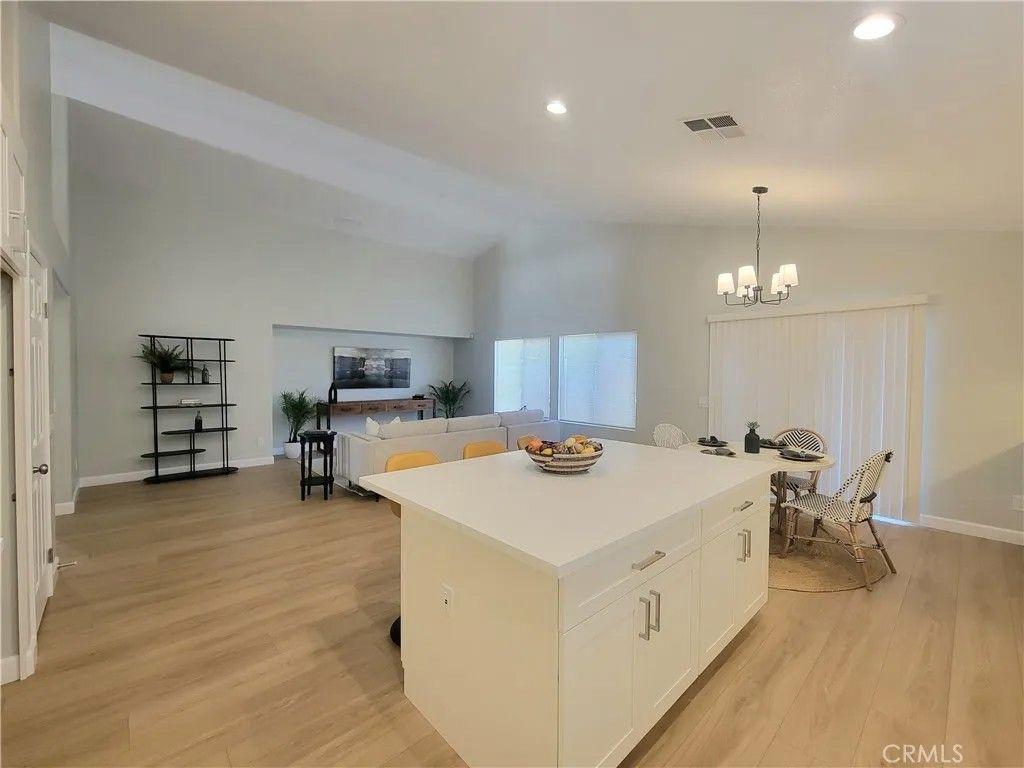 This one is an absolute stunner! This gorgeous, South Corona, single story home has just been remodeled in the most tasteful of tones! This beautiful remodel is a compete showcase of modern meets elegance! The double door entry walks you right into an open floorplan that flows very well! We have three spacious bedrooms, including a huge primary suite with two walk-in closets and a slider to the back yard!. The super wide dining/living room area allows for the possibility of conversion to 4th bedroom, maybe even a 5th. A few of the freshly upgraded features include a massive, center island kitchen with tons of cabinets, quartz countertops, new stainless appliances, new lighting fixtures throughout, new waterproof plank laminate flooring throughout, new paint, completely remodeled bathrooms and a remodeled indoor laundry room with a sink. Being nicely sitiated on a corner lot of the interior of the tract allows for extra privacy. The back yard has plenty of space to add a pool or whatever else you can dream up to fill the space! The prime, South Corona location is excellent with schools, parks, shopping, and restaurants all nearby. LOW TAXES AND NO HOA!