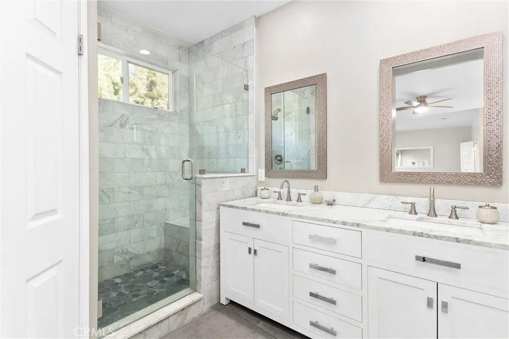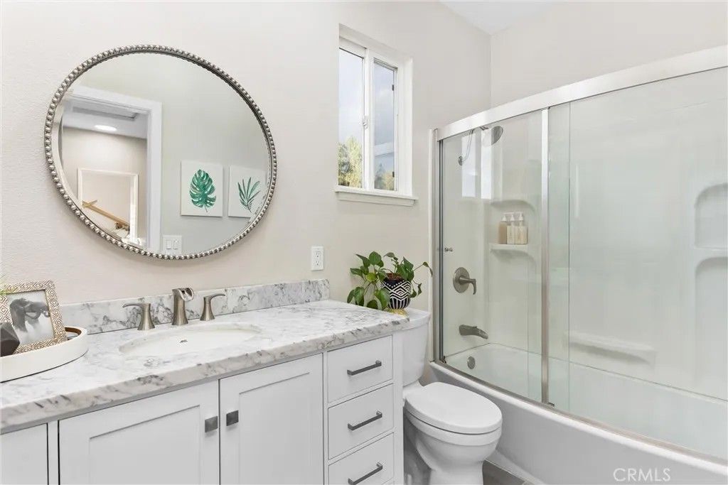Welcome to this beautifully maintained 4-bedroom, 2.5-bath home with a spacious bonus room or optional 5th bedroom conveniently located downstairs ideal for guests, a home office, or multi-generational living. Situated on a quiet cul-de-sac in highly desirable Upper Yucaipa, this property offers space, flexibility, and the added benefit of NO HOA. Designed for both comfortable living and effortless entertaining, the open floor plan features a formal living room, inviting family room, and dining area that flows seamlessly for everyday living. Plantation shutters throughout add timeless elegance and privacy. Smart features included smoke and co2, nest thermostat,and google home lighting. The remodeled primary bathroom offers dual sinks and updated finishes, creating a relaxing retreat. Major system upgrades include new air conditioning and a heat pump (2022), and a whole-house fan for enhanced year-round efficiency. One of the standout features of this home is the owned solar system completely paid in full, offering long-term energy savings without lease payments or added obligations. Step outside to a true entertainers backyard complete with a brand-new Alumawood covered patio with lighting (2020) and an outdoor barbecue area perfect for gatherings. The property also offers excellent storage, storage sheds, and impressive RV access parking up to approximately 50 feet in length (if shed is removed), 50 amp RV hook-up. Additional highlights include a beautiful two-car attached garage and a prime location in one of Upper Yucaipas most sought-after neighborhoods all with NO HOA fees or restrictions. This is a rare opportunity to own a move-in ready home with space, upgrades, energy efficiency, and flexibility in an exceptional location. Situated down the street from Flag Hill Park, Yucaipa Regional Park, community center, and minutes from Oak Glen. This home won't last long!!