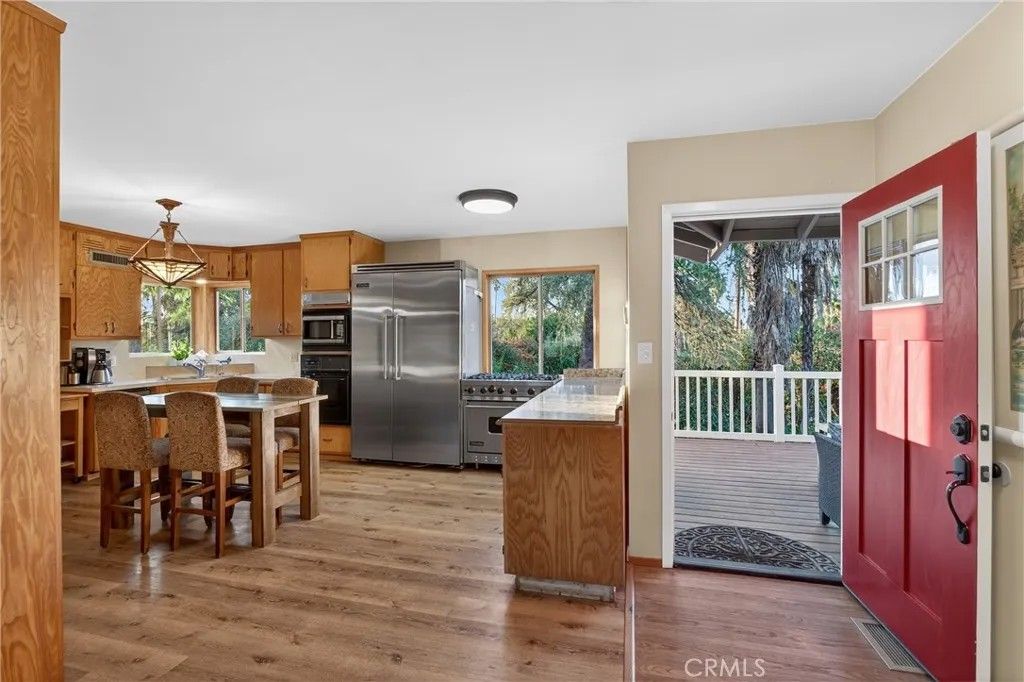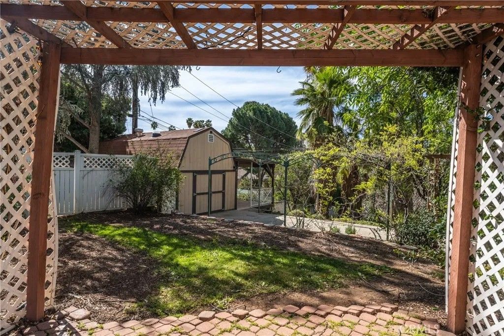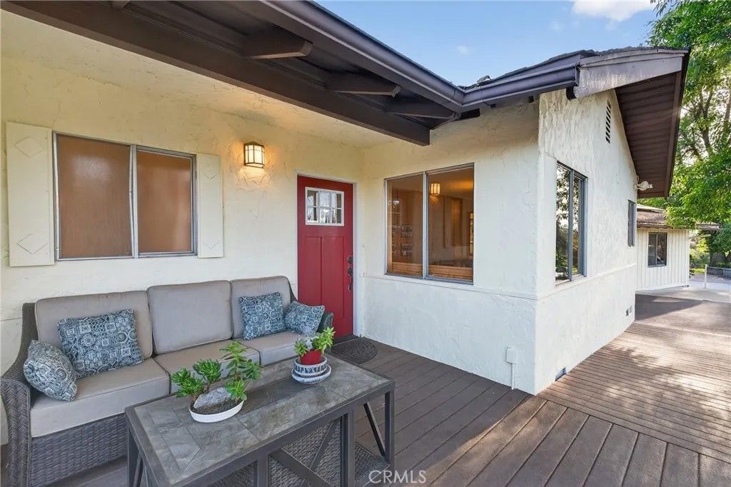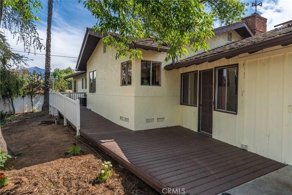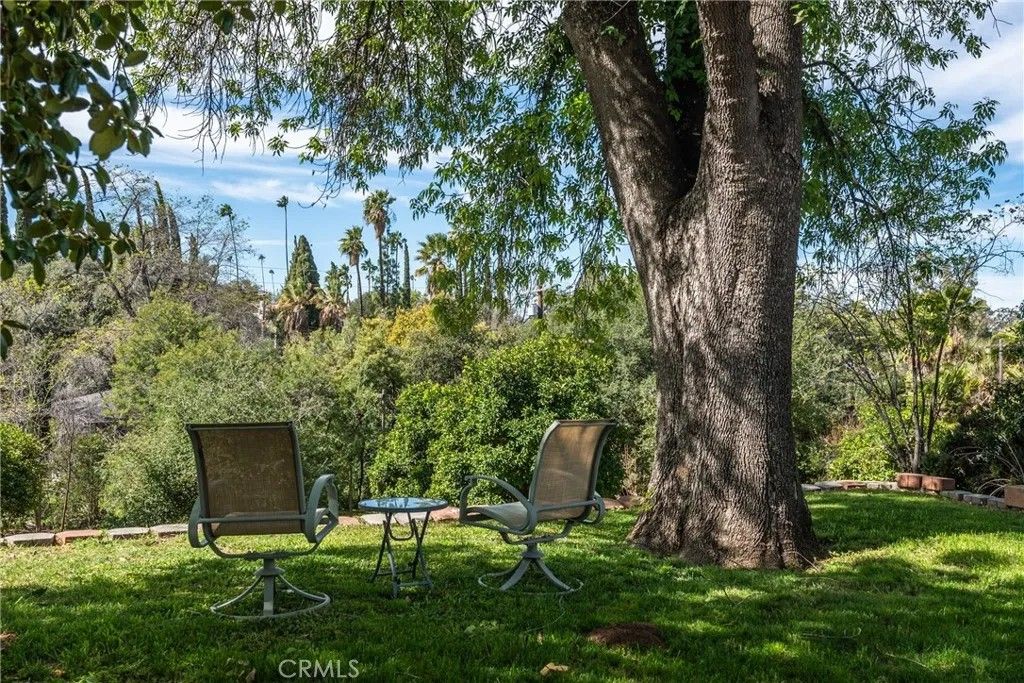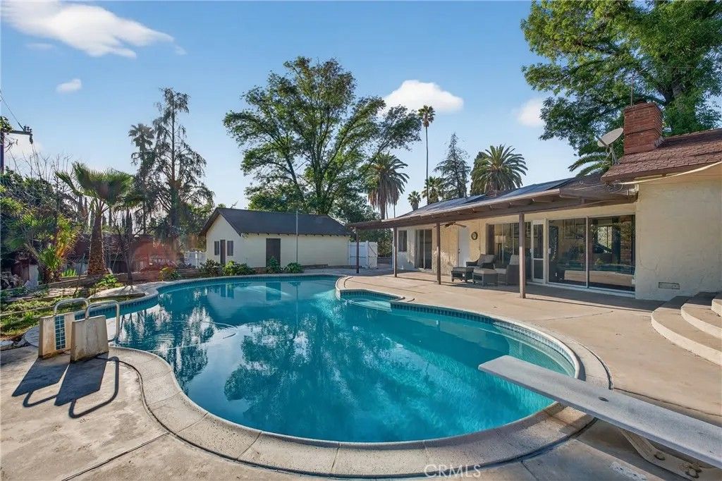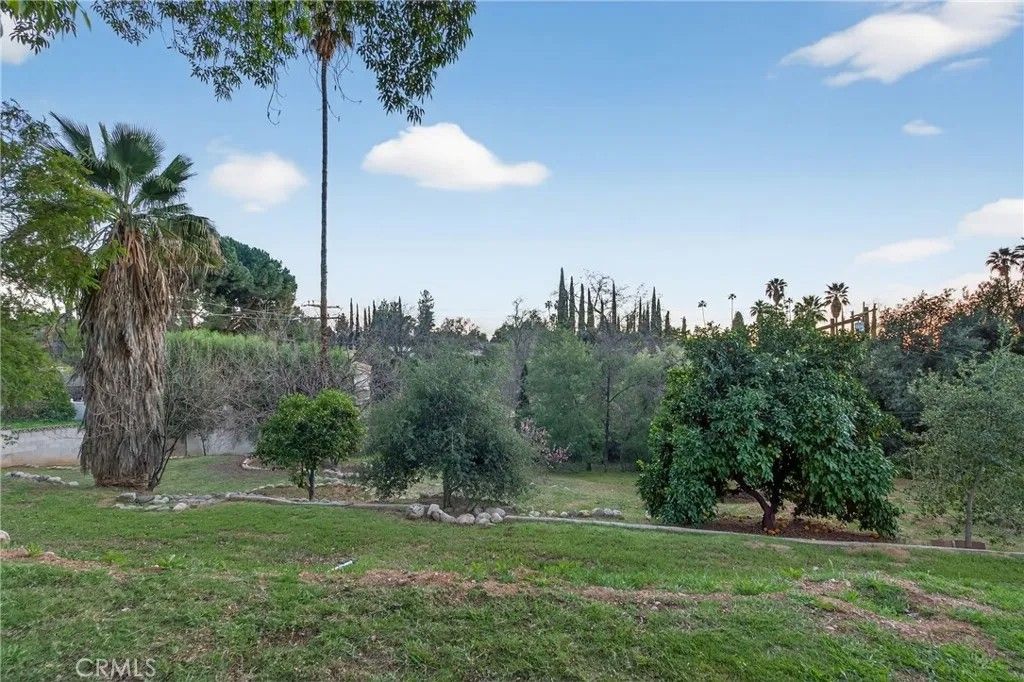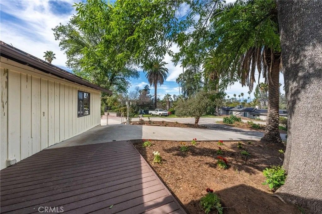 A single-story ranch-style estate nestled on 1.4 acres of sprawling gardenscapeyour own private park in South Redlands. Enjoy stunning sunset and mountain views with a direct sightline to the Redlands R. A private road leads to a gated circular driveway that, along with two garages and an RV space, significantly expands parking. The house has been newly painted! Inside, find warm wood tones and spacious living areas that flow seamlessly. The kitchen is equipped with ample cabinet space and high-end Viking stainless steel appliances, including a professional-grade six-burner stove and a refrigerator. Your primary bedroom features an ensuite bath and patio access via a sliding door. Includes a recently installed high-efficiency HVAC system and solar panels for significant energy savings! Whats more, the home is wired for a generator (generator included at buyers request), which can power the fridge, lights, and outlets in case of an outage. In the peace and solitude of your private sanctuary, discover an organic orchard of fruit trees, including six grapefruit trees, navel & valencia oranges, blood orange, meyer lemon, key lime, kumquat, Santa Ana plum, nectoplum, Double Delight nectarine, Red Baron peach, pomegranate, pineapple guava, and quince. Your personal garden also boasts culinary herbs and numerous planting beds and terraces. The backyard offers even more places to relax and unwind throughout the season, whether you want to cozy up around the fire pit or under the misting system, find zen-like tranquility by the koi pond, or cannonball into a large in-ground pool. Several bird species frequent the grounds. Zoned for horses. Within walking distance of beautiful Prospect Park. Part of the highly-rated Redlands Unified School District.