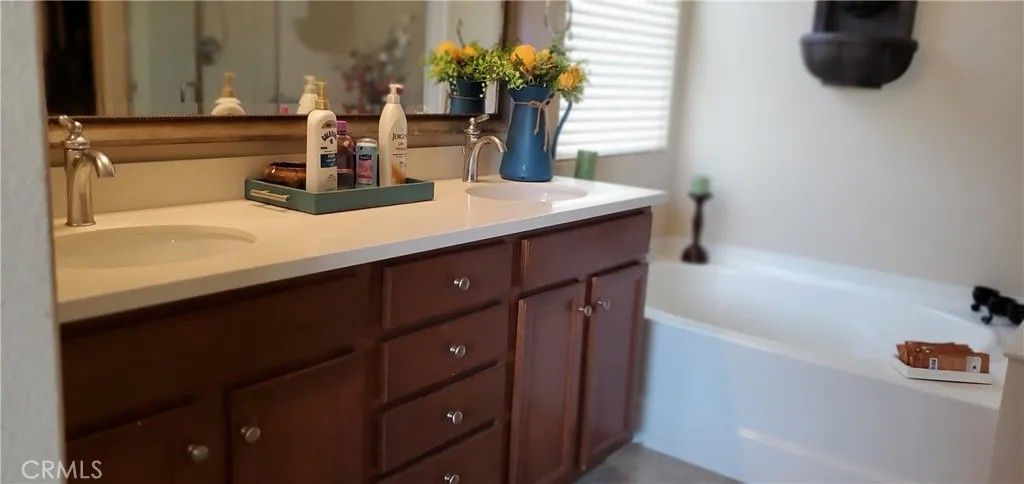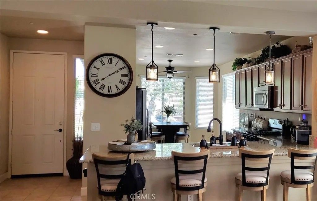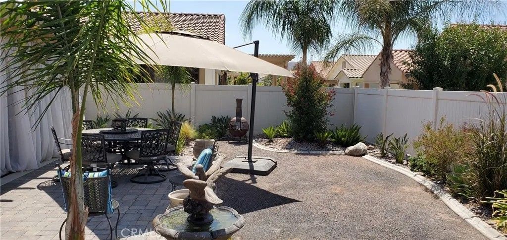 The Del Webb name says it all, Luxury & Amenities! At Solera Diamond Valley, it's like vacation every day. This is a 55+ community where you can be as active as you want or as relaxed as you need. Come and see this beautiful 2 Bedroom / 2 Bathroom home in the heart of beautiful West Hemet near the Diamond Valley Reservoir, great golf courses and a short drive to the Temecula Wine Country. This is a truly one-of-a-kind home with many custom upgrades. The primary bedroom suite has a tray ceiling, an actual walk-in/roll-in shower and a separate soaking tub as well as, generous walk-in closet. The spacious kitchen has granite counters. a large panty and a bay window dining area overlooking the front yard fountain. It also offers a breakfast bar with custom pendant lighting for your enjoyment. There are custom ceiling fans throughout and a Quiet Cool Whole House Fan. Step outside to the back patio where you will likely want to kick off your shoes and sit right down and enjoy your favorite game or movie on your 75" TV mounted within the designed stone fireplace feature. Close the curtains for privacy and an afternoon nap or open them wide to entertain family and friends. This home has 2 water features that operate conveniently by switch; the hummingbirds love them and provide quite a show as they play around them. Speaking of playing around, join in the events, clubs and activities of the Mountain View Lodge to your heart's content. Face it, this is the good life you've been waiting for, and this home is PRICED TO SELL! Make it yours today! More photos, and showing opportunities, coming soon,