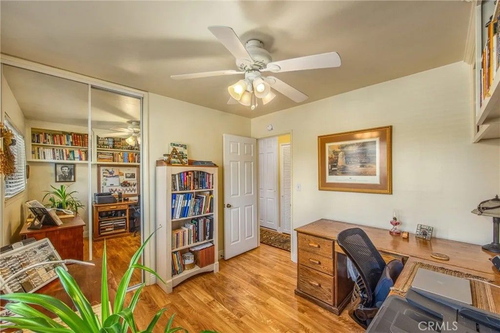 On a quiet cul-de-sac, youll find this charming three-bedroom home that blends beautiful upgrades and inviting outdoor spaces. Do you prefer quality over quantity? Then this may be the home for you. The updated kitchen features custom hickory cabinets, granite countertops, and a porcelain tile backsplash and flooring - this floor is virtually indestructible. A clever conversion of the entry closet adds valuable extra kitchen storage, while a peninsula creates a seamless connection to the living roomperfect for casual seating on the kitchen side and a built-in bookcase on the living room side. This warm and welcoming living room has new laminate flooring, a custom-tiled fireplace with glass gold tiles, retextured walls, and French doors that bring in natural light. The vinyl double-pane windows were custom made with crank handles to reflect the era of the home - easy breezy to open and close. Major improvements provide peace of mind, including a new cool roof (2020), Sunrun solar system (2022), water heater (2024), and energy-efficient Carrier HVAC system (2025), precluding the buyer from making costly repairs. Both bathrooms feature new flooring, and the guest bath is enhanced with a glass block window and a Solatube skylight with exhaust fan for added light and ventilation. Custom built-in bookcases in third bedroom, attached at the ceiling, so they wont interfere with furniture arranging. Step outside to a vibrant yard filled with abundant flowers and a variety of drought-tolerant blooming plants, all maintained with automatic drip irrigation. The property also features a carport alongside the garage, topped with a pergola and secured with both pedestrian and vehicle gates. Mature treesincluding fig, lemon, apricot, peach, pomegranate, Chinese flame, Ash and birchadd beauty, shade, and a touch of orchard living to this special home. *Buyer to confirm schools*