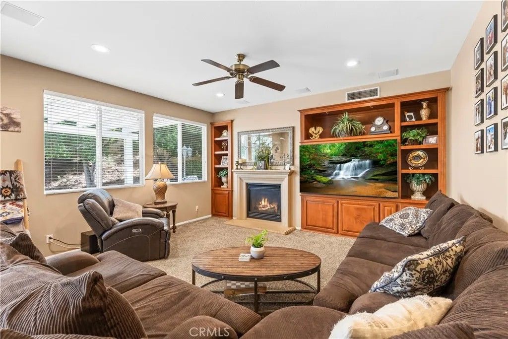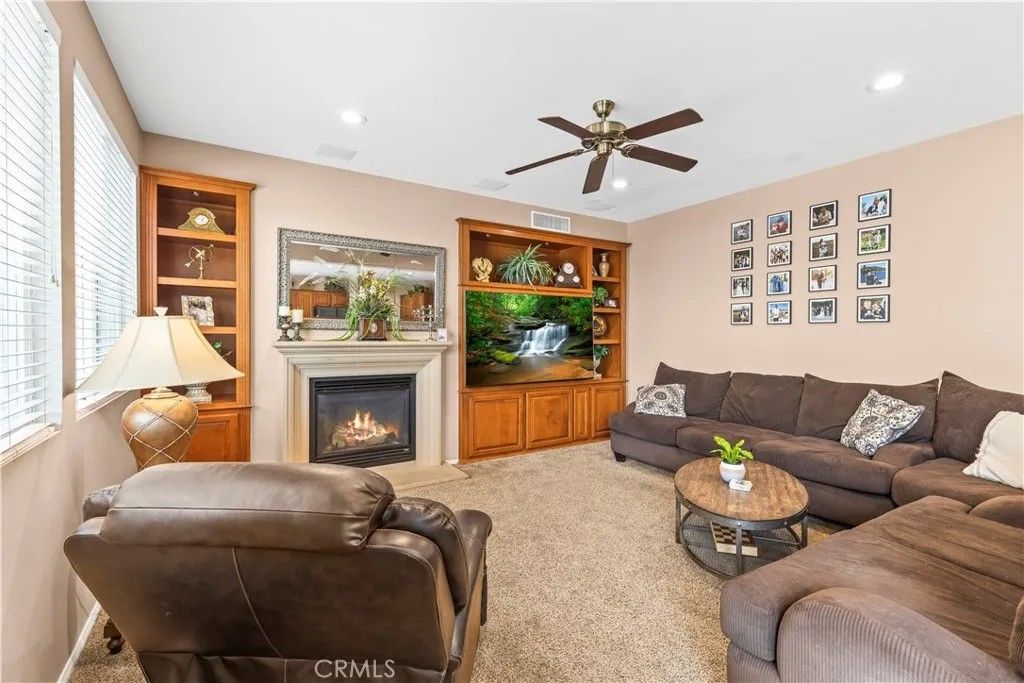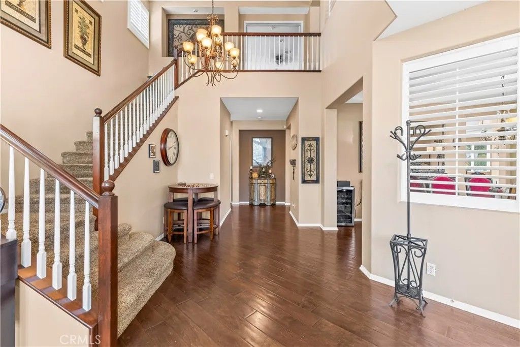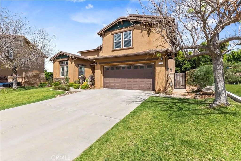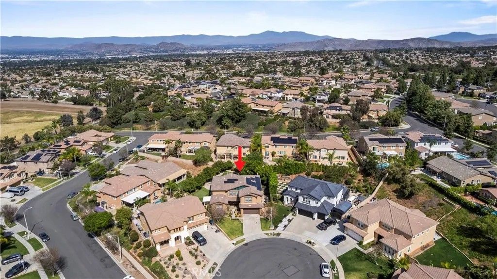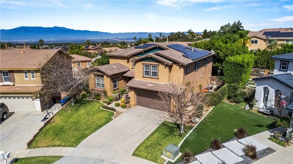 Impressive views. Expansive living. Prime location. Your search is over! Welcome to a model-perfect residence tucked away on a private cul-de-sac, offering 3,572 sq ft of living space on a generous 10,018 sq ft sized lot that offers excellent potential for an ADU and/or pool, providing flexibility for extended family or future rental income. Complete with a 3-car garage, views of the city lights, surrounding mountains, and the natural beauty of the Cleveland National Forest. Ideally located just minutes from Orange County, this home delivers the perfect balance of accessibility and tranquility, with the renowned Skyline Trail just moments away. The thoughtfully designed floorplan features 5 bedrooms, 4 bathrooms, and a spacious loft, including a large upstairs bedroom with its own attached bathroom (junior suite). Interior highlights include hardwood flooring, travertine tile, soft water system and water purifier, an upgraded kitchen with granite countertops, maple cabinetry with glass accents, double oven and stainless steel appliances. The family room includes custom built-in cabinetry, and opens to the main living areas. A highly desirable main-floor bedroom and full bathroom with walk-in shower provides flexibility for guests or multi-generational living. Upstairs, the expansive primary suite includes a dedicated sitting area, upgraded bathroom, and walk-in closet with built-ins. Additional features include a large loft/bonus room with cabinetry and DUAL STAIRCASES plus surround sound in the family room, primary bedroom and the loft. Recent upgrades include two brand new air conditioning systems and a fully paid solar system. The backyard features low-maintenance turf, a putting green, a covered patio, and extended concrete hardscape, offering a spacious setting for outdoor living and entertaining. Located within the Corona-Norco Unified School District, with access to well-rated local schools plus minutes from shopping, dining, and entertainment at The Crossings at Corona and Dos Lagos. Some photos have been digitally enhanced