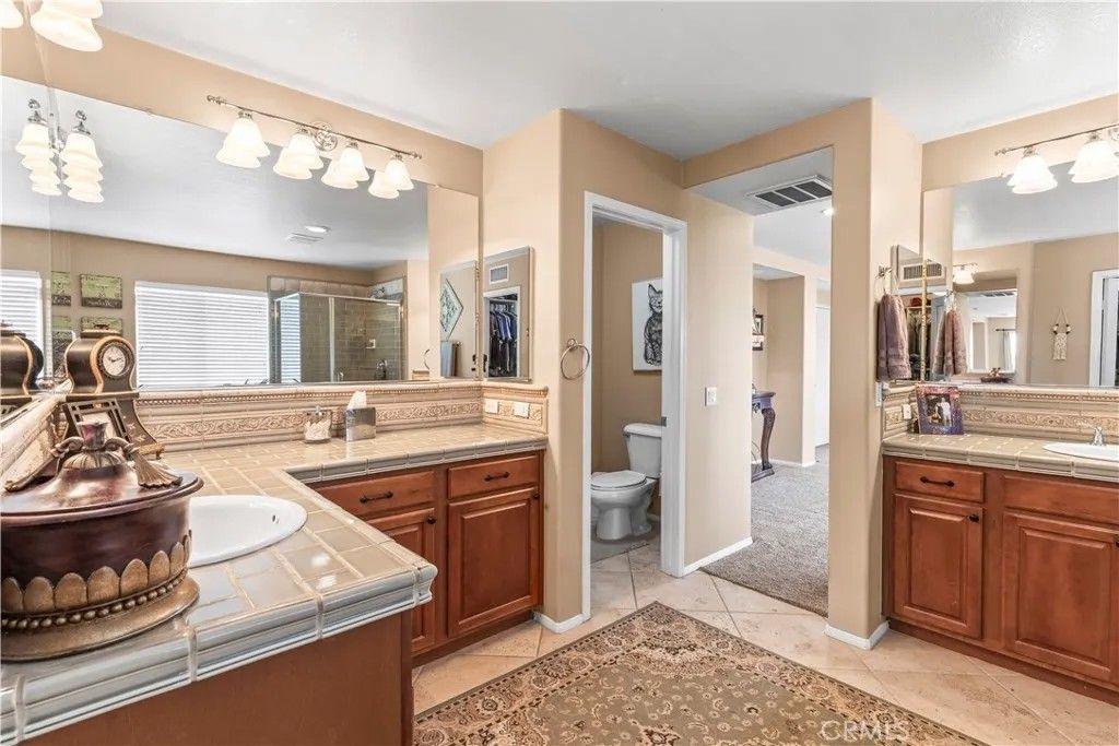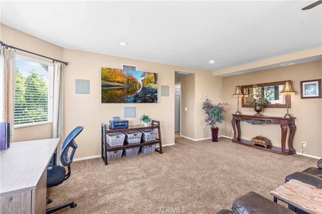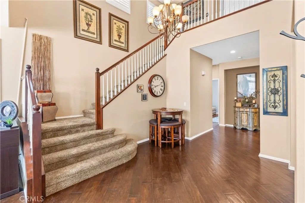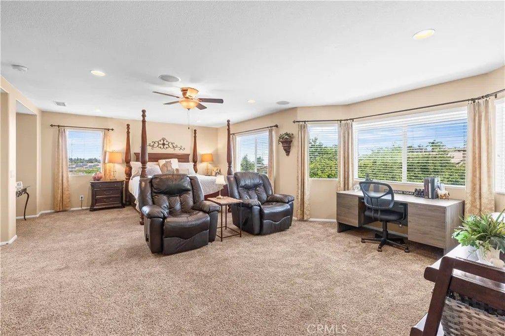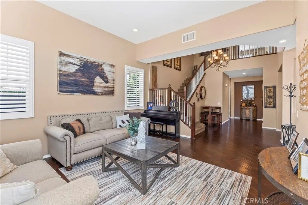 Impressive views. Expansive living. Prime location. Your search is over! Welcome to a model-perfect residence tucked away on a private cul-de-sac, offering 3,572 sq ft of living space on a generous 10,018 sq ft sized lot that offers excellent potential for an ADU and/or pool, providing flexibility for extended family or future rental income. Complete with a 3-car garage, views of the city lights, surrounding mountains, and the natural beauty of the Cleveland National Forest. Ideally located just minutes from Orange County, this home delivers the perfect balance of accessibility and tranquility, with the renowned Skyline Trail just moments away. The thoughtfully designed floorplan features 5 bedrooms, 4 bathrooms, and a spacious loft, including a large upstairs bedroom with its own attached bathroom (junior suite). Interior highlights include hardwood flooring, travertine tile, soft water system and water purifier, an upgraded kitchen with granite countertops, maple cabinetry with glass accents, double oven and stainless steel appliances. The family room includes custom built-in cabinetry, and opens to the main living areas. A highly desirable main-floor bedroom and full bathroom with walk-in shower provides flexibility for guests or multi-generational living. Upstairs, the expansive primary suite includes a dedicated sitting area, upgraded bathroom, and walk-in closet with built-ins. Additional features include a large loft/bonus room with cabinetry and DUAL STAIRCASES plus surround sound in the family room, primary bedroom and the loft. Recent upgrades include two brand new air conditioning systems and a fully paid solar system. The backyard features low-maintenance turf, a putting green, a covered patio, and extended concrete hardscape, offering a spacious setting for outdoor living and entertaining. Located within the Corona-Norco Unified School District, with access to well-rated local schools plus minutes from shopping, dining, and entertainment at The Crossings at Corona and Dos Lagos. Some photos have been digitally enhanced