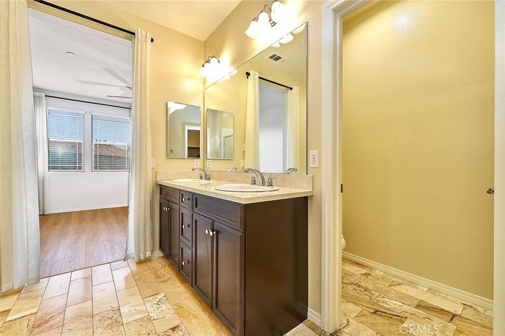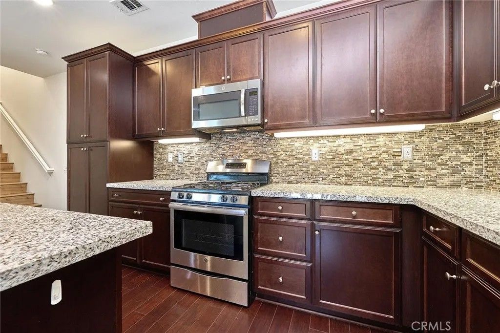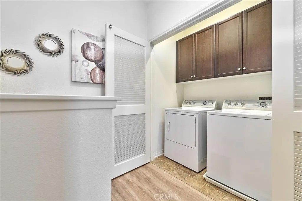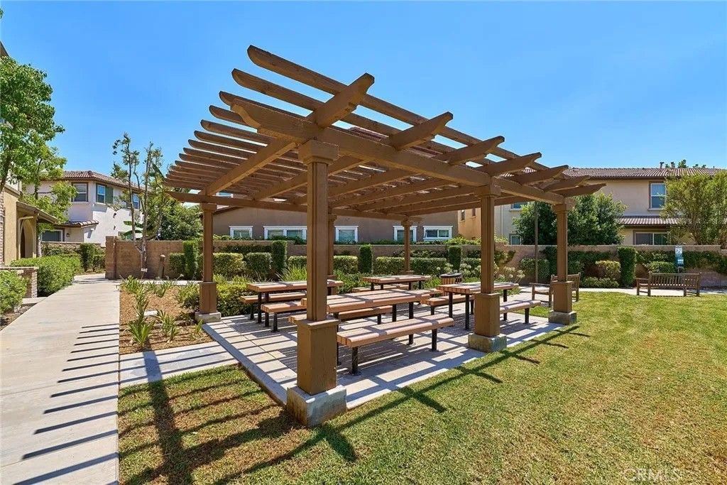 Welcome to this beautifully upgraded two story townhouse located in the highly desirable Morgan Square neighborhood within the College Park community of Chino. This well maintained home offers 2 spacious bedrooms and 2.5 bathrooms, combining modern comfort with an exceptional location. Unlike many homes in the community, this residence enjoys an open front setting with no buildings directly in front, allowing for a more open feel and pleasant views. The open concept main level features wide plank hardwood flooring throughout, a bright and inviting great room, and a dedicated dining area. The gourmet kitchen is designed for both functionality and style, showcasing granite countertops, a mosaic tile backsplash, custom cabinetry, stainless steel appliances, and a center island perfect for everyday living and entertaining. A generously sized powder room and a private covered patio provide added convenience and ideal indoor and outdoor living. Upstairs, you will find a convenient laundry room and two private en suite bedrooms. The primary suite features dual vanities, Travertine flooring, a separate soaking tub and shower, a walk in closet, and a private toilet room. The secondary suite also includes its own full bathroom, offering flexibility for guests or multi generational living. Additional highlights include a 2 car attached garage, tankless water heater, and designer interior paint. The home is also energy efficient with well maintained heating and cooling systems that help keep utility costs low throughout the year. Ideally situated facing the community picnic area with a playground just steps away. Residents of College Park enjoy resort style amenities, including two swimming pools, a spa, kids splash zone, fitness center, clubhouse, BBQ areas, multiple parks, basketball and tennis courts, and more. Located within the award winning Chino Valley Unified School District and close to shopping, dining, and major freeways, this home offers an outstanding opportunity for comfortable living in a vibrant community.