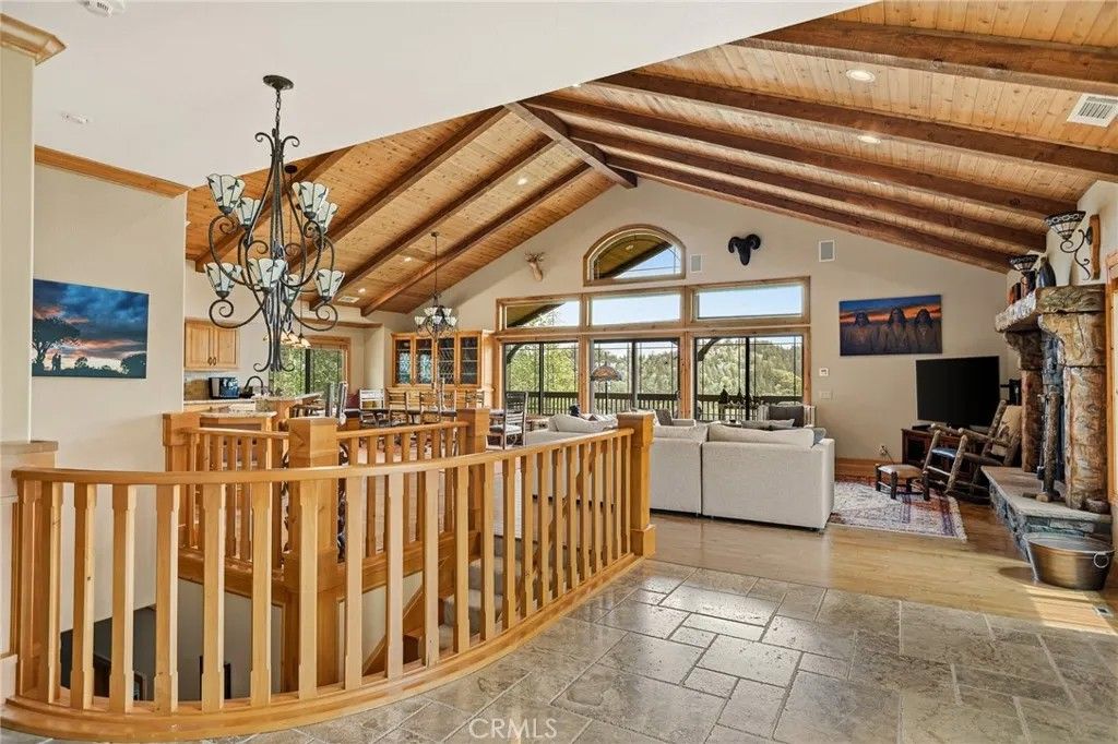 Welcome to this spectacular furnished, turnkey view home located in Lake Arrowhead. This custom home offers 3 bedrooms, 3.5 baths, and an expansive 3,549 sq. ft. open floorplan designed for comfort and entertaining. The main level features a chefs kitchen with newer stainless-steel appliances, granite countertops, garden window, center island with breakfast bar, wine fridge, plenty of cabinets for storage, and walk-in pantry. The large dining room includes a window seat, while the living area showcases a wall of glass capturing beautiful views, a high cathedral wood-beamed ceiling with recessed lighting, and a wood-burning granite fireplace. A half bath is also conveniently located on this level. Additional features include, two coat closets, custom woodwork throughout, built-in desk area, hard wood floors, electronically controlled lighting and water shut-off systems. Level entry from the street leads to a 2-car garage with direct access. The second level down offers a spacious master suite with its own living area, built-in office space, granite fireplace, double sinks, walk-in shower, jetted tub, and built-in dresser, 2 large walk-in closets, one with a dressing area. This level also includes a laundry room with sink, washer and dryer, additional storage, and access to a private deck. The third level features two additional suites, each with walk-in closets, providing privacy and flexibility for guests. Outdoor living includes a large main deck with expansive views and a hot tub, ideal for relaxing or entertaining. The home offers two gas fireplaces and one wood-burning fireplace. Additional highlights include stainless kitchen appliances, washer and dryer, two tankless water heaters, and two newer heater/AC units with a humidification system (all replaced in 2020). An electronically controlled system allows you to shut off house water and drainpipes for added peace of mind while away. Property includes a boat dock located at MBM 13 Slip 13 for the full exclusive Lake Arrowhead experience.