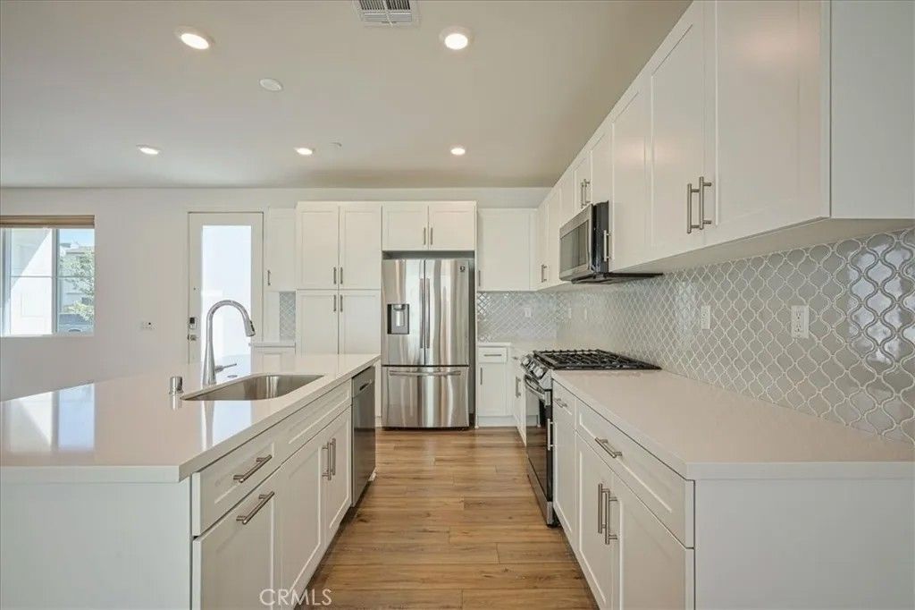 Wonderful community in Ontario Ranch area. Newer development with community offerings and resort-style amenities including a refreshing resort style swimming pool, spa, childrens playground, and dog park. This development blends community living in an upscale neighborhood with modern design and decor. Home feels brand new with stainless appliances in kitchen, beautiful sleek countertops, tile and carpet. Block wall for security and privacy and attached 2 car garage on an end unit. Centrally located just minutes to freeways like the 60 & 15, upscale grocery stores, and a fun food court. And Paid For Solar...you can't ask for more. Move in ready, must see to appreciate.