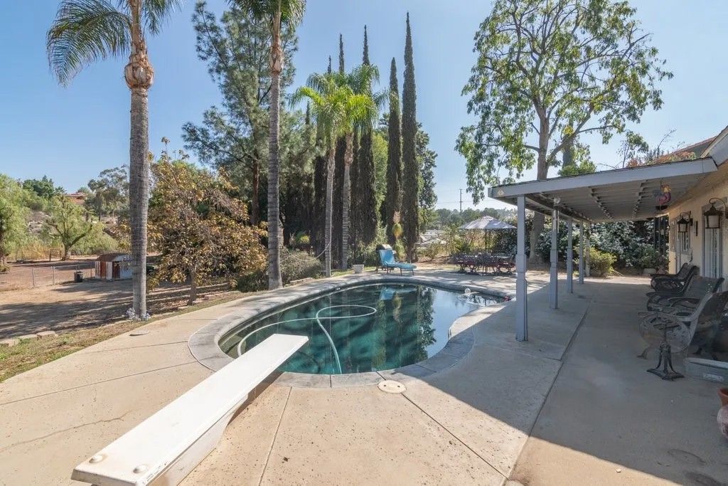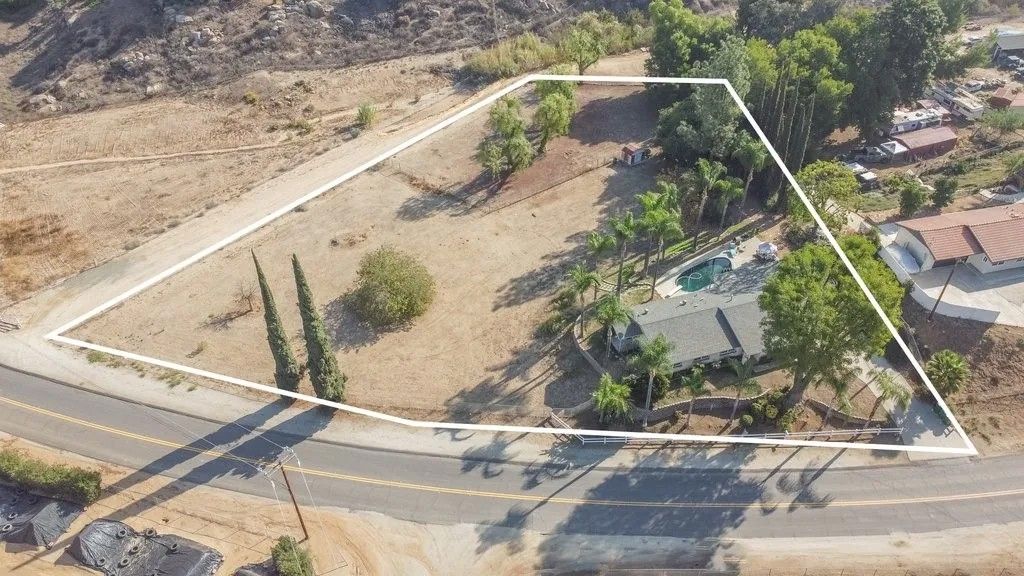 Welcome to this ranch-style home situated on nearly 1.29 acres (56192sqft) flattened land that provides endless opportunities for backyard living or space to care for your horses. Step into this warm and inviting living room that blends rustic charm with spacious comfort. Vaulted ceilings with exposed wooden beams create an open, airy feel, while the beautiful stone double-sided fireplace serves as a stunning focal point between living spaces. The dining rooms offers ample space for entertaining and sliding door that leads into the covered patio and sparkling swimming pool. The kitchen offers cabinetry with pull out drawers and bay window with view to the backyard. There are 3 bedrooms (Realist tax states 4, but one bedroom was converted info office) which could easily be converted back to bedroom. Hallway bathroom has been updated with marble stone counter and tiled flooring. The primary suite offers mountain views through the large sliding glass door and two closets. The ensuite has been remolded with subway tiled walk in shower, tile flooring and marble counter tops. Additional features include dual pane windows throughout, AC has been upgrade to 4- Ton, along with new ducting and new heating system. The pool and spa have been redone with pebble tech. The expansive lot provides endless possibilitiesperfect for horses, RV parking, gardening, or adding an ADU. Peaceful semi-rural setting just minutes from shopping, dining, and freeways. Located in county limits. A rare blend of comfort, space, and opportunity!