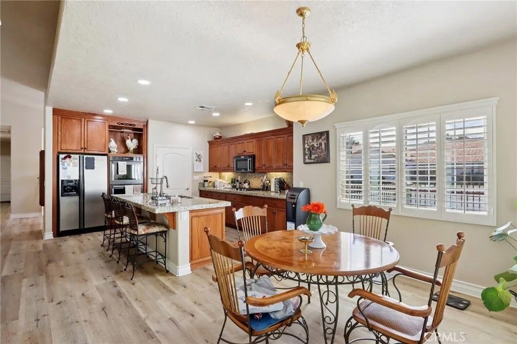 Welcome to this beautiful CUSTOM corner-lot home perfectly situated at the end of the fairway on the 4th hole in the highly desirable Spring Valley Lake Association. With stunning golf course views, spacious living with storage galore, and luxury upgrades, this home offers both comfort and elegance. Go inside through the custom front door with sidelights to soaring vaulted ceilings and bright, open living spaces. Custom plantation shutters throughout the home. The formal dining area is off the foyer. The open-concept kitchen, living room, and breakfast nook are filled with natural light and views of the lush greenery beyond. The living room features a cozy fireplace with mantle, while the slider opens to a covered patio with ceiling fans, outdoor fireplace, and a fenced backyard with a charming pond with statue perfect for entertaining or quiet evenings overlooking the golf course. The high-end kitchen boasts KitchenAid stainless steel appliances, double oven, microwave, and dishwasher, plus custom cabinetry, granite countertops, island with bar seating and a spacious pantry. Privately situated, the oversized primary suite offers direct access to the backyard patio, along with a spa-like en suite bathroom featuring a large tiled shower, jetted soaking tub, dual vanities, and a walk-in closet. Down the hall are three additional well-sized bedrooms, a full bathroom, and laundry room with direct access to the 3-car garage. Enjoy resort-style living in Spring Valley Lake Association with a plethora of amenities, including the golf course, country club with swimming pool & gym, lake, swimming beach, marina, picnic areas, playground, park with baseball diamond, dog park, and community center offering classes. The community also has a 24 hour security that patrols the area giving extra peace of mind.