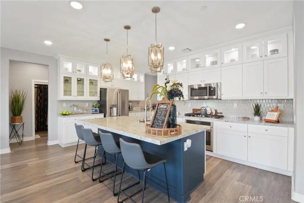 This beautiful single-family home offers the perfect blend of comfort, style, and convenience. This is the largest floor plan home called Horizon at Atwell Community. Featuring spacious rooms, modern amenities and a welcoming atmosphere. Flooring with luxury vinyl throughout main floors, hallways & stairways with upgraded handrails and light fixtures. Living space-open-concept living and dining areas with plenty of natural light, and recessed lights, then to Formal Dining area, special folding sliding doors when you party you can entertain open it with extended to outside covered patio. Remote control shades at sliding doors. Next to it modern Kitchen, with large center island with quartz finished countertop, equipped with stainless steel appliances. Then the White Kitchen Cabinets with light fixtures inside the upper portion. Walk in Pantry plenty of room. Then next to it bathroom and one bedroom for guest. Walk upstairs where you will find the spacious primary bedroom, separate bathrooms, walk in closet for all your collection. Then to Loft Area/Family Room, another place for TV Theater or just listening to your favorite music. Landscaped backyard with a patio, perfect for entertaining or relaxing with low maintenance artificial turf, with paver stones on the sides with wrought iron fence directly behind the house with unobstructed views of the mountain, community lake, walking trials. Another covered patio on the side. You are few steps to the community pool with spa, BBQ area and parks. Hiking trails and biking trails. There's Solar Panels on the house which is package in with the purchase of this house. Situated in a quiet, family friendly neighborhood, this home is conveniently close to parks, shopping centers and medical centers. Enjoy the sense of community while being just minutes away from all the amenities you need. Seller upgrades approximately over $100K on this house so its move in ready!