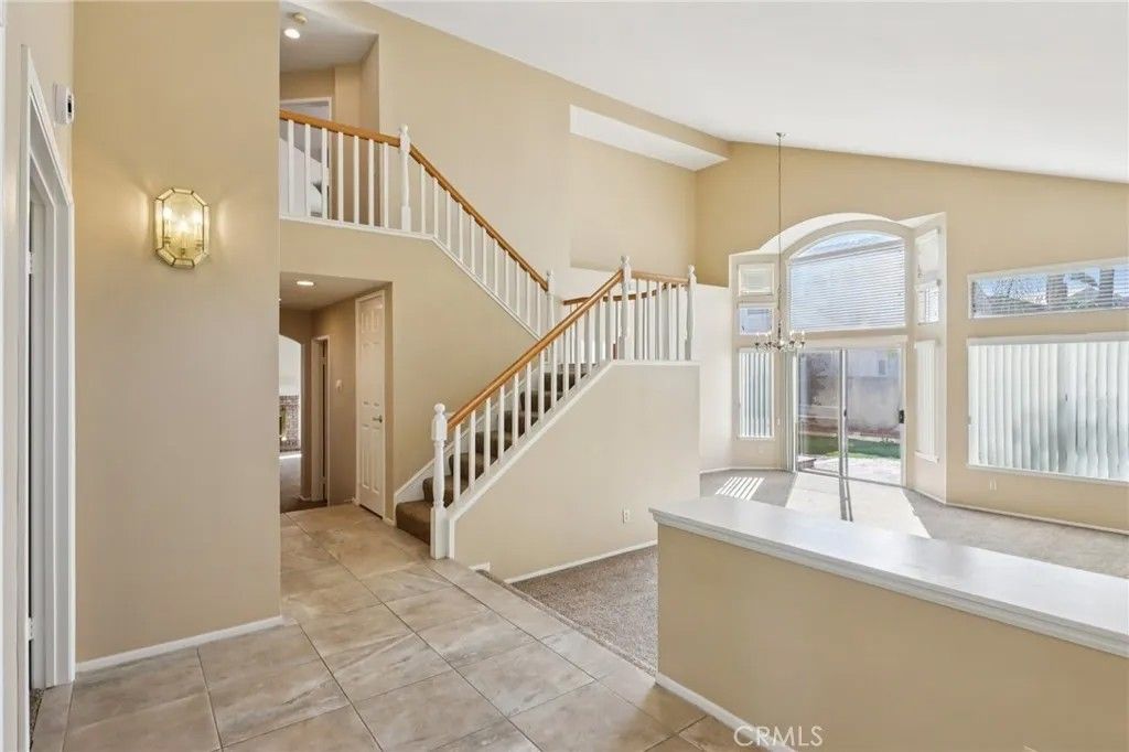 Stunning Southern California curb appeal, this immaculately clean home sets on a stately raised corner lot framed by mature trees with soaring vaulted ceilings and filled with abundant natural light throughout. The welcoming foyer opens to formal living and dining spaces, highlighted by large windows that brighten every corner. A convenient main-level bedroom with its own en suite bathroom sits just off the entry, perfect for guests or multigenerational living. The dining rooms sliding door leads to the backyard patio, creating an easy indooroutdoor flow. At the heart of the home, the spacious kitchen offers a center island, ample cabinetry, a breakfast nook, and a sink with a peaceful view of the backyard. The adjacent family room features a charming brick-framed fireplace and glass sliders opening to the expansive outdoor space. The well-kept backyard includes two patios (one covered), artificial turf, mature palms, and a planter border, ideal for relaxing, entertaining, or enjoying warm SoCal evenings. Additional conveniences include a laundry room and direct-access 3-car garage. Upstairs, youll find three bedrooms and two bathrooms, including an oversized primary suite with a retreat area, fireplace, private balcony, wet bar, soaking tub, double-sink vanity, separate shower, and a massive walk-in closet. The secondary bedrooms are generously sized and connected by a Jack-and-Jill bathroom with dual sinks; one bedroom opens to a charming front balcony through a French door. Located near shopping centers with easy access to the 60 and 215 freeways, this beautifully maintained home offers exceptional space, comfort, and curb appeal in a convenient location.
