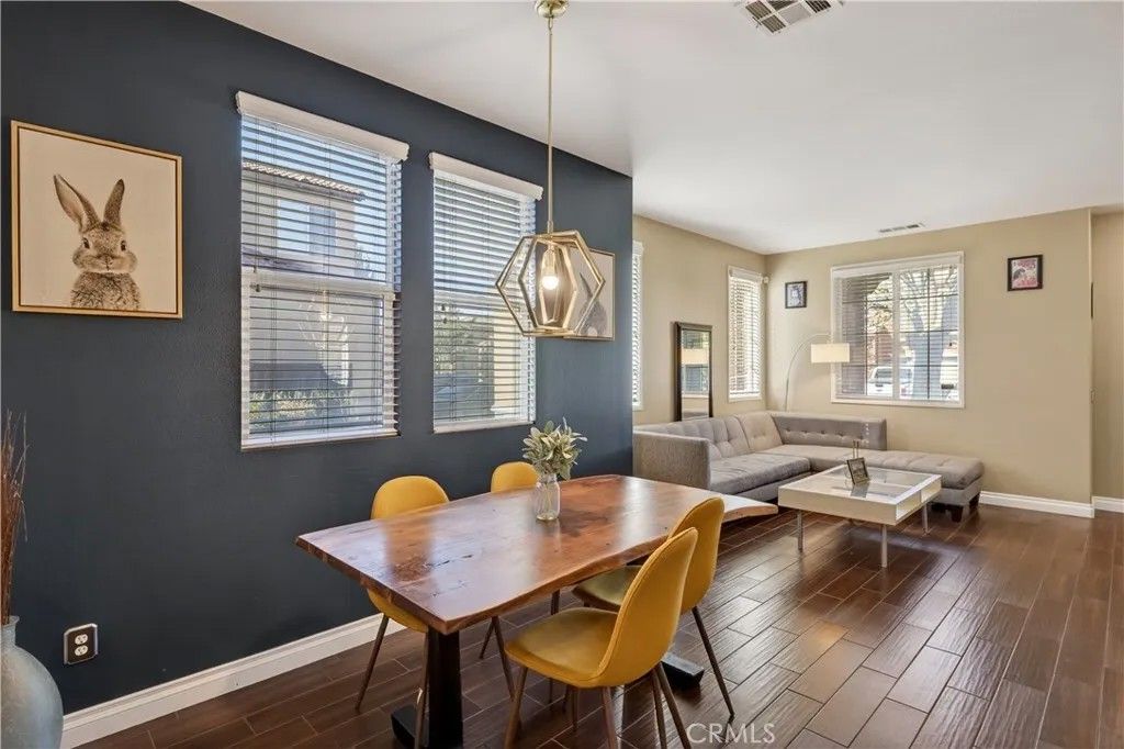 Welcome to this perfectly remodeled, move-in-ready home nestled in the highly desirable master-planned community Villages of Avalon. Just minutes from Lake Perris, this stunning residence offers 3 bedrooms and 2.5 bathrooms with a spacious open-concept layout on the main floor. Step inside and experience a home that has been thoughtfully updated throughout. The completely renovated kitchen features brand-new cabinets, countertops, backsplash, appliances, and a peninsula that overlooks the family room, making it ideal for everyday living and entertaining. A seamless flow from the kitchen to the dining area and welcoming family room. Enjoy cozy evenings in the spacious living room with its own fireplace, perfect for cool winter nights. Upstairs, all bedrooms are generously sized, including an impressive primary suite that showcases a luxurious, fully remodeled bathroom. This spa-like retreat offers a modern freestanding soaking tub framed by natural light, a large walk-in glass shower with contemporary tile work and a beautifully updated double vanity with sleek finishes. The hall bathroom has also been fully updated and features a modern walk-in shower with glass doors and white tile, along with black fixtures and an upgraded vanity that gives the space a clean, contemporary feel. The upstairs laundry room is conveniently located near all bedrooms. Residents of The Villages of Avalon enjoy access to exceptional community amenities including a recreation room, sparkling pool, picnic areas, and BBQ spaces. The home is close to schools, parks, shopping, dining, the Lake Perris Fairgrounds, motorsport activities, hiking and biking trails, and is just minutes from the 215 freeway. This home is truly move-in ready with every major upgrade already completed for you. Simply unpack and enjoy.