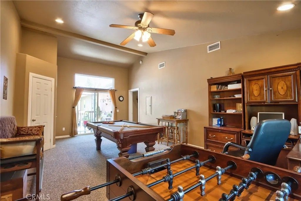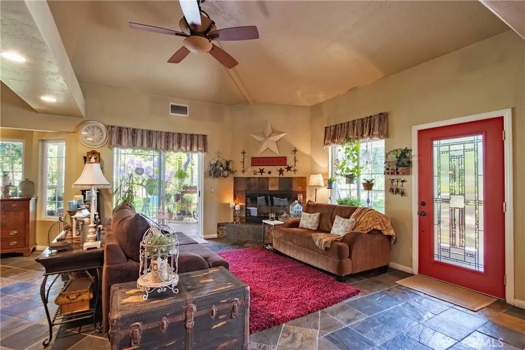 BEAUTIFUL PARK LIKE SETTING AT THE END OF THE CUL-DE-SAC . VERY PRIVATE WITH 19 YEAR OLD MATURE TREES. ORIGINAL OWNER!!!LOCATED IN LAKE RIVERSIDE ESTATES PRIVATE COMMUNITY WITH 55 ACRE LAKE AND PRIVATE AIRSTRIP.YOU WILL NOT FIND ANOTHER PROPERTY WITH THIS KIND OF LANDSCAPING AND FRUIT TREES. THIS HOME HAS A HUGE MASTER BEDROOM APPROX 432 FEET ALONG WITH A LIVING ROOM AND FAMILY ROOM APPROX SAME SIZE. TAX SAYS 3 BED 2 BATH BUT THERE IS A 400 SQUARE FOOT GAME ROOM THAT COULD BE 4TH BEDROOM. THE GARAGE IS APPROX 900 SQUARE FEET WITH 3 BAYS AND 9 FOOT DOORS COMPLETED WITH DRYWALL AND PAINTED. THE HOME HAS 3 DECKS AND ONE OF THEM HAS A OVERHANG THAT MAKES FOR AN ENTERTAINERS DELIGHT. THERE IS A 12X12 COVERED PERGOLA WITH A PLANTER AROUND 2 SIDES. THERE IS ALSO A CONCRETE PATIO OFF THE BACK OF THE HOUSE WITH A SLIDER TO THE MASTER BEDROOM.THERE ARE 1 APPLE TREE,3 POMEGRANATE TREES,2 FIG TREES,5 KINDS OF PLUM TREES,2 CHERRY TREES, 2 GRAPE VINES,1 ORANGE,1 LEMON AND 1 ALMOND TREE THERE IS APPROX 6000 SQUARE FEET OF GRASS WITH AUTOMATED SPRINKLERS AND ALL THE TREES ARE ON DRIP. THE PROPERTY IS 3.38 ACRES WITH APPROX 2.25 FENCED WHITE PVC ON THE STREET SIDE AND CHAIN LINK THE REST OF THE WAY. WITH 3 FRONT GATES 2 SWING AND 1 SLIDE. THE LANDSCAPING AND HARDSCAPING COST APPROX $200,000.00. THIS HOME HAS VERY HIGH END FLOORING WITH NATURAL SLATE TILE AND HIGH END PERGO XP. PLEASE CHECK VIRTUAL TOUR LINK