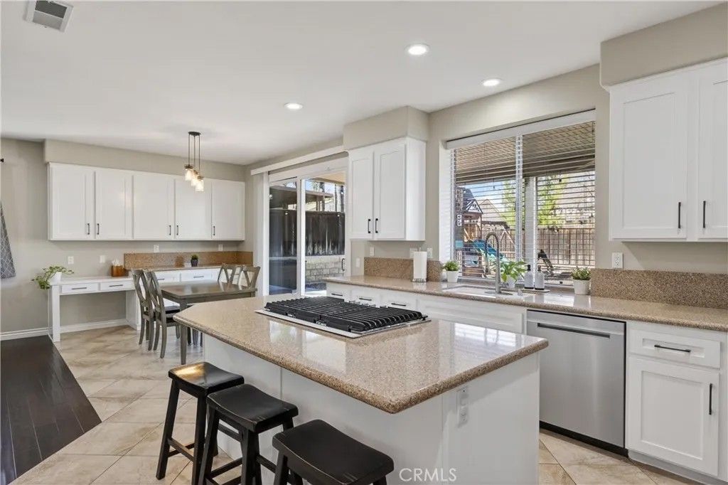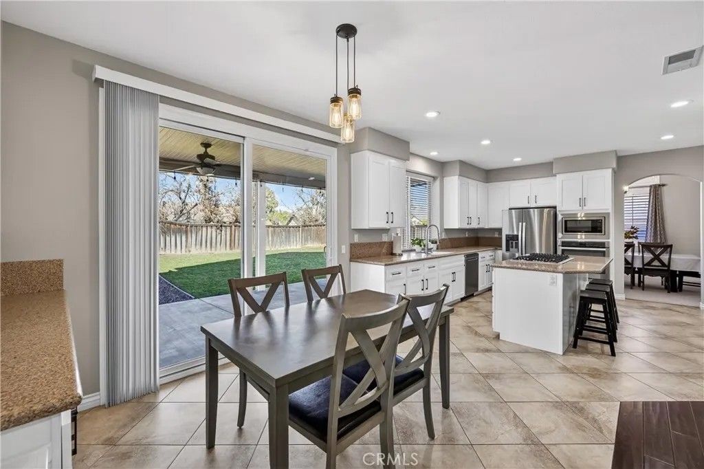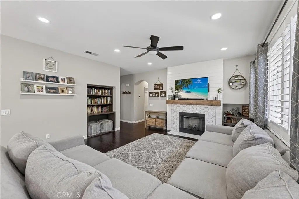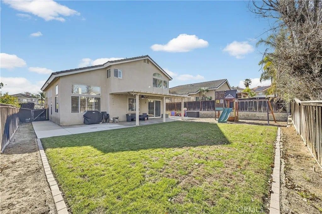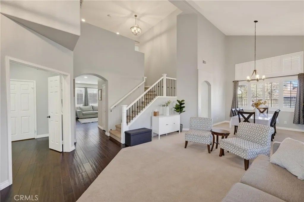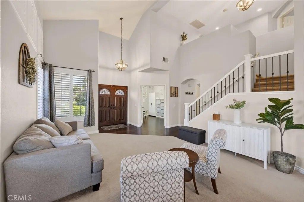 TURNKEY ORANGECREST HOME! Step into refined living in this elegantly upgraded residence offering exceptional space, versatility, and timeless design. This impressive 5-bedroom home with a den provides the flexibility to accommodate up to 6 bedrooms, complemented by 3 full bathrooms and soaring vaulted ceilings that create an airy, sophisticated ambiance throughout. A striking formal entry with custom wood double doors sets the tone, opening to beautifully appointed formal living and dining spaces. The expansive family room with custom fireplace serves as the centerpiece of the home and flows seamlessly into the breakfast area and chef-inspired kitchen, ideal for both everyday living and elevated entertaining. The fully upgraded kitchen showcases custom cabinetry with built-ins, an oversized center island, tile flooring, and luxury Silestone quartz countertops, prized for their durability, modern aesthetic, and anti-bacterial properties. Additional highlights include a large walk-in pantry, stainless steel appliances, and a window overlooking the backyard, creating a space that is as functional as it is stunning. A main-level den offers a refined home office or can easily be converted into a private guest suite or sixth bedroom, conveniently located near a full upgraded bathroom, providing excellent flexibility for a variety of living needs or extended stays. Upstairs, youll find generously sized secondary bedrooms and a luxurious primary suite featuring vaulted ceilings, a spa-inspired bathroom with separate soaking tub and walk-in shower, upgraded finishes, and a large walk-in closet. The secondary bathrooms have also been tastefully updated with modern finishes and fixtures. Additional highlights include fresh interior paint throughout, a large, well-appointed laundry room, and abundant storage. The private backyard retreat features a covered Alumawood-style patio with ceiling fans, perfect for year-round enjoyment. Completing the home is a 3-car garage, NO HOA, LOW property taxes, and a location within a desirable, established neighborhood. This is a rare opportunity to own a beautifully upgraded home that blends luxury, comfort, and functionality in every detail.
