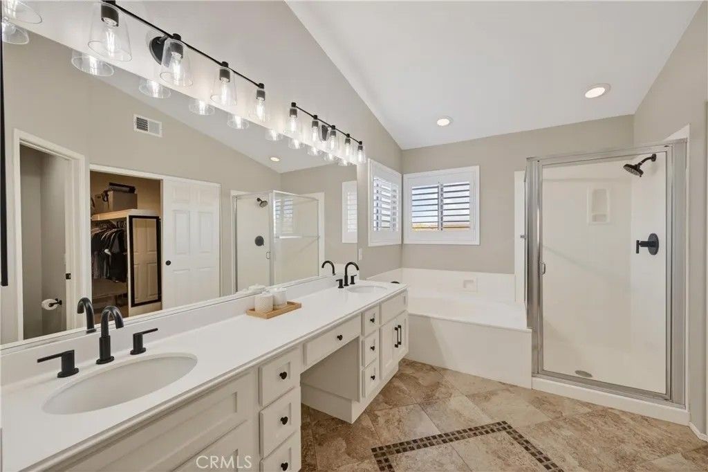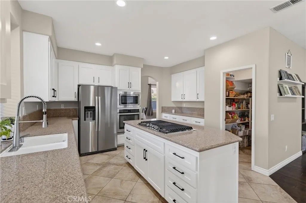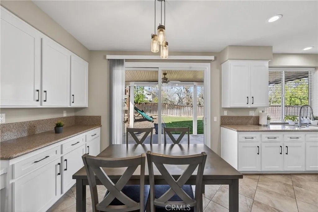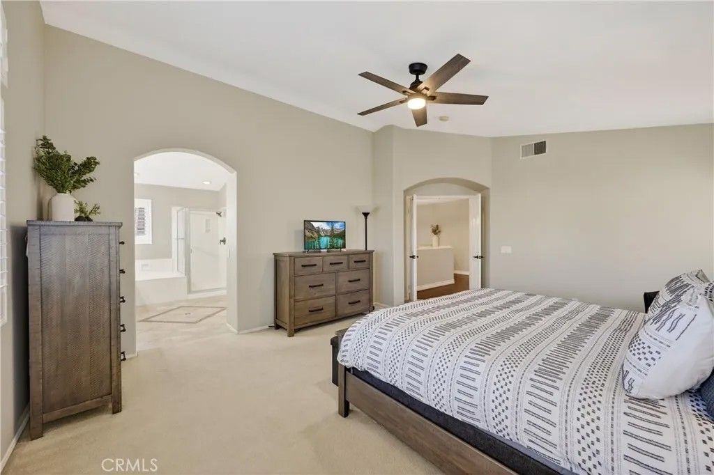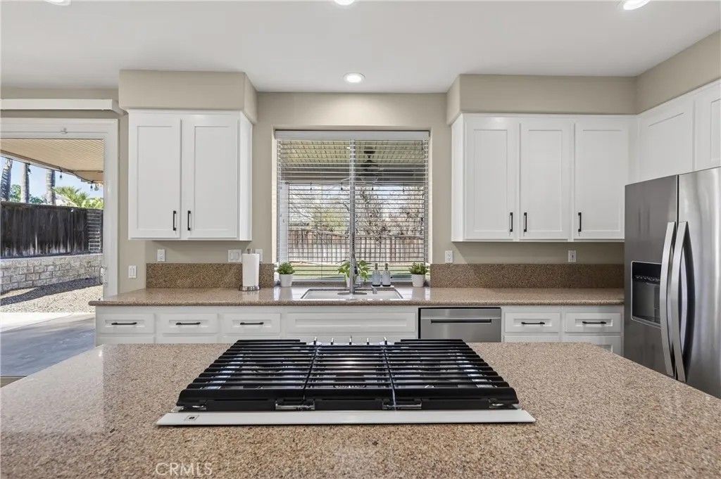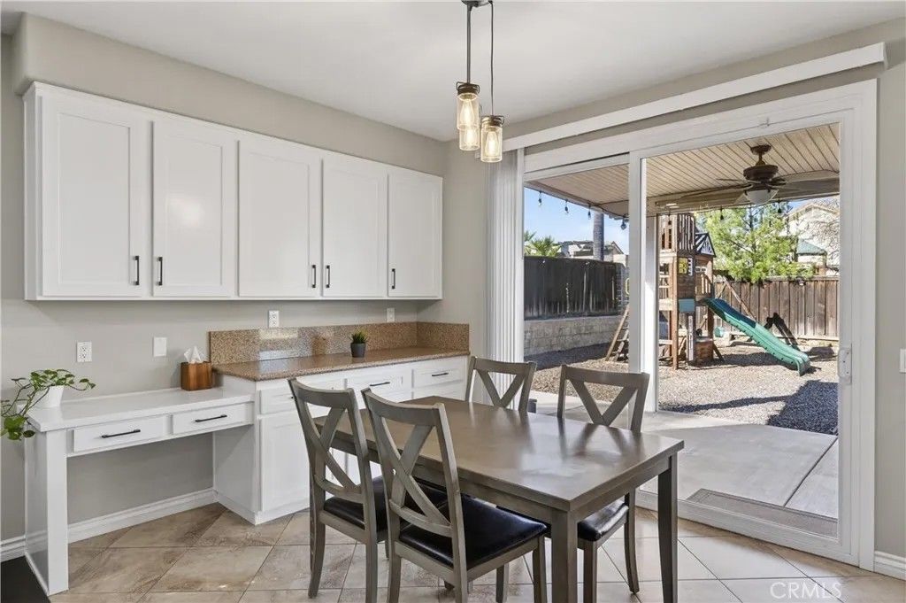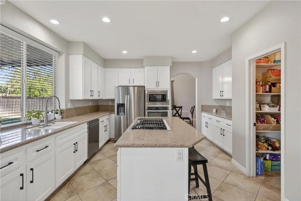 TURNKEY ORANGECREST HOME! Step into refined living in this elegantly upgraded residence offering exceptional space, versatility, and timeless design. This impressive 5-bedroom home with a den provides the flexibility to accommodate up to 6 bedrooms, complemented by 3 full bathrooms and soaring vaulted ceilings that create an airy, sophisticated ambiance throughout. A striking formal entry with custom wood double doors sets the tone, opening to beautifully appointed formal living and dining spaces. The expansive family room with custom fireplace serves as the centerpiece of the home and flows seamlessly into the breakfast area and chef-inspired kitchen, ideal for both everyday living and elevated entertaining. The fully upgraded kitchen showcases custom cabinetry with built-ins, an oversized center island, tile flooring, and luxury Silestone quartz countertops, prized for their durability, modern aesthetic, and anti-bacterial properties. Additional highlights include a large walk-in pantry, stainless steel appliances, and a window overlooking the backyard, creating a space that is as functional as it is stunning. A main-level den offers a refined home office or can easily be converted into a private guest suite or sixth bedroom, conveniently located near a full upgraded bathroom, providing excellent flexibility for a variety of living needs or extended stays. Upstairs, youll find generously sized secondary bedrooms and a luxurious primary suite featuring vaulted ceilings, a spa-inspired bathroom with separate soaking tub and walk-in shower, upgraded finishes, and a large walk-in closet. The secondary bathrooms have also been tastefully updated with modern finishes and fixtures. Additional highlights include fresh interior paint throughout, a large, well-appointed laundry room, and abundant storage. The private backyard retreat features a covered Alumawood-style patio with ceiling fans, perfect for year-round enjoyment. Completing the home is a 3-car garage, NO HOA, LOW property taxes, and a location within a desirable, established neighborhood. This is a rare opportunity to own a beautifully upgraded home that blends luxury, comfort, and functionality in every detail.