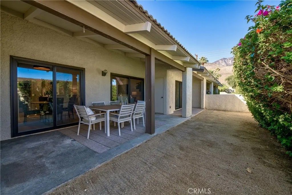 Welcome to Rancho La Paz, where modern upgrades meets desert charm! This fully renovated, turnkey 2-bedroom, 2-bath condo on Fee Simple Land (yes, you own the land!) offers dual master suites - each with 2 large closets! Step inside to a rare gem ideal for flexible modern resort-style living featuring a newly built-in private OFFICE SPACE, brand new fully updated bathrooms with showroom quality vanities, sleek designer hardware, modern finishes throughout, and an overall home that breaks the moldwhere every finish, every feature, and every detail has a story to tell! Flow effortlessly from room to room on luxury vinyl plank (LVP) flooring, handpicked for its style and comfort. The home's rich texture and modern lines create a seamless, sophisticated foundation for your personal touch. With beautifully beamed white shiplap vaulted ceilings, upgraded LED recessed lighting features, skylights offering abundant natural light, and an open floor plan, this home is destined to feel bright, spacious, and extremely inviting. The designer-finished updated kitchen features quartz countertops, an island with extra space for bar seating, brand new stainless steel appliances, a large deep single-basin sink, desirable soft-closed drawers, and custom state-of-the-art finishes, opening seamlessly to the living and dining areas. Enjoy year-round comfort with newly installed energy-efficient windows, doors, 3 glass sliders, plus remote-controlled ceiling fans strategically placed throughout each room. In-unit laundry access adds highly sought-after convenience that is often hard to find in this area. But wait, its not just the inside that shines. Slide open your THREE massive sliding glass doors and find your own sanctuarya concreted covered patio with mountain views, perfect for morning coffee or stargazing nights. The community is a resort in disguise, featuring 3 pools, 3 spas, 3 tennis courts, 4 pickleball courts, and a dog park for your furry companion. Perfectly situated just minutes from the vibrant heart of downtown Palm Springs, trendy dining, fabulous shopping, and stunning hiking trails, this move-in-ready, sleek & contemporary condo isnt just a place to live. Its a place to beto thrive, to entertain, to savor every day. Why settle for ordinary? This is more than a home. Its an experienceperfect as a full-time residence, tranquil getaway, or smart investment. Rancho La Pazs trendiest listing is waiting for you! *2026 UPDATE - PROPERTY SHOWS DE-STAGED
