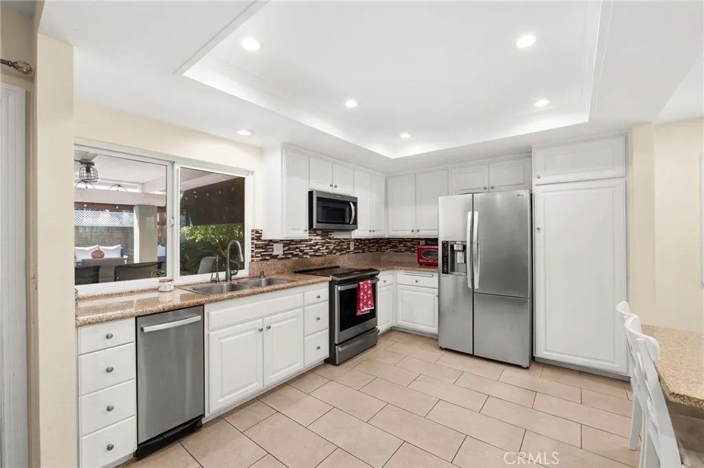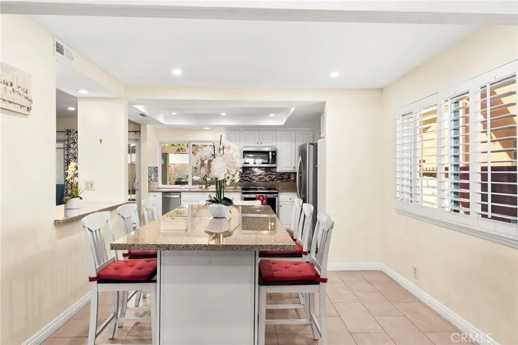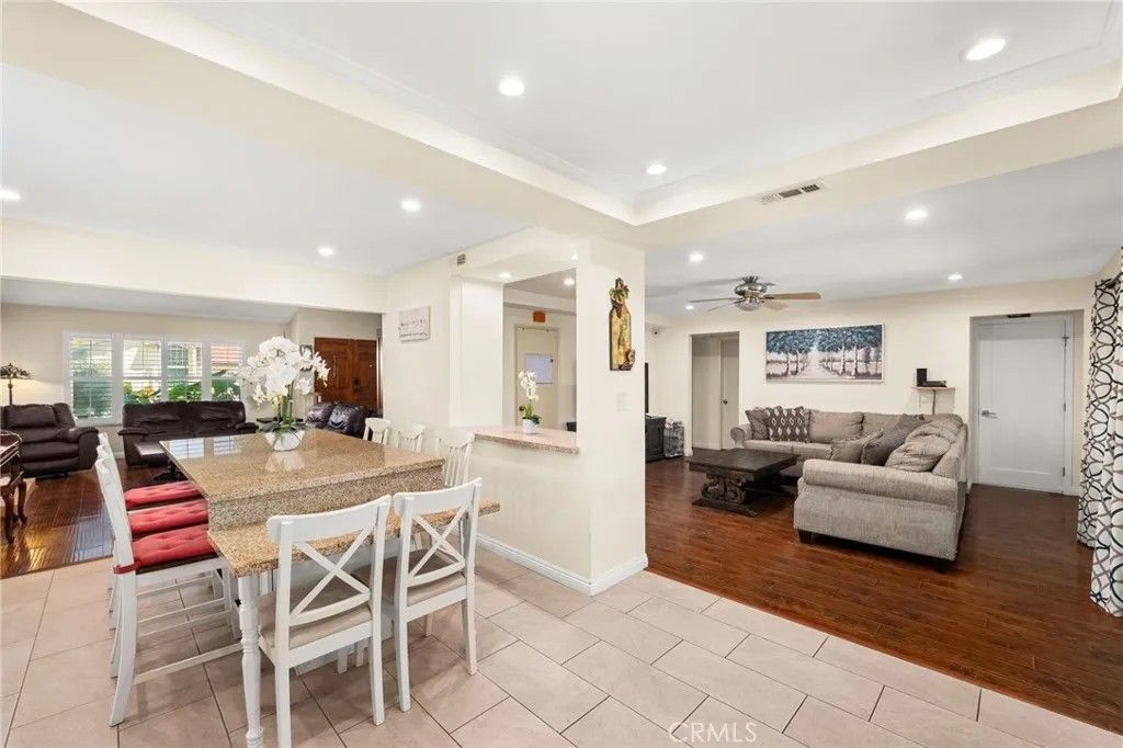 Beautifully upgraded home located in one of La Palma's most desirable locations. This thoughtfully improved property features a permitted downstairs addition (over $100,000 investment) with its own private entrance and brand new bathroom with dual sinks, a brand-new walk-in shower and a new walk in closet. The space is ideal for multigenerational living, guest quarters, orwith minor modificationscan function as a Junior ADU for potential rental income. The home showcases a fully remodeled kitchen designed for both style and functionality, featuring granite countertops, custom backsplash, sturdy white cabinetry, recessed lighting, an oversized center island, and a new stove. The kitchen flows seamlessly into the family room and living room with vaulted ceilings, creating a bright and open living space enhanced by custom cabinetry that matches the kitchen design. Upstairs, the primary suite enjoys views of the nearby greenbelt and playground, while two additional bedrooms are spacious and well-appointed with a jack and jill bathroom. Additional upgrades include newer dual-pane insulated windows, custom wood shutters and durable laminate wood flooring. The backyard is designed for entertaining, featuring an oversized custom patio and two separate covered patio areas, perfect for gatherings and outdoor relaxation. The garage includes EV charging capability, adding modern convenience. Located within an award-winning school district known for some of the highest test scores in the state, this home offers a rare combination of versatility, thoughtful upgrades, and prime location.