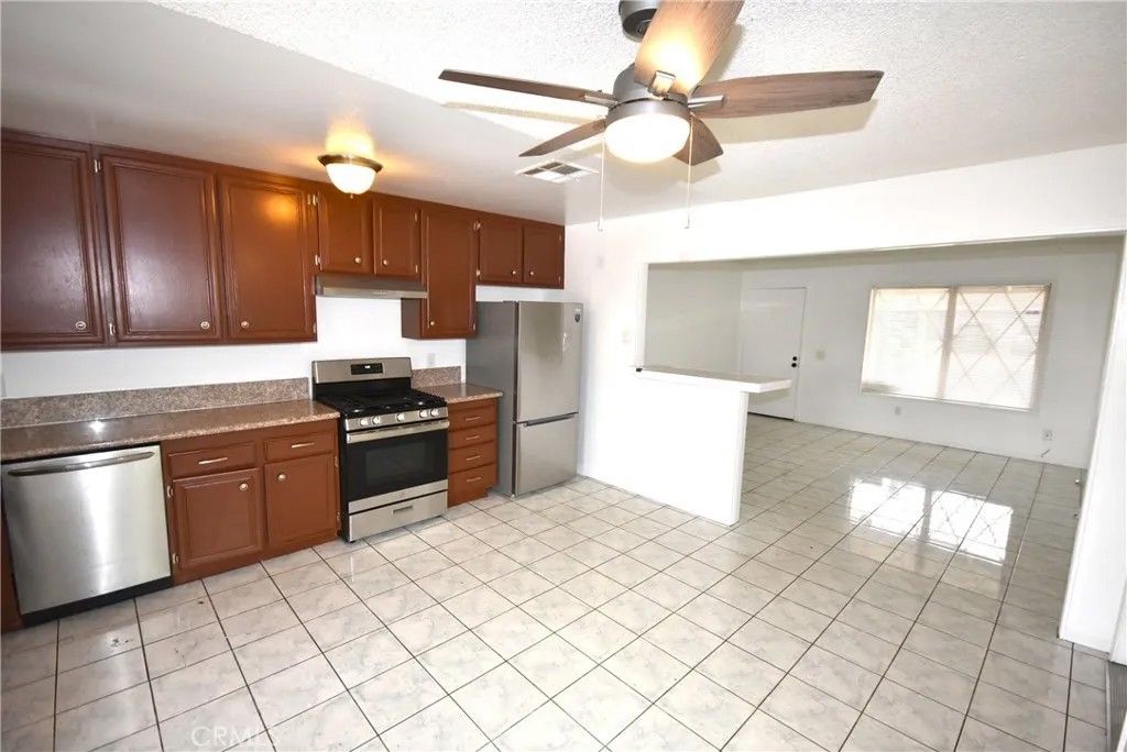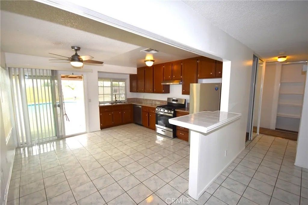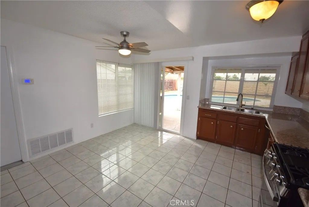 Great location, property it is close by to Moreno Valley High School, easy access to the 60 and 215 freeway, close to shopping centers , mall, this property futures two large bedrooms and two bathrooms and two car attahced garage easy maintenance, open floor plan with breackfast bar , new neutral inside paint, new stainless stove and refrigeratore, tile and carpet flooring. Sliding doors of the gourmet kitchen and master bedroom to the back yard. Back yard has a sparkling pool for summer entertaiment, front yard no grass for water savings, has been upgraded to desert ladscaping.