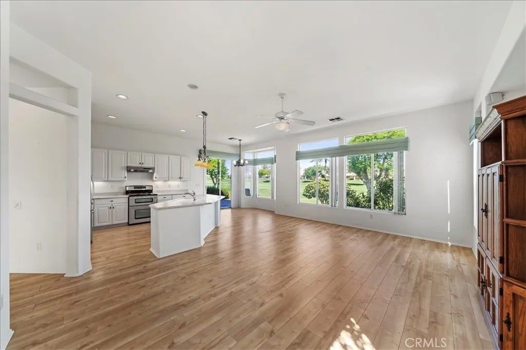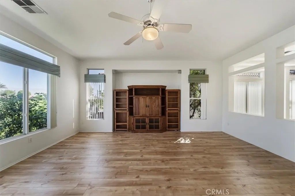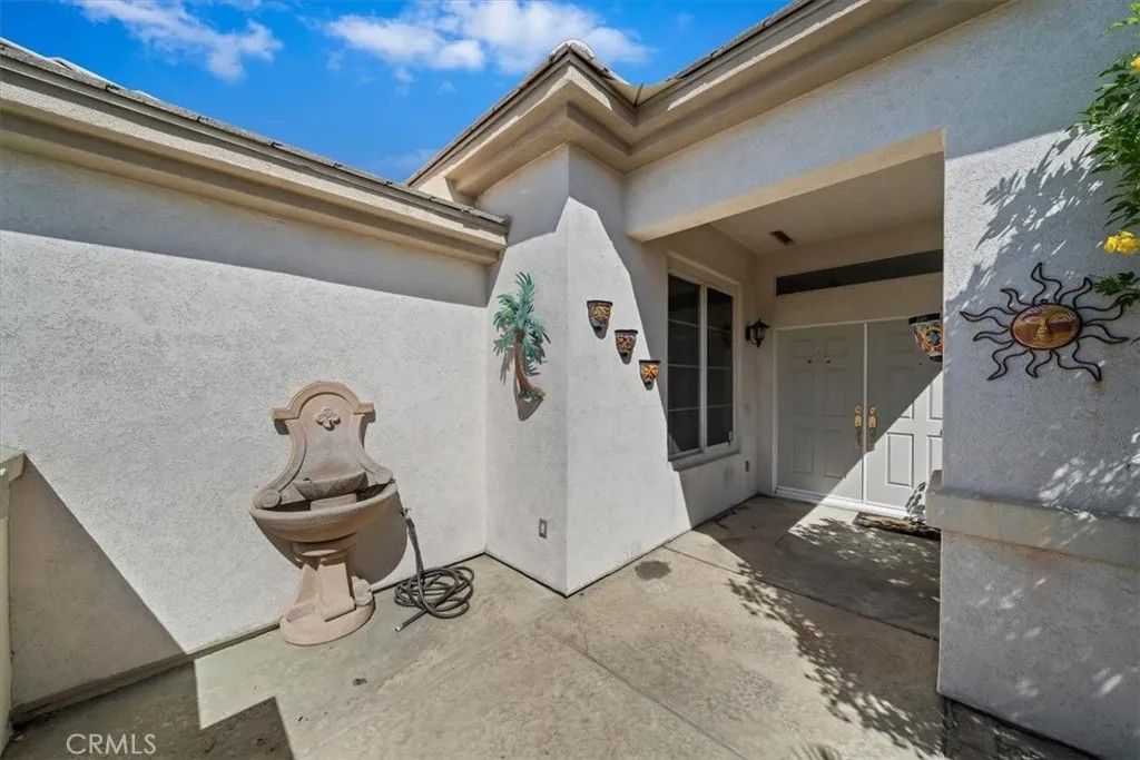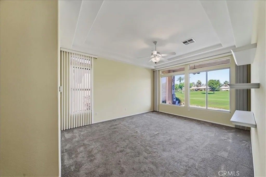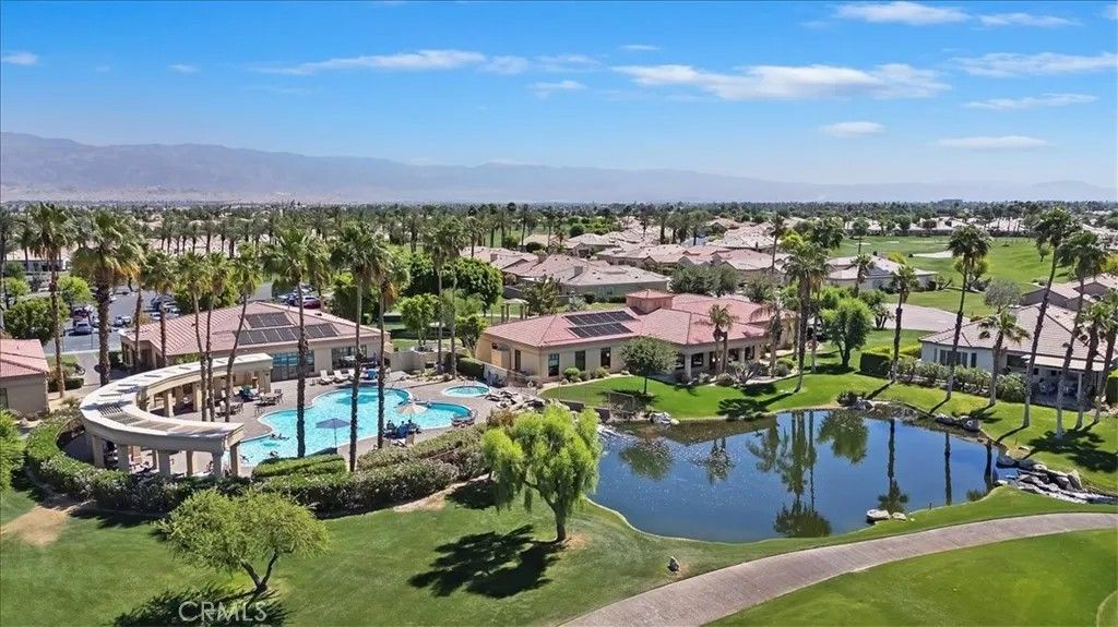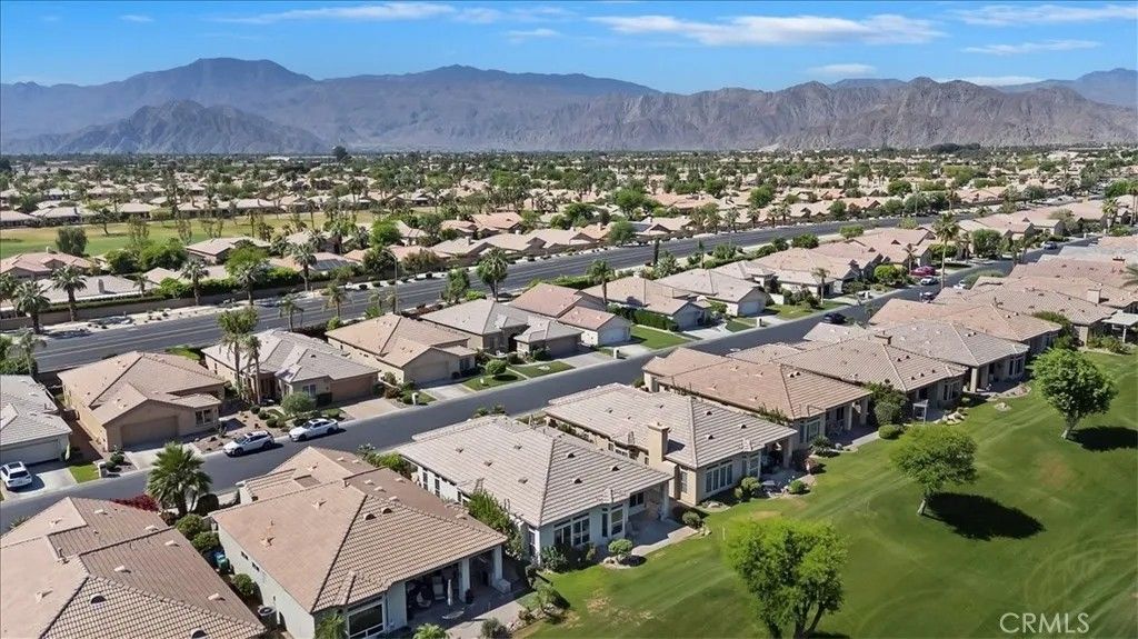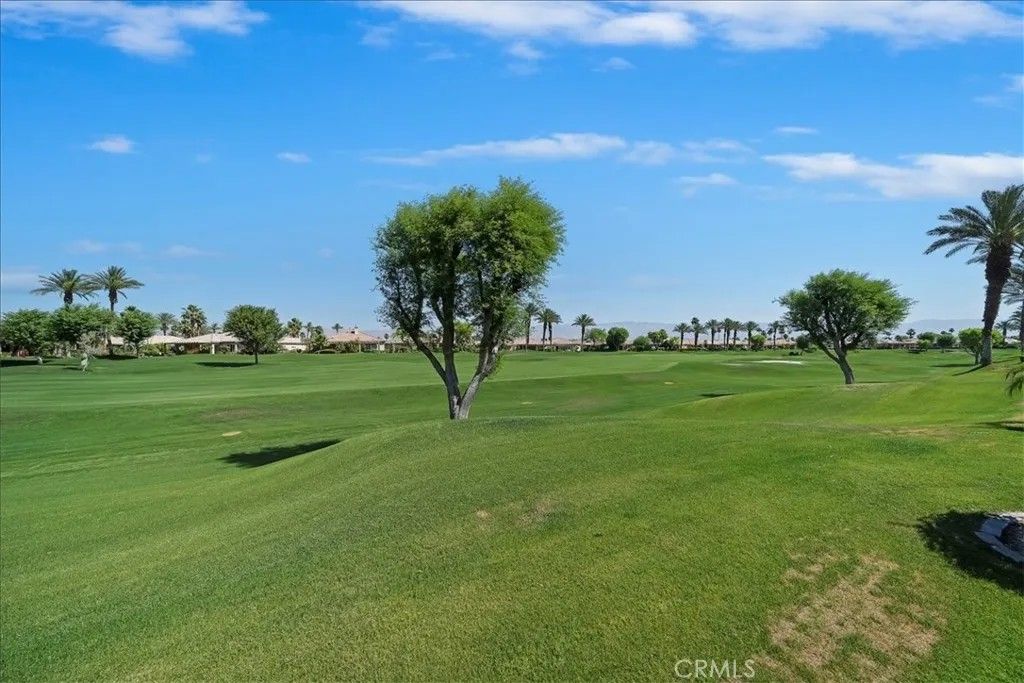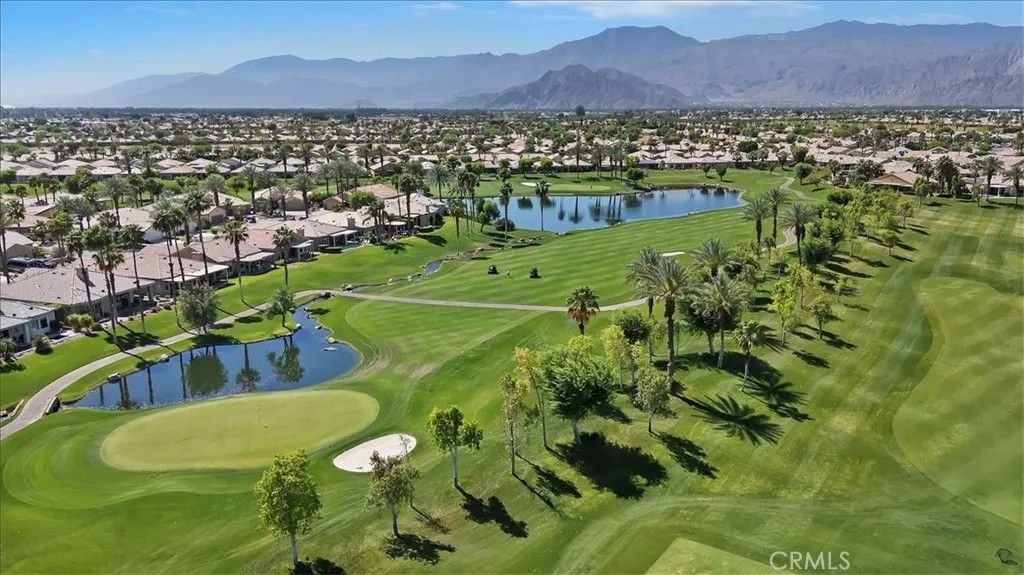 Introducing 80190 Royal Birkdale Dr. Positioned along the 17th fairway in Heritage Palms Country Club, this home offers beautiful golf course, lake, and mountain views in one of the deserts most active 55+ communities. Located within the highly sought after Heritage Palms, a popular active adult community, this home also enjoys a prime location with close proximity to the clubhouse and amenities. This popular and well designed Southampton floor plan features 2 bedrooms, 2 bathrooms, and a versatile den, offering a layout that is both functional and inviting. The den includes an Original Murphy bed, making it an ideal space for a third guest bedroom, office, or hobby room. The home has been well maintained over the years and is move-in ready, while offering a great opportunity for a buyer to update and personalize to their own style. Vaulted/coffered ceilings and large windows bring in natural light, creating a bright and open feel throughout. The spacious layout includes both formal and casual living areas, providing flexibility for everyday living and entertaining. The kitchen opens to the main living spaces, while the rear patio captures sweeping fairway views with a peaceful setting enhanced by the golf cart path being located on the opposite side of the fairway for added privacy. A private courtyard entry adds charm and curb appeal, and the garage offers additional utility with built in storage and space for a golf cart, which is included in the sale. The primary suite features generous space, walk in closet, double sink vanity, shower and bathtub. Residents of Heritage Palms enjoy a championship golf course, clubhouse, fitness center, indoor and outdoor pools, tennis, pickleball, and a vibrant social scene all conveniently located nearby. This is an exceptional opportunity to create your ideal desert retreat.
