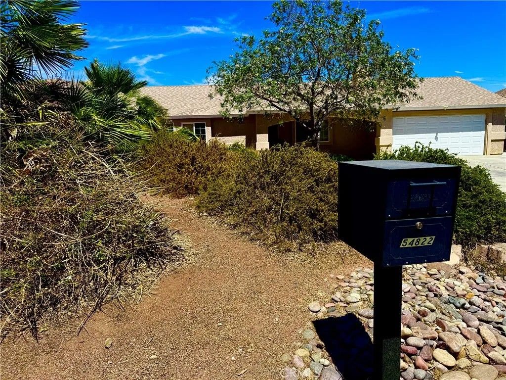 This property can be bought, rented, or lease optioned. Recently updated private home on over half an acre of land, fenced and private, with extensive pathways and mature landscaping including majestic joshua trees. Serene setting for star gazing, and well located in Yucca Valley, within golf cart driving distance to Hawk's Landing Country Club. Close to grocery shopping and restaurants of downtown Yucca Valley. Fifteen minutes to Joshua Tree National Park, and twenty minutes to Palm Springs and all tbhat has to offer. Freshly painted and new carpet with three bedrooms on one side, and a den/office/or what could be a 4th bedroom on the other side. Chef's kitchen has new stove/oven and range hood. You can look out to the back yard from the kitchen window. Large covered backyard patio. Dining area, living room and master bedroom have wood palm front ceilings fans, and there are ceiling fans in the other two bedrooms and office/den . Used red brick gas fireplace in the living room. Separate laundry room with washer and dryer included. Finished two-car garage with new garage door operator and re-programmed garage access panel. Beautifully landscaped yard has an automatic sprinkler system and night lights. Separate fenced dog run.