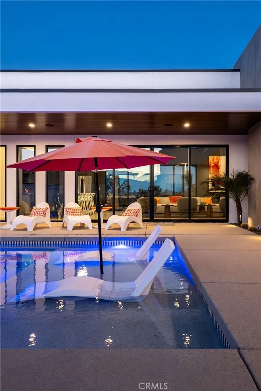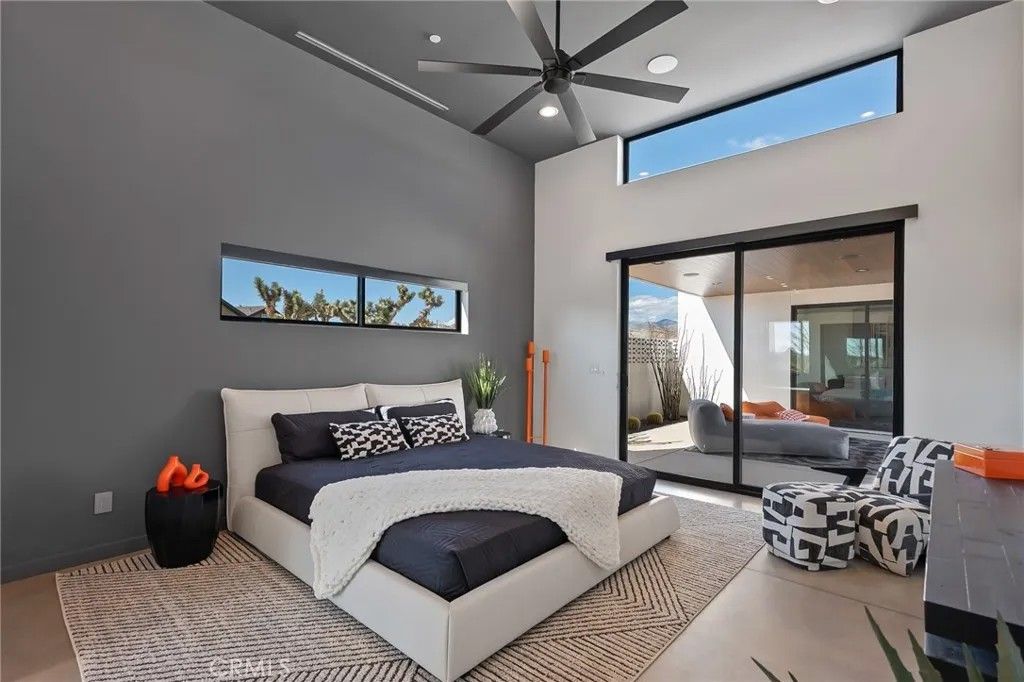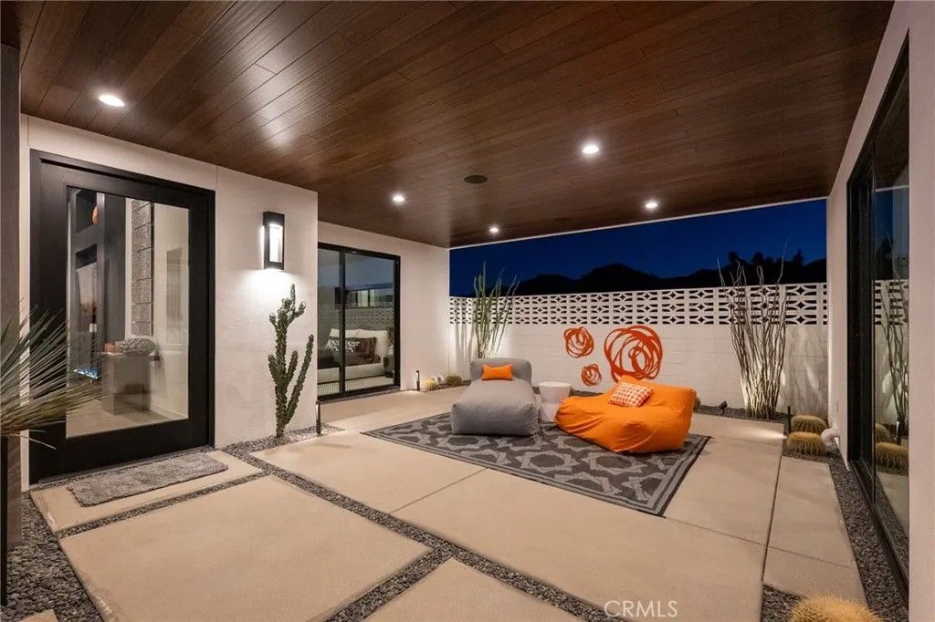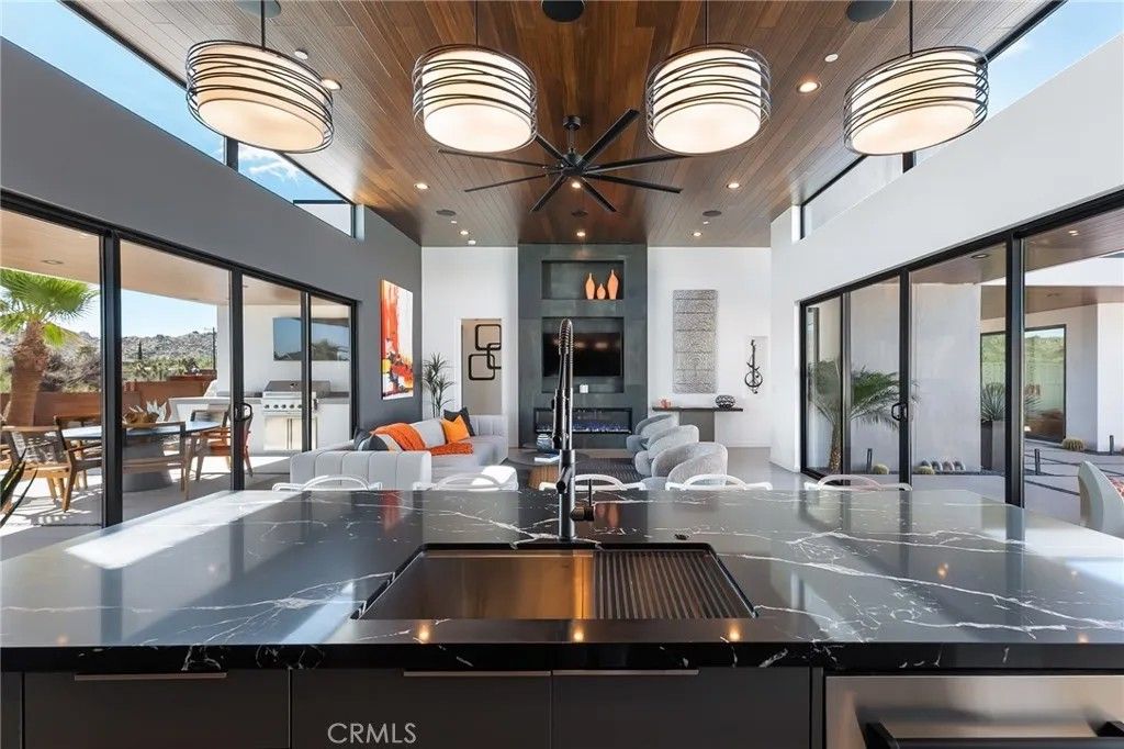 5165 Roy Rogers Road - Modern Desert Masterpiece. In the high desert, silence has texture, and light is its own architecture. At 5165 Roy Rogers Road, design and landscape move in harmony, a balance of modern form and natural stillness. Set on 1.26 acres in one of Pioneertowns most sought-after settings, this three-bedroom, three-bath residence redefines desert modern living. The bold white-and-black faade, framed by a breeze-block courtyard and signature orange gate, makes an unforgettable first impression, both grounded and sculptural. Inside, expansive glass walls and polished concrete floors invite the desert light to play across every surface. The open-concept great room and designer kitchen merge seamlessly, featuring bespoke cabinetry, waterfall-edge stone counters, and refined mid-century influences that bring warmth to the clean architectural lines. Each bedroom suite offers its own sense of calm and privacy, designed for rest, reflection, and effortless connection to the landscape beyond. The home is offered fully furnished and turn-key, blending curated design with comfort and livability. Outdoors, the private courtyard unfolds around a sleek in-ground pool and spa, framed by native landscaping, sunlit terraces, and a covered outdoor kitchen crafted for year-round enjoyment beneath endless desert skies. Positioned in the heart of Pioneertown, just moments from its iconic gathering spots, Pappy & Harriets and the Red Dog Saloon, this residence captures the spirit of modern design framed by desert history. 5165 Roy Rogers Road, where Palm Springs polish meets High Desert soul. A modern architectural statement, ready to be lived in, shared, and remembered.