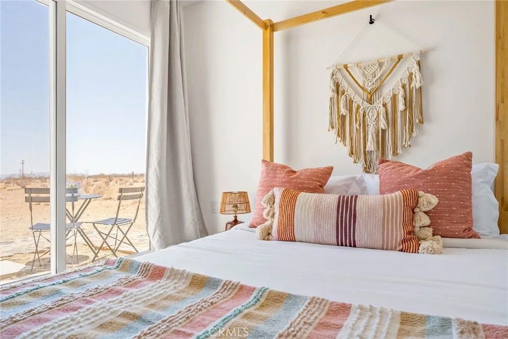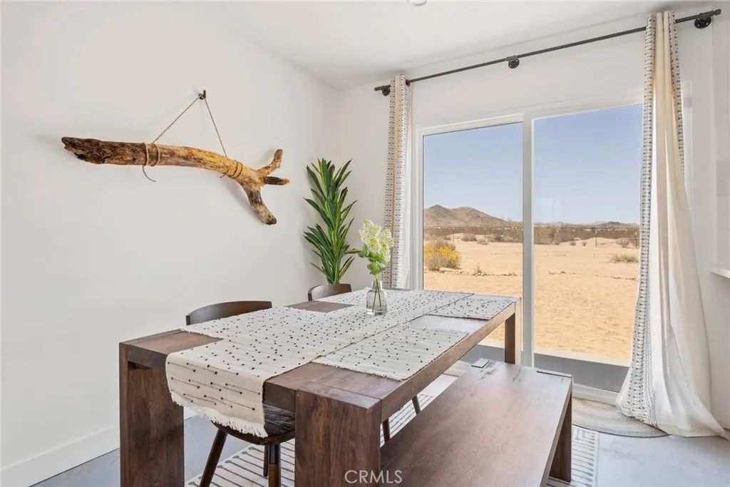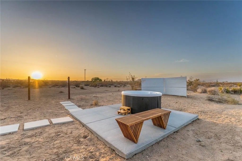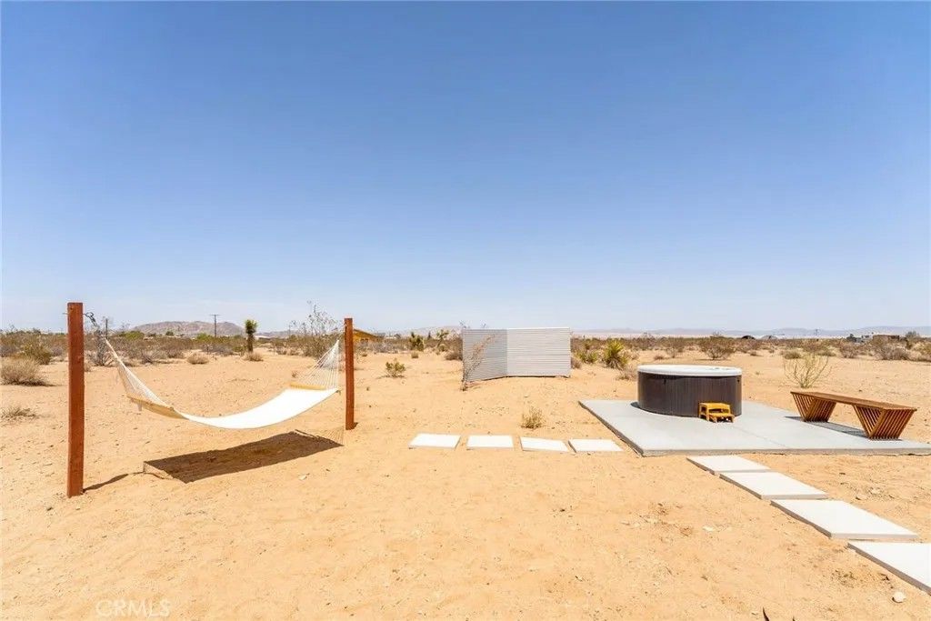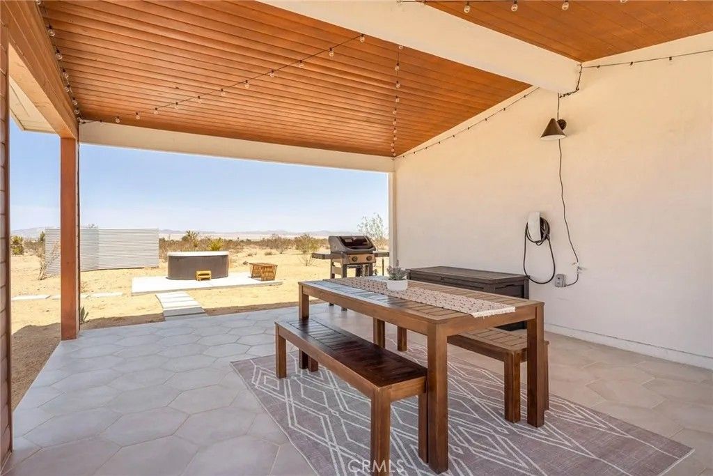 Exquisite remodeled home to the highest standard: Santa Barbara smooth stucco, floor-to-ceiling custom tile in the bathroom and counter-to-ceiling tile in the kitchen. Quartz countertops and solid oak cabinets throughout. FULLY FURNISHED/TURNKEY furnishings, art and design setup is complete and ready to move-in or rent. No stone left unturned, inside or out, including recently upgraded 200-amp electrical panel, septic tank, AC/Heating, roof, EV charger, fenced, tiled carport that doubles as a custom porch the works! Hot tub. Great getaway vacation home, Airbnb or even a primary residence in perfect condition! Sublime, rural location on the border of Joshua Tree and Landers, with easy access to both, but at a location like this, you can hike right out the front door into surrounding wilderness or relax and stargaze surrounded by peaceful desert in all directions.