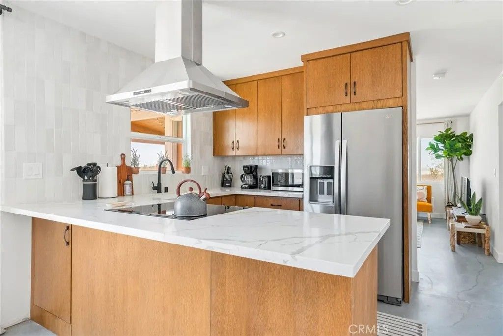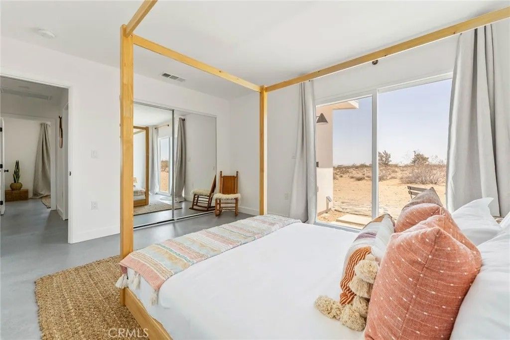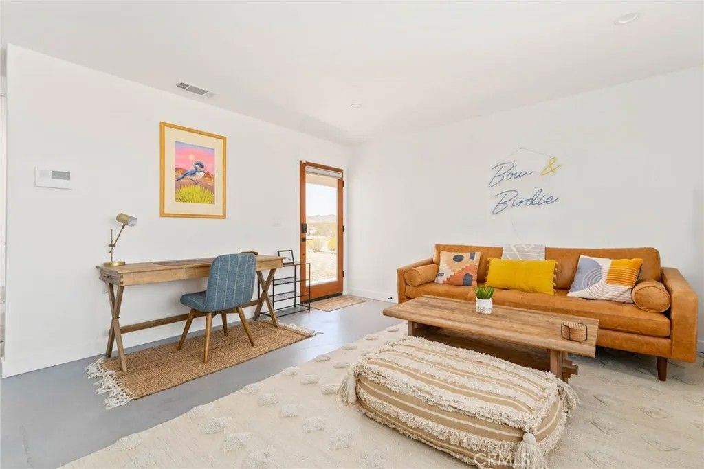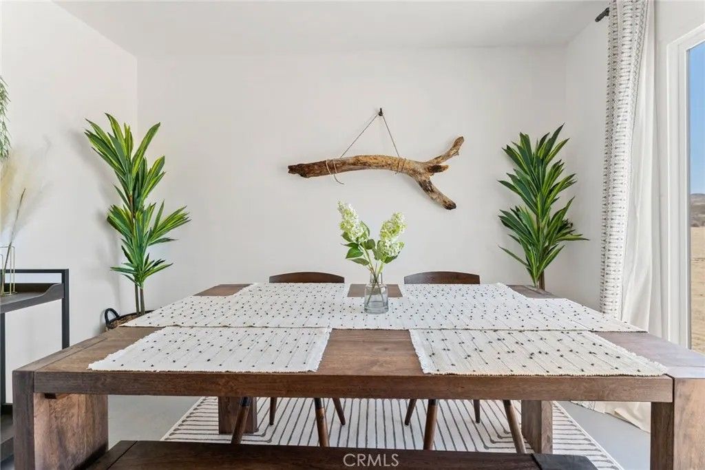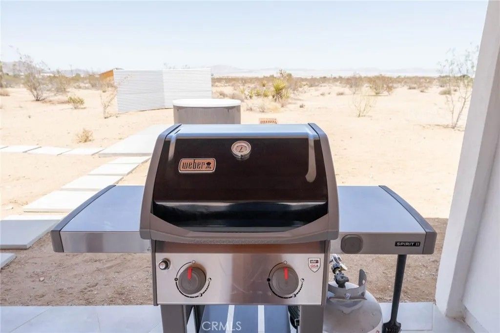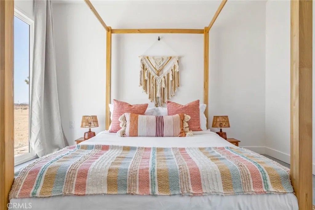Exquisite remodeled home to the highest standard: Santa Barbara smooth stucco, floor-to-ceiling custom tile in the bathroom and counter-to-ceiling tile in the kitchen. Quartz countertops and solid oak cabinets throughout. FULLY FURNISHED/TURNKEY furnishings, art and design setup is complete and ready to move-in or rent. No stone left unturned, inside or out, including recently upgraded 200-amp electrical panel, septic tank, AC/Heating, roof, EV charger, fenced, tiled carport that doubles as a custom porch the works! Hot tub. Great getaway vacation home, Airbnb or even a primary residence in perfect condition! Sublime, rural location on the border of Joshua Tree and Landers, with easy access to both, but at a location like this, you can hike right out the front door into surrounding wilderness or relax and stargaze surrounded by peaceful desert in all directions.
