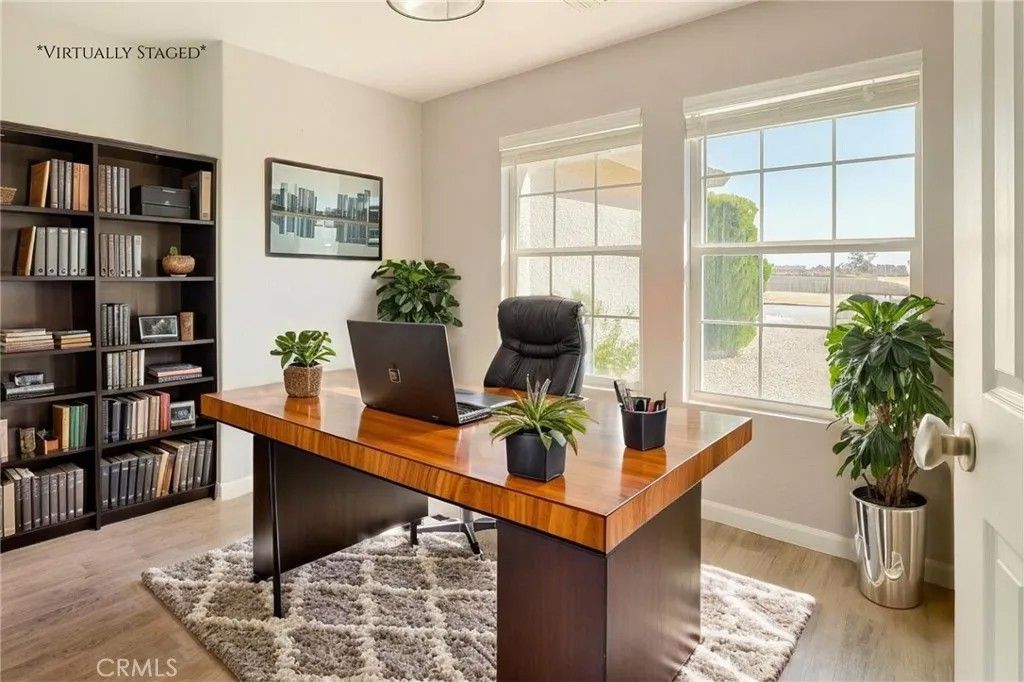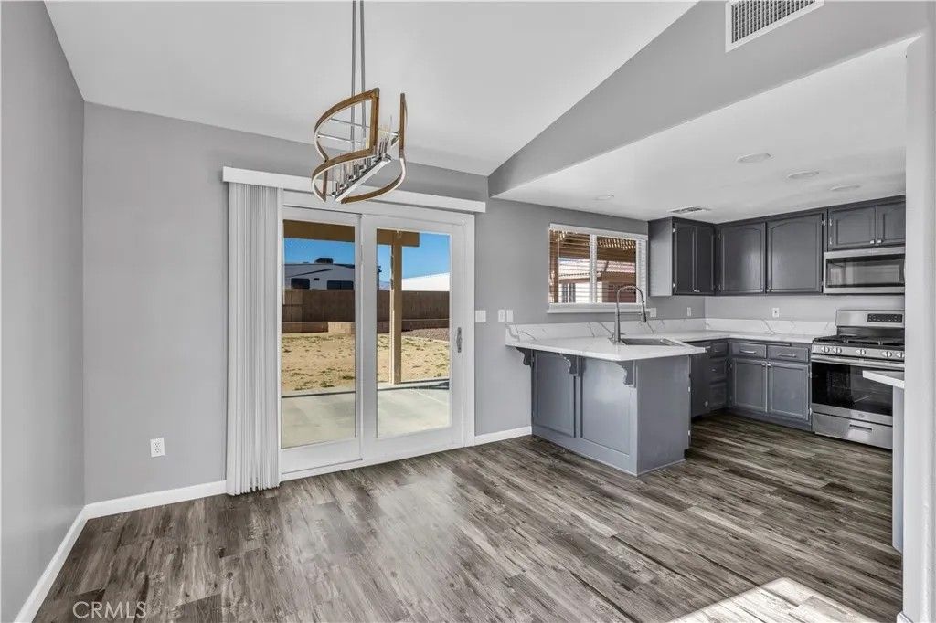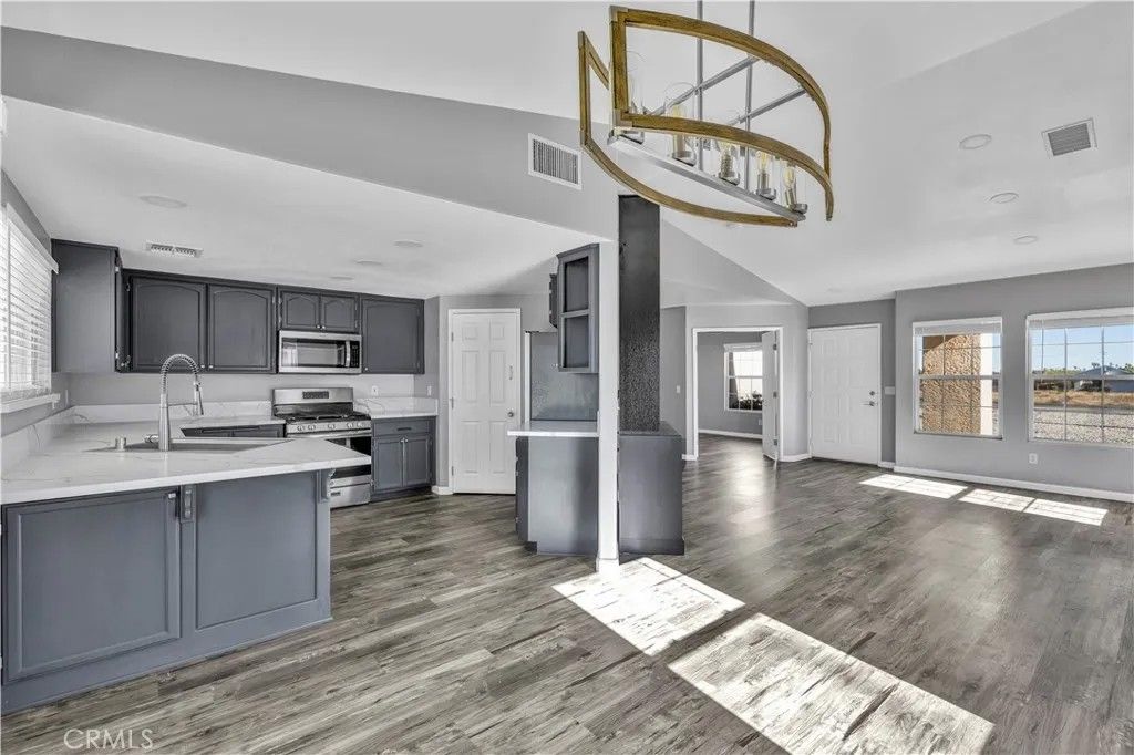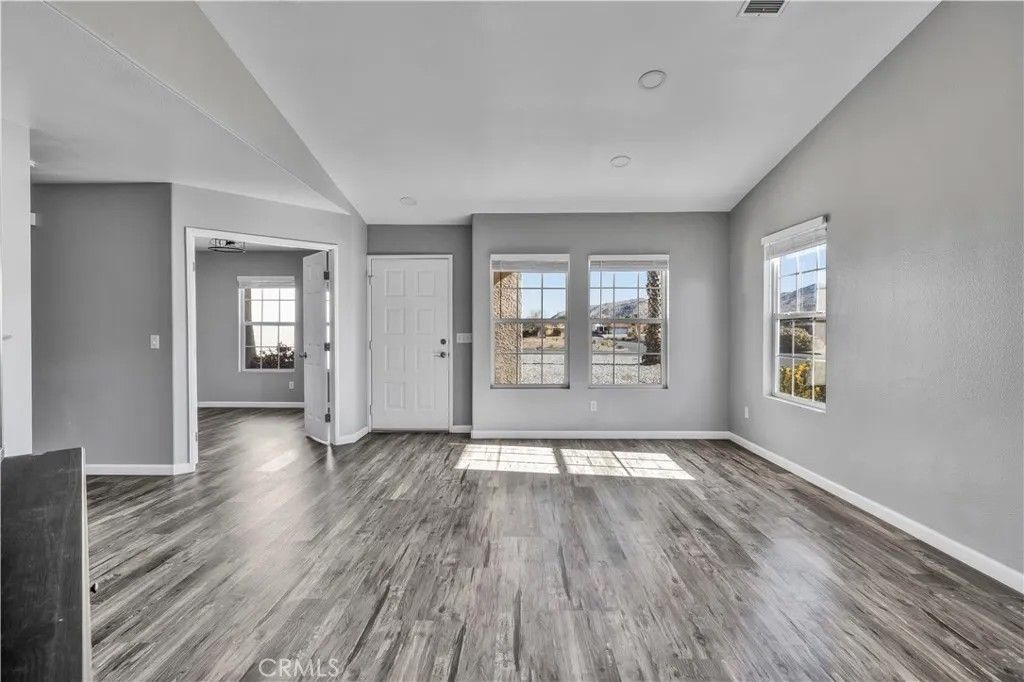 Beautifully Remodeled 3 Bedroom, 2 Bath Home PLUS AN OFFICE on a Landscaped Corner Lot in a Great Neighborhood! This spacious and stylish home offers an incredible combination of curb appeal, modern updates, and functionalitylocated on a quiet cul-de-sac in one of Yucca Valleys most desirable neighborhoods. Situated on a fully landscaped corner lot, the property features a large front yard, drive-thru side gates for RV or toy parking, and a block wall-enclosed backyard for privacy. As you enter, you'll love the open concept layout, tall vaulted ceilings, and luxury vinyl plank flooring throughout. A natural gas fireplace adds warmth and charm to the main living space, which flows effortlessly into the updated kitchen featuring quartz countertops, stainless steel appliances, ample cabinetry, generous counter space, and a pantry for added storage. This home includes three well-sized bedrooms PLUS AN OFFICE, which can easily serve as a fourth bedroom if needed. The primary suite offers two closets, a remodeled ensuite bathroom with dual sinks, a newer vanity, and a beautiful walk-in tiled shower. The guest bathroom is conveniently located near the other two bedrooms and has also been updated with a shower-tub combo and newer finishes. Additional highlights include an indoor laundry room with extra storage, a fully finished two-car garage, and modern, move-in-ready finishes throughout. Step into the backyard oasis to enjoy the large covered patio, western-facing sunsets, and flat, usable spaceperfect for entertaining or relaxing. A fully finished stucco outbuilding in the rear offers even more storage or potential use as a workshop, gym, or creative space. This home is ideally located close to schools, shopping, and all the conveniences of Yucca Valley, yet tucked away in a quiet and established neighborhood. Homes with this layout, updates, and flexible space are rareschedule your showing today before its gone!