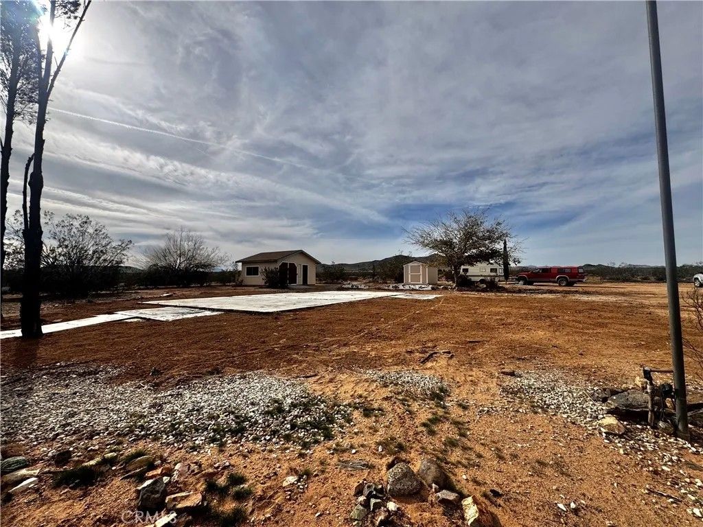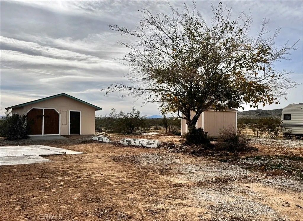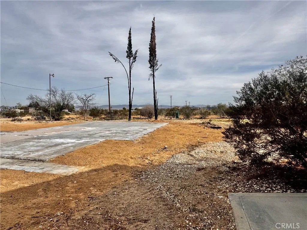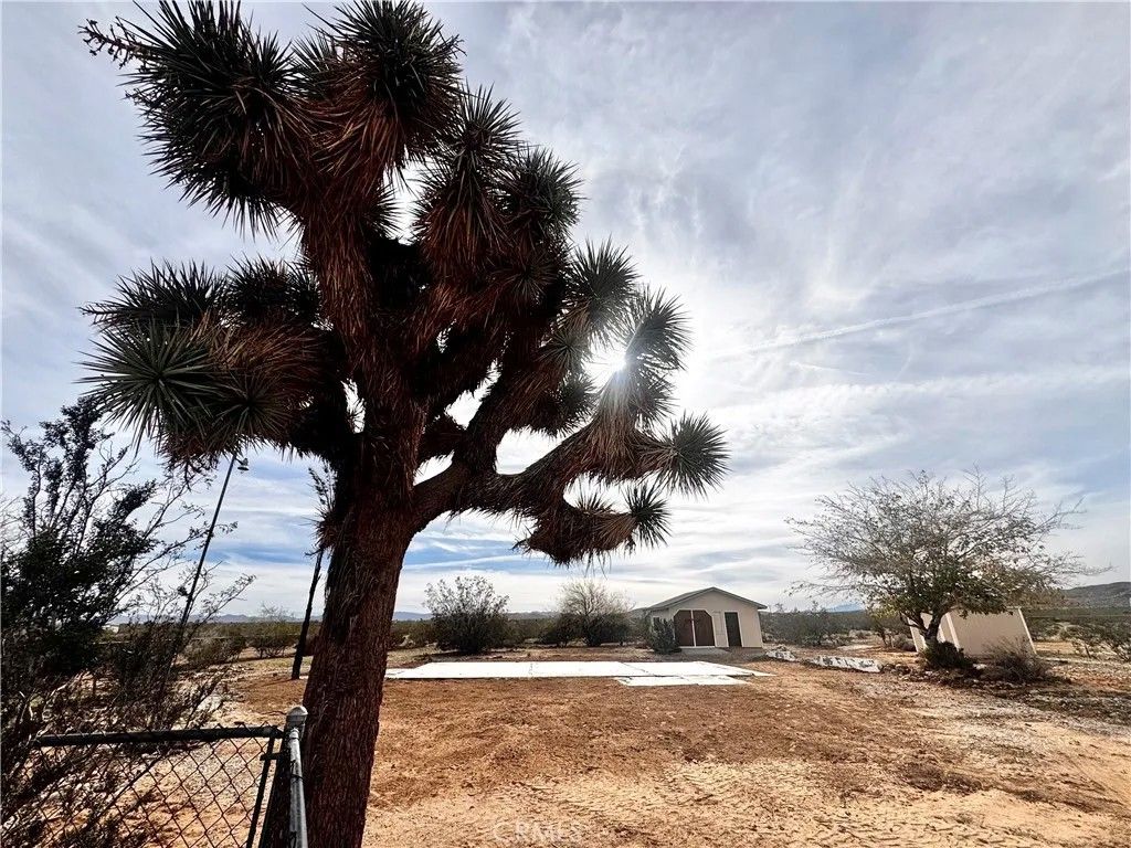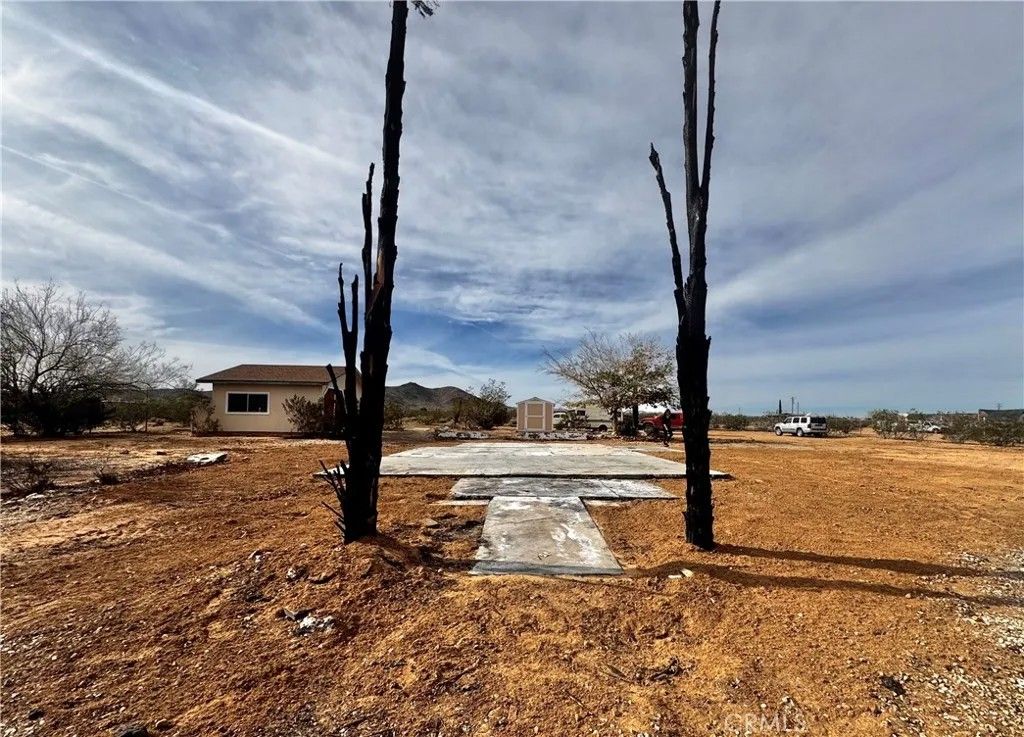 Acreage property in beautiful Landers! The house burned down, but the property has been cleaned up and the infrastructure is there! Water? You've got it! Power? It's right there and ready to reconnect when you plan your dream home! An address is assigned and existing structures currently on property include a one car garage with attached workshop and a relatively new Tuff Shed. There is a large slab where the house used to be, and complete chain link fencing with a lockable gate. This property sits on 2.5 acres with landscaping that includes mature mulberry and Joshua trees, blue agave and cacti. Pull up your RV, roll up those sleeves and get to work, or enjoy a secure spot with infrastructure for weekend camping. The stars are plenty, the views are endless, the privacy is pristine.